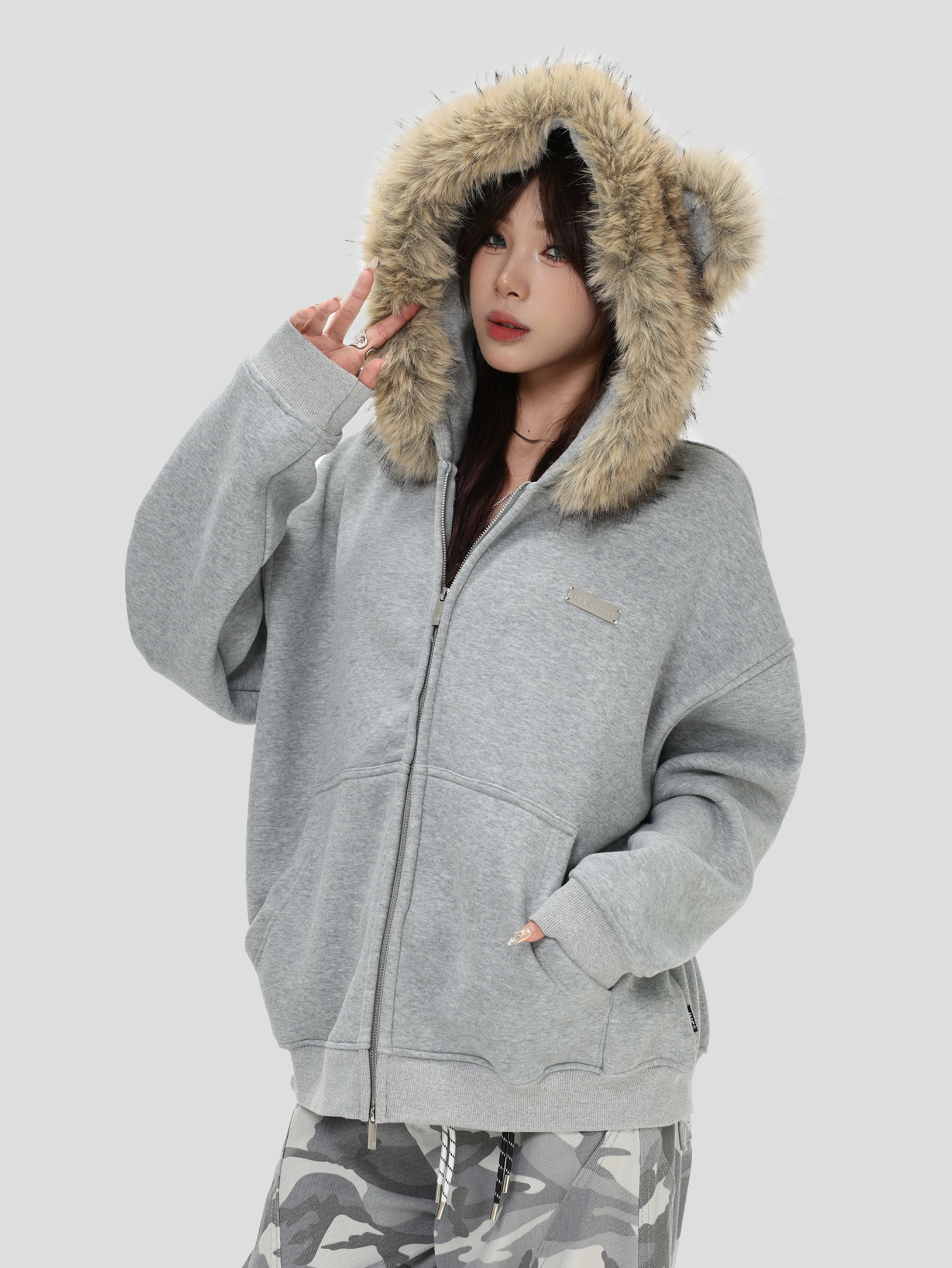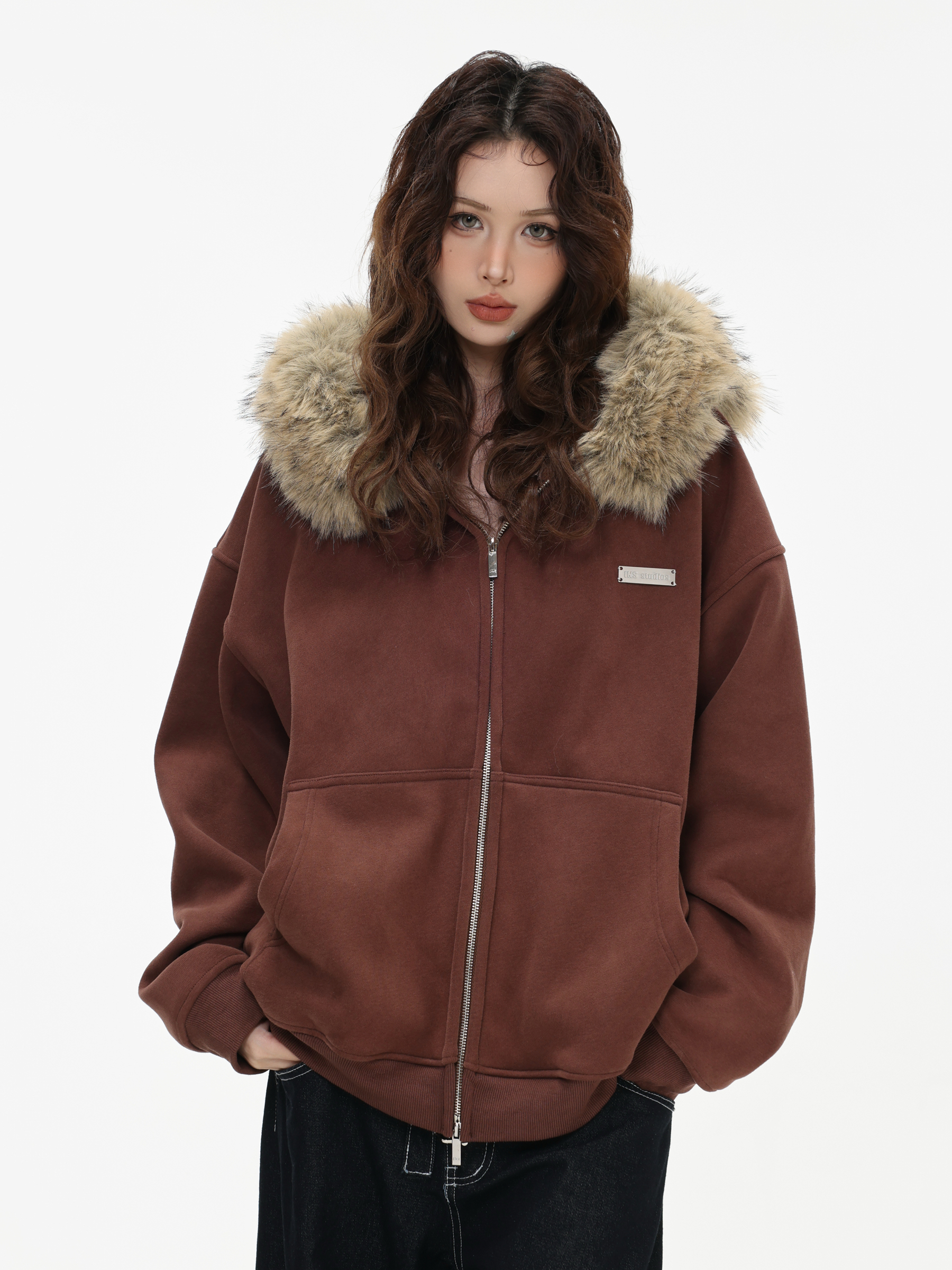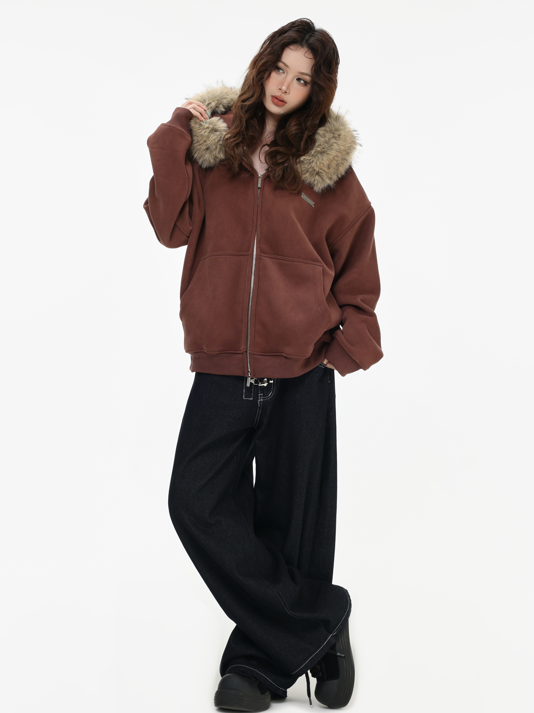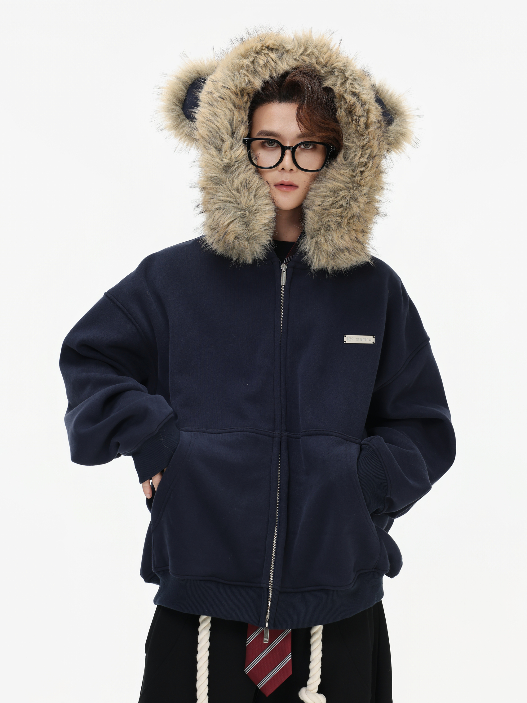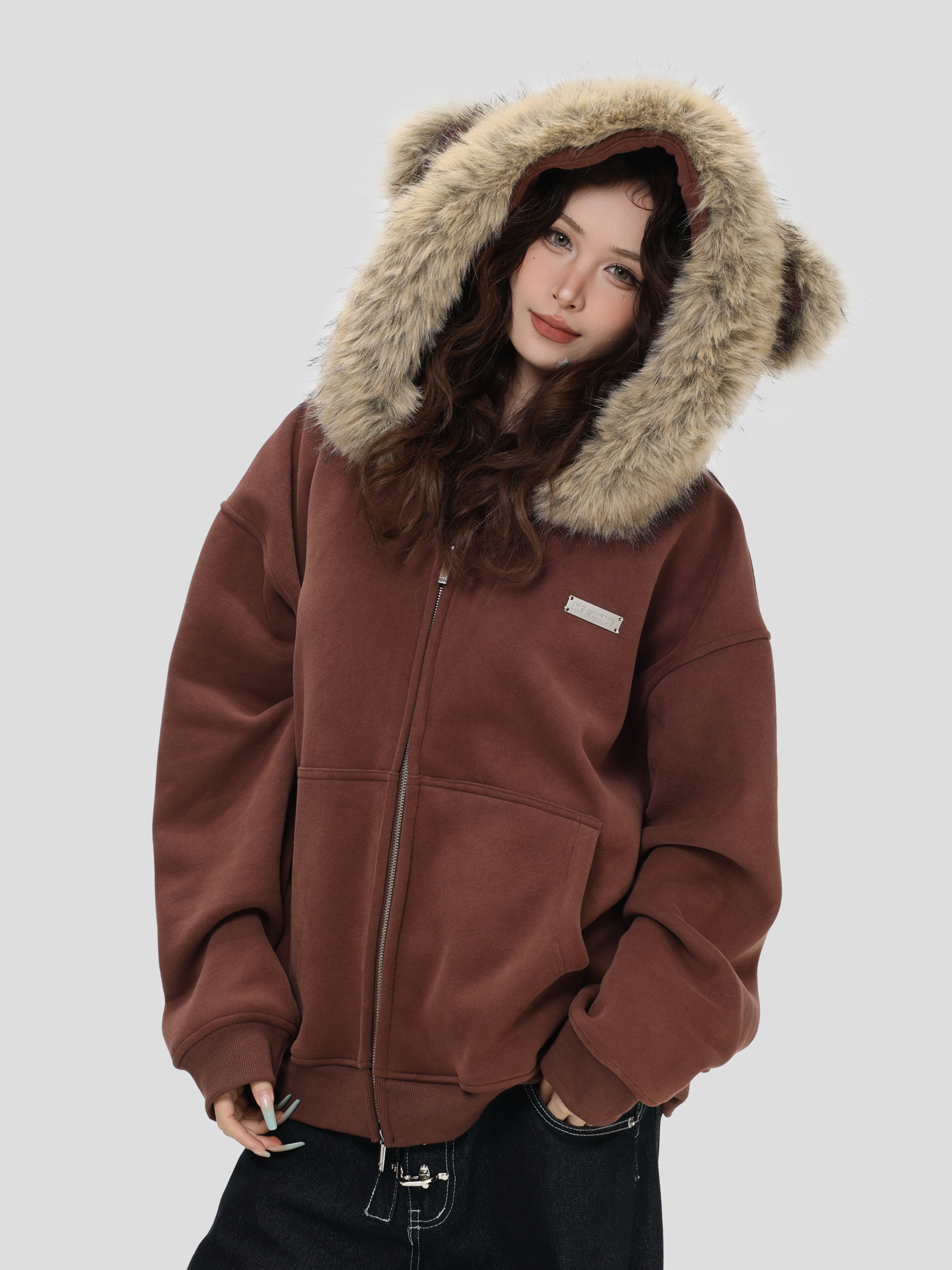 Be the first to review “China-Chic American “Little Bear Ear Hair Collar Cardigan Sweater” Loose Plush Zipper Coat”