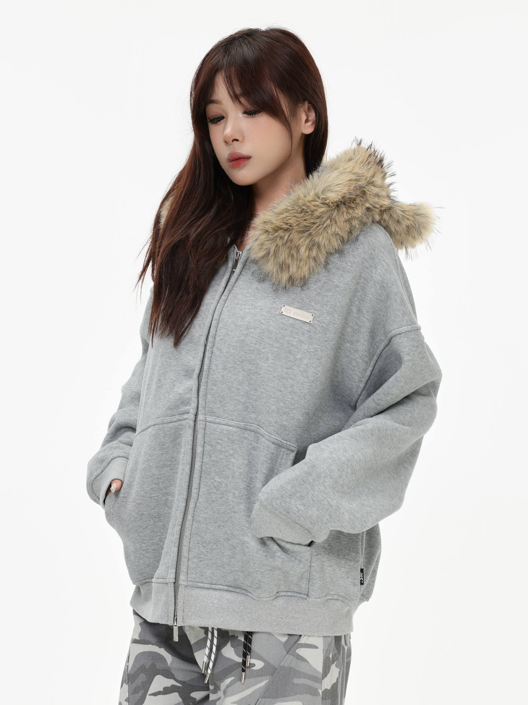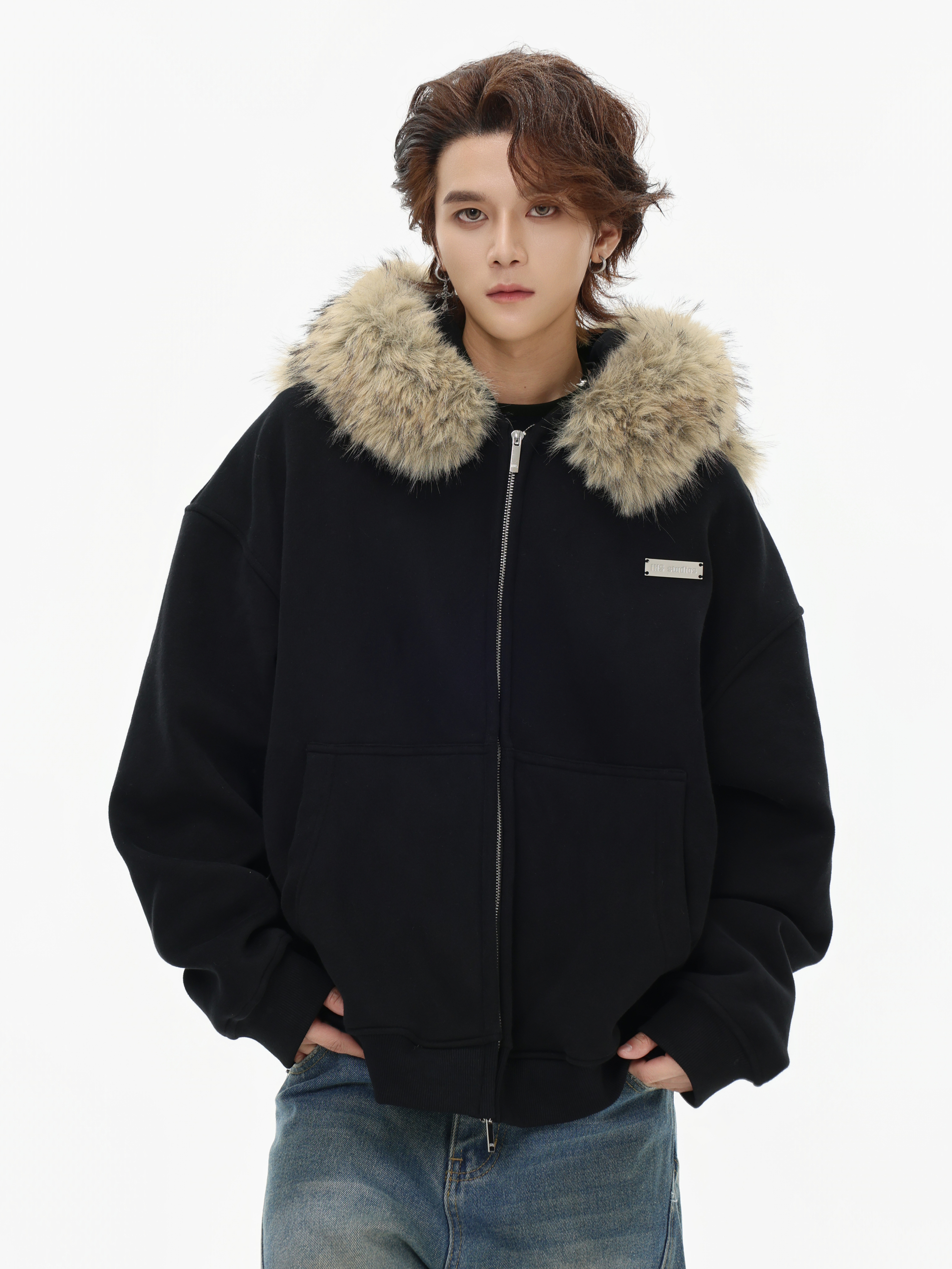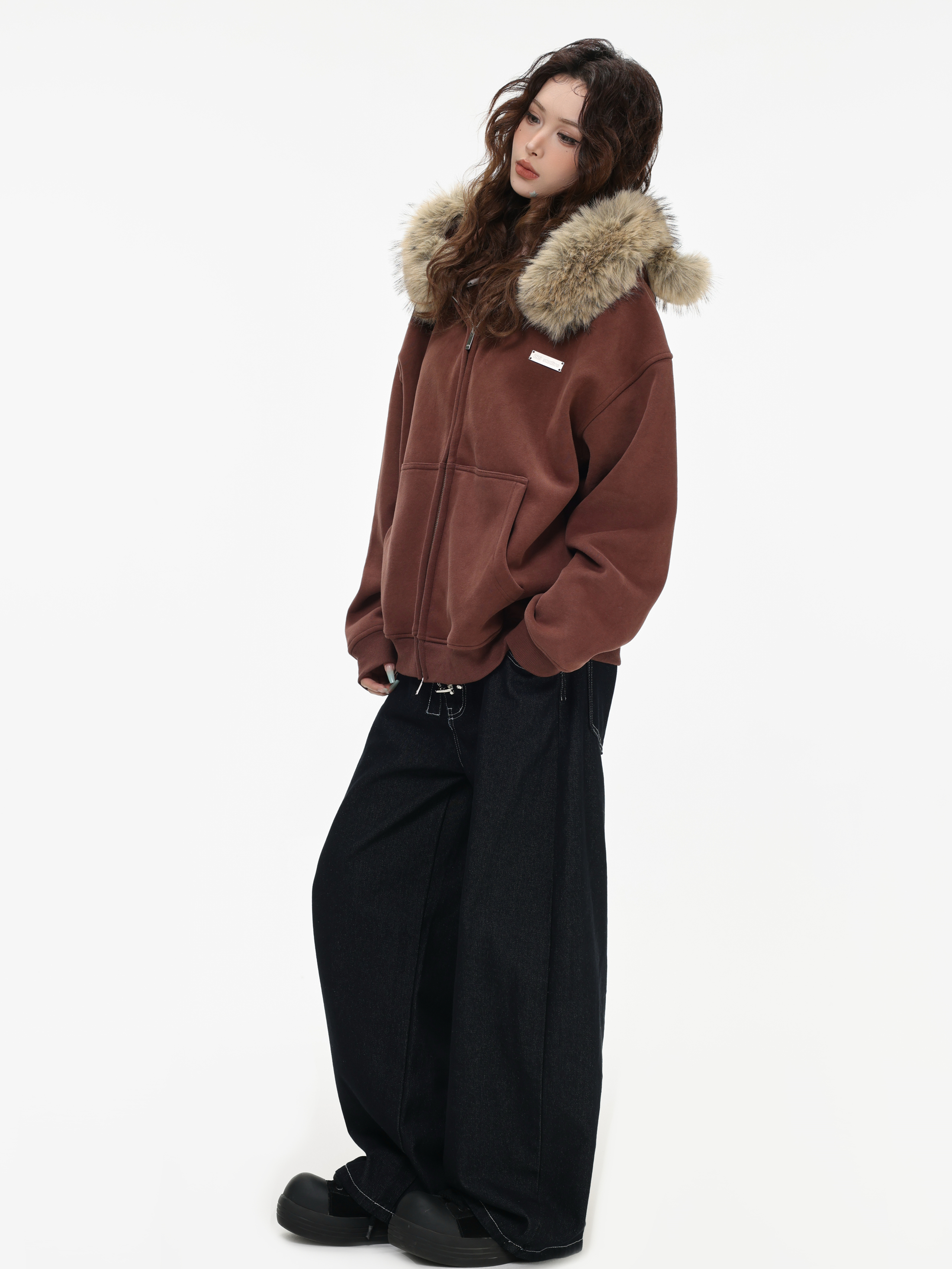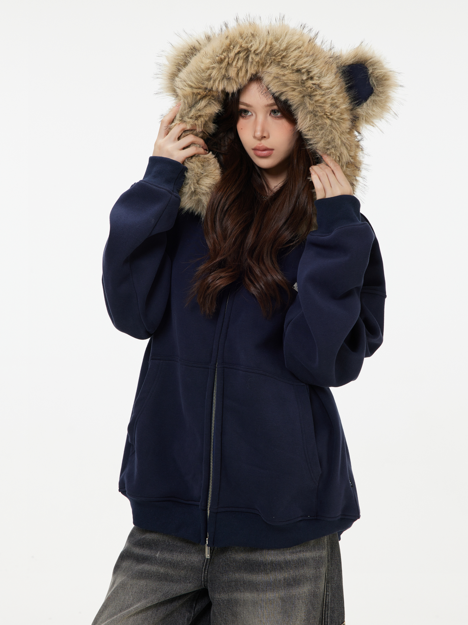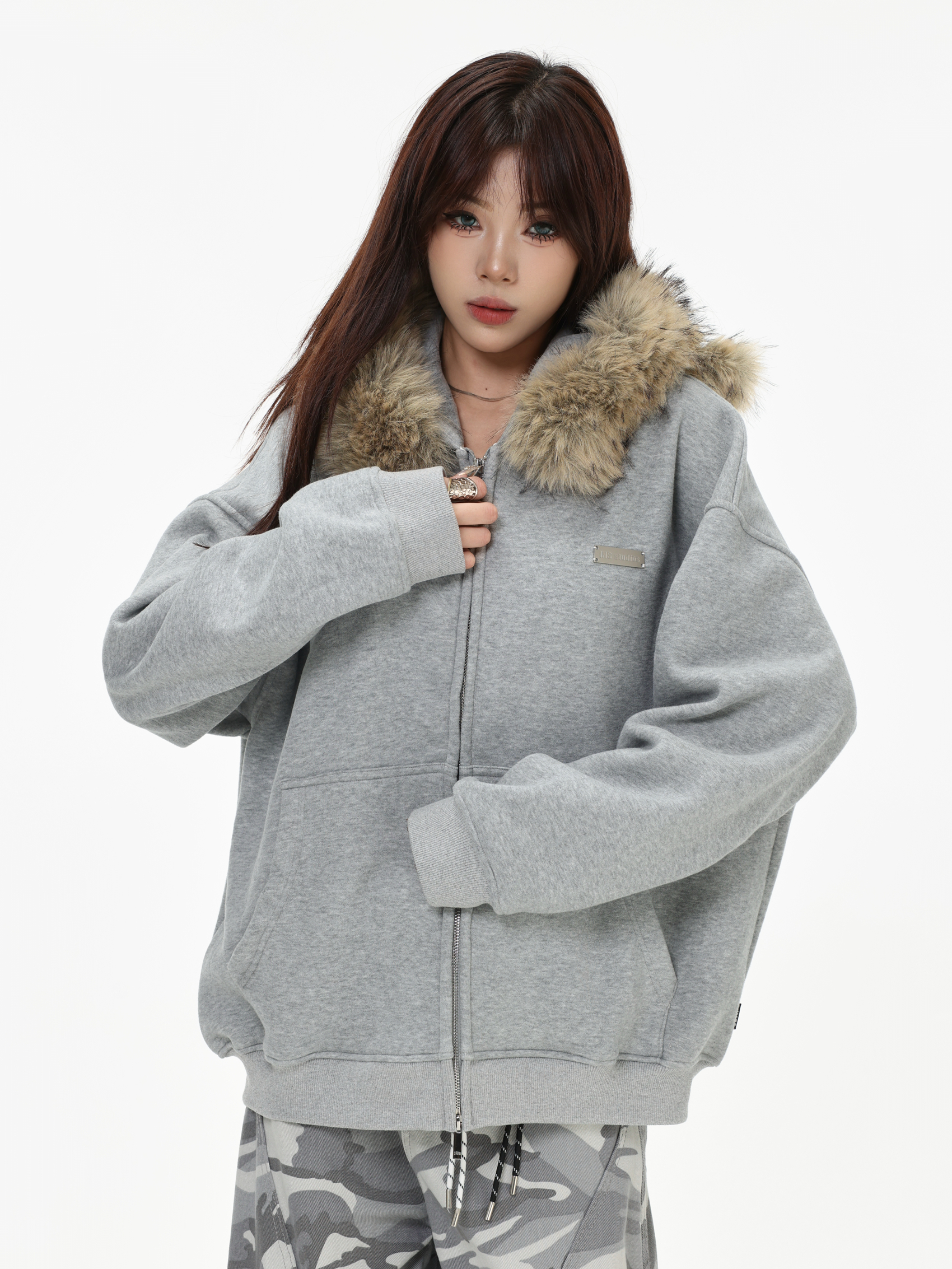 Be the first to review “China-Chic American “Little Bear Ear Hair Collar Cardigan Sweater” Loose Plush Zipper Coat”