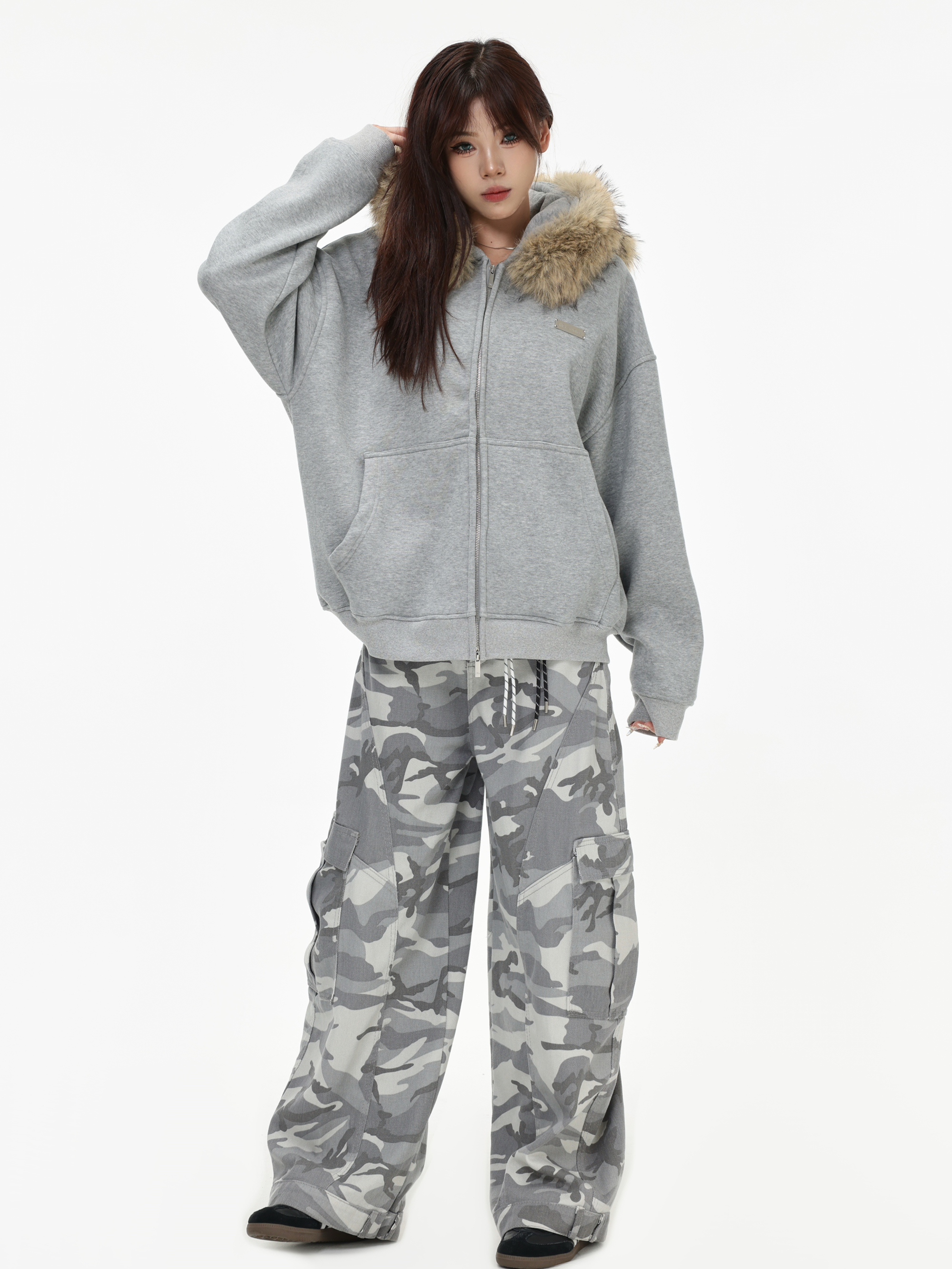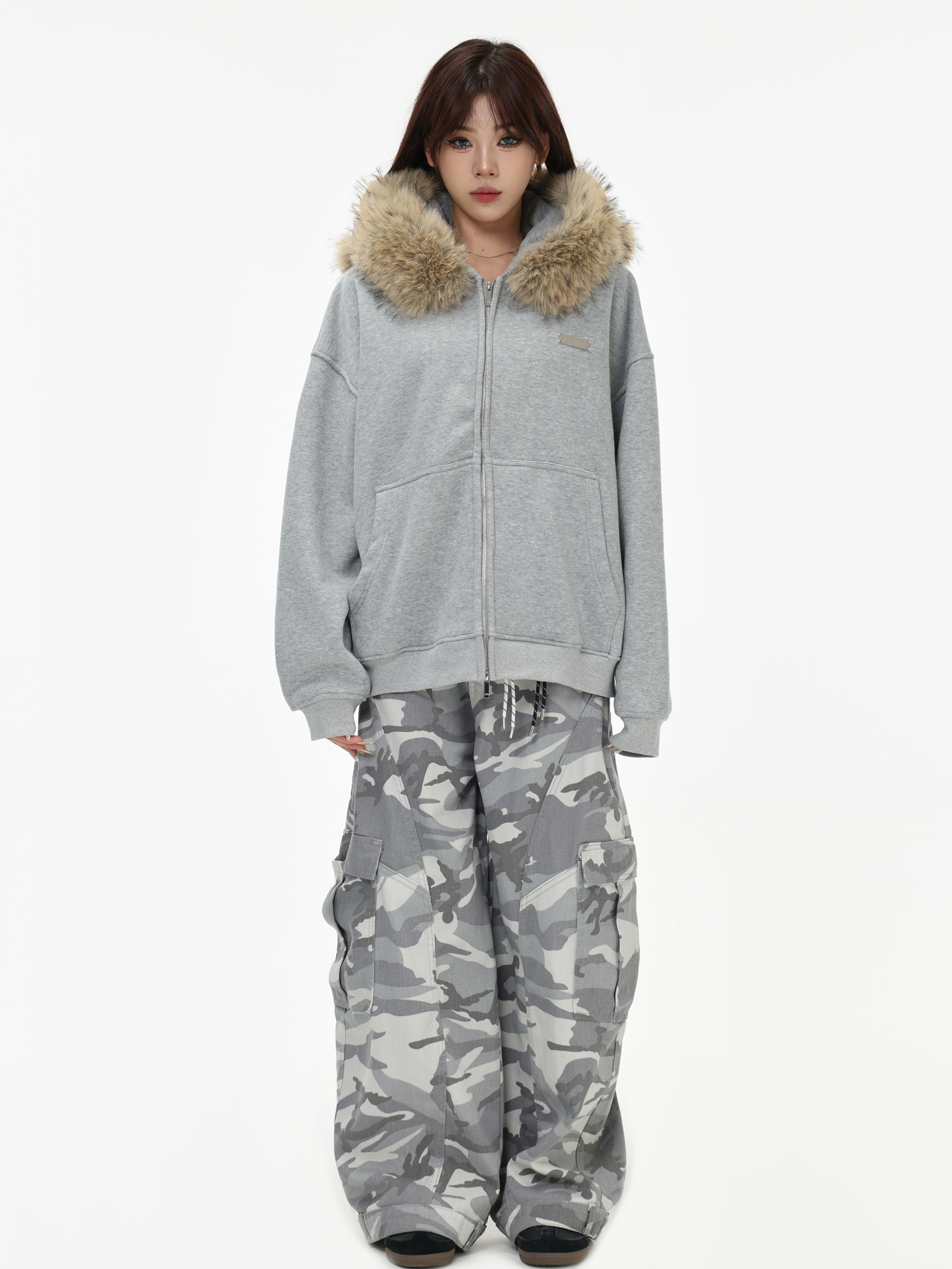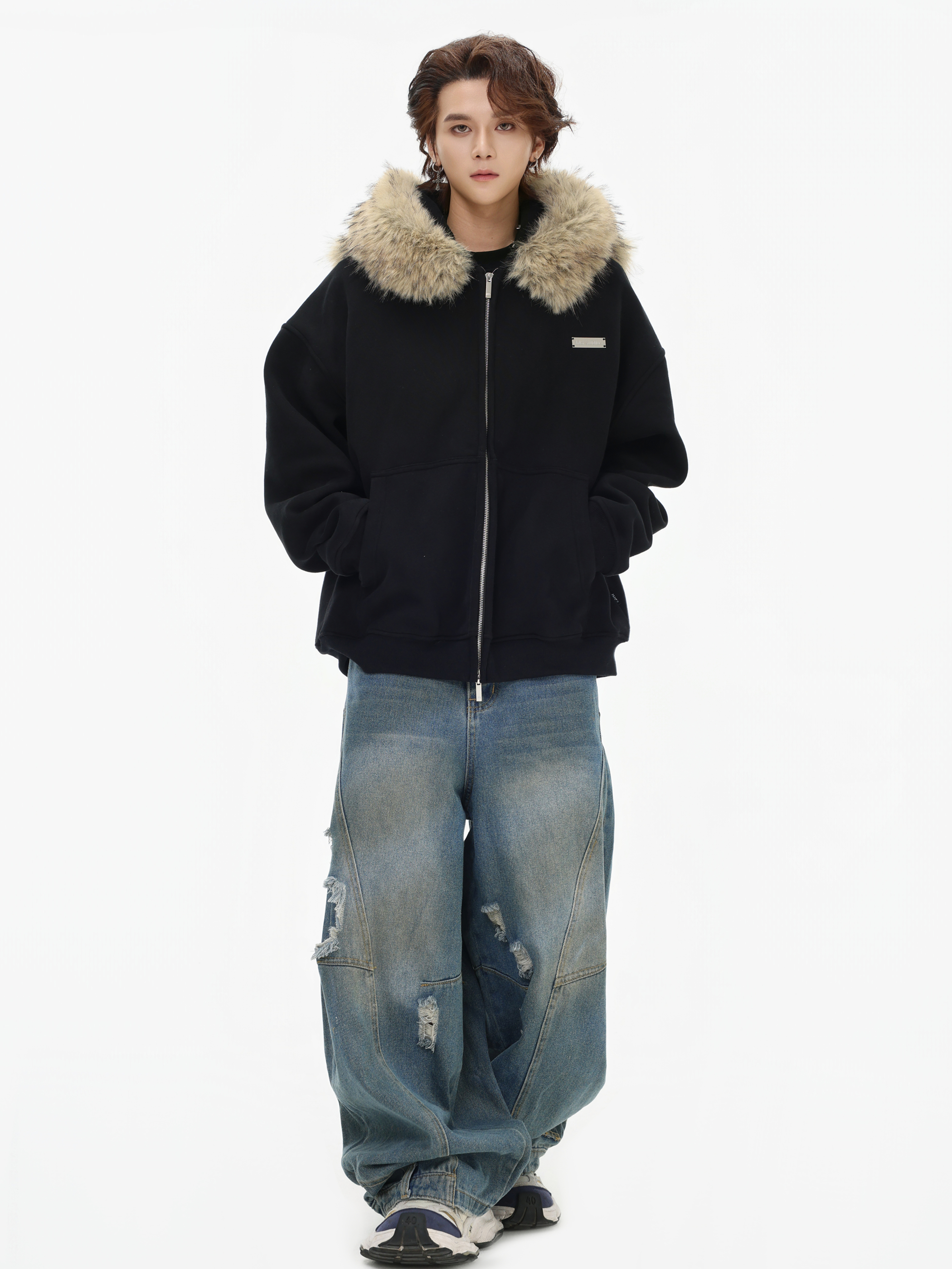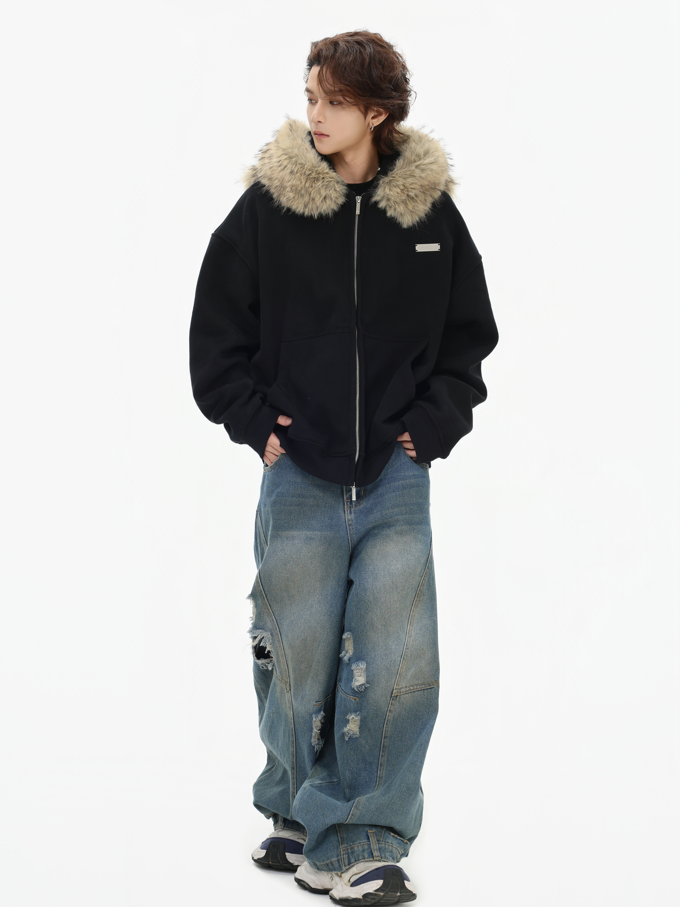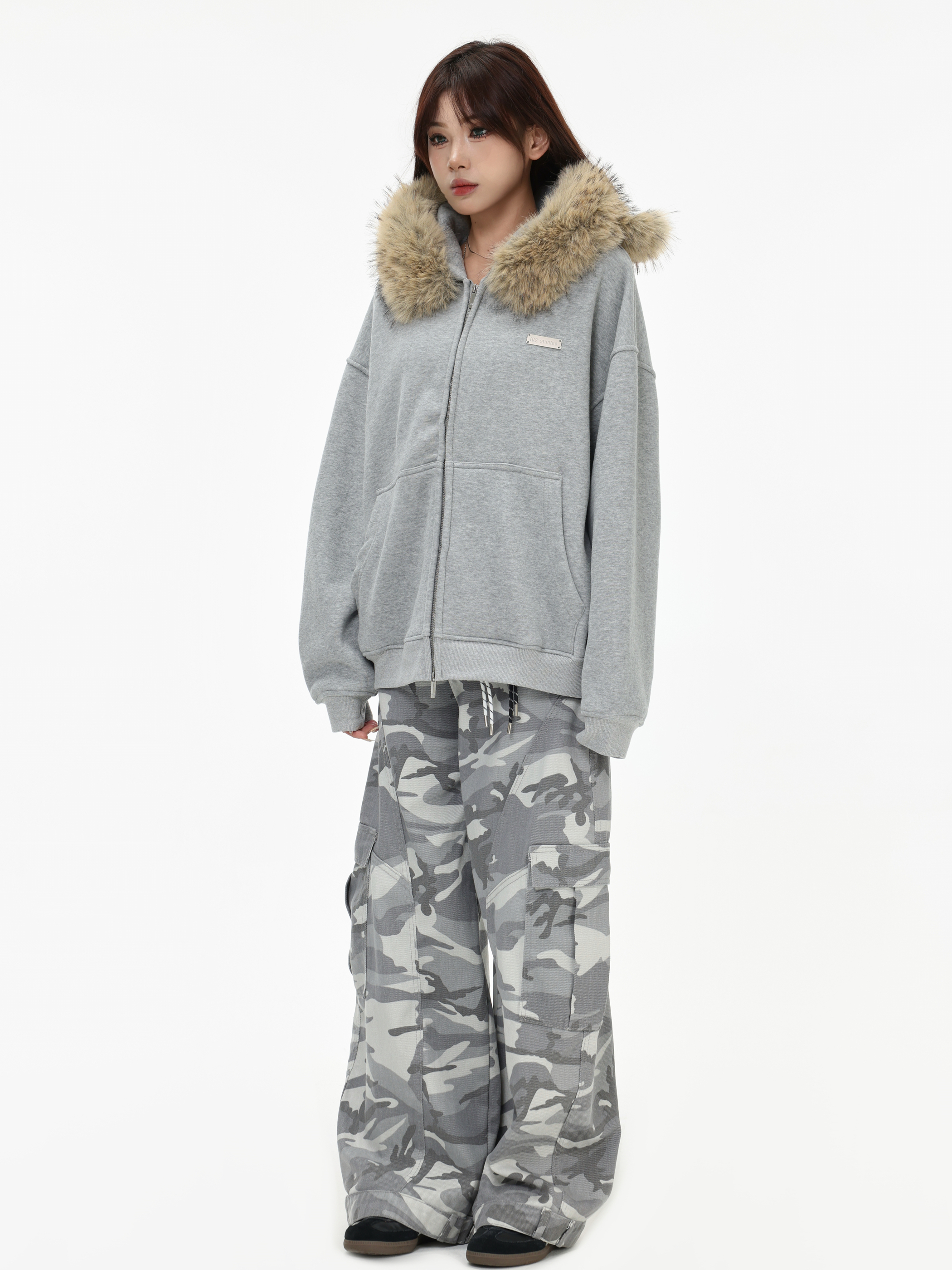 Be the first to review “China-Chic American “Little Bear Ear Hair Collar Cardigan Sweater” Loose Plush Zipper Coat”