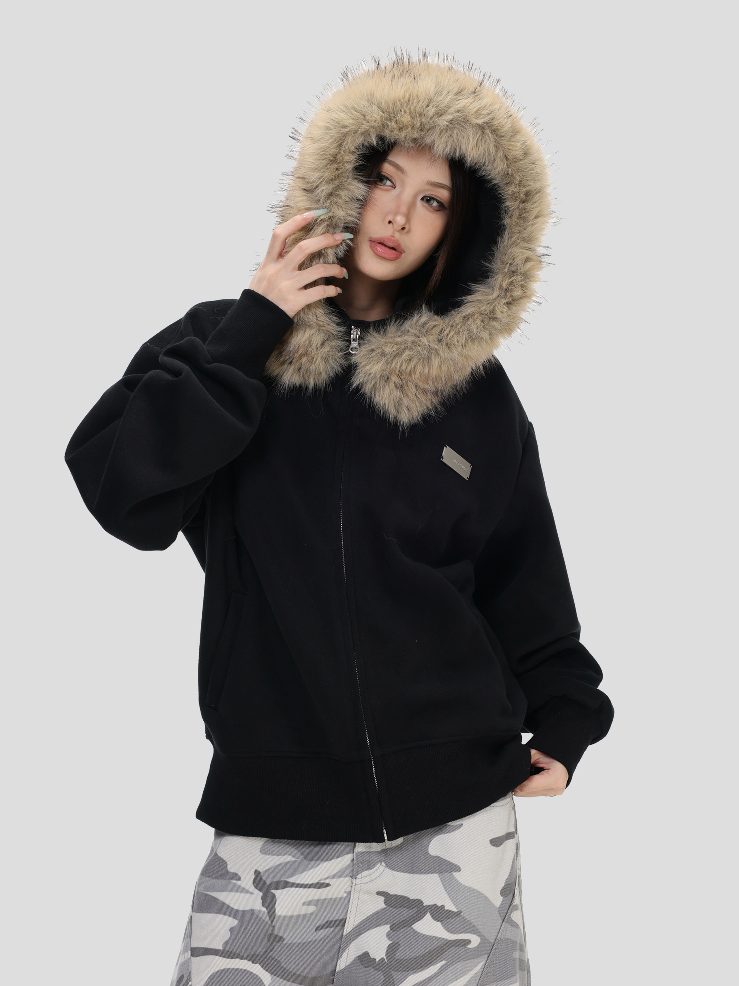 Be the first to review “China-Chic brand American “detachable large wool collar short sweater” thin cardigan coat women”
