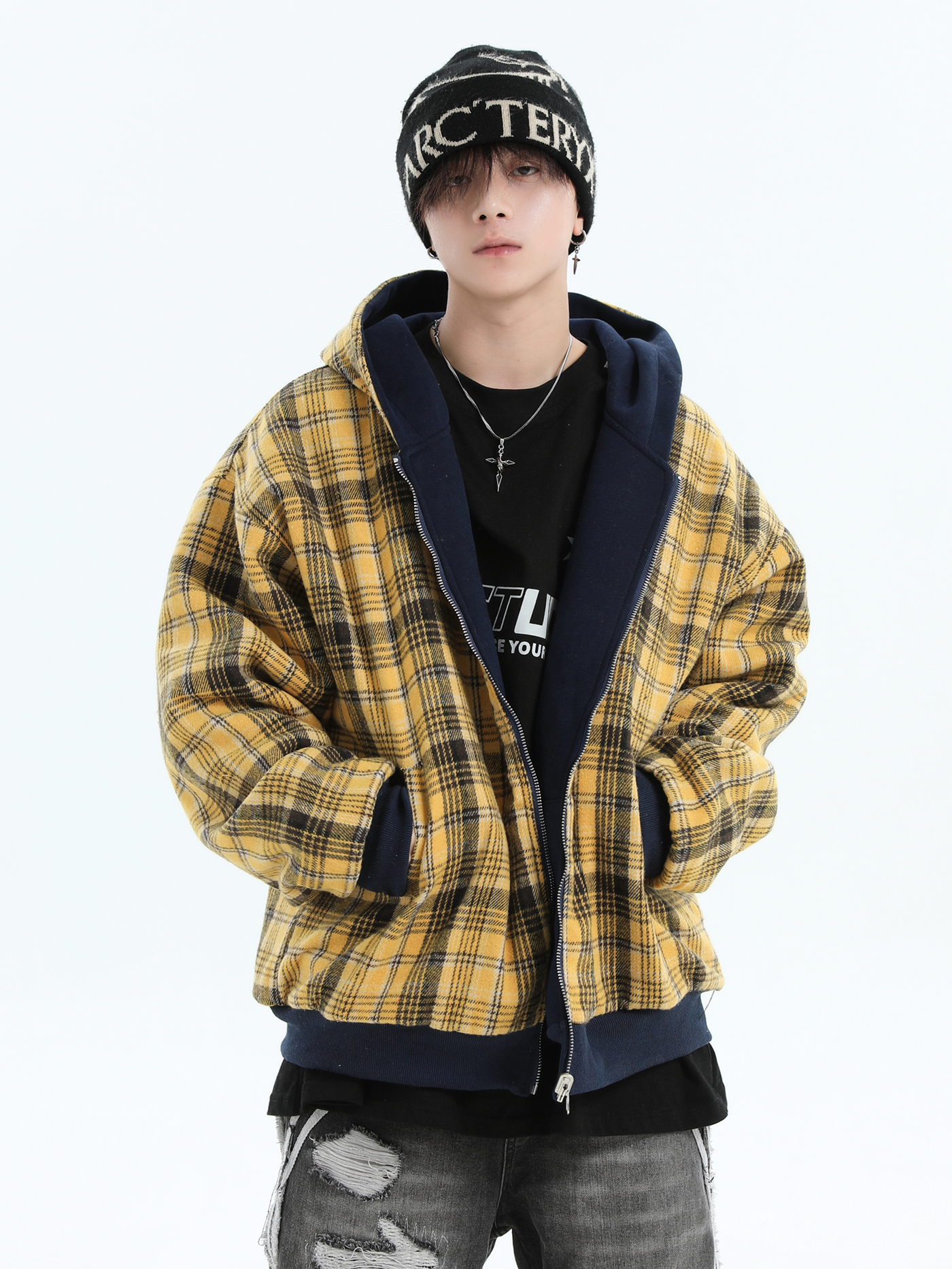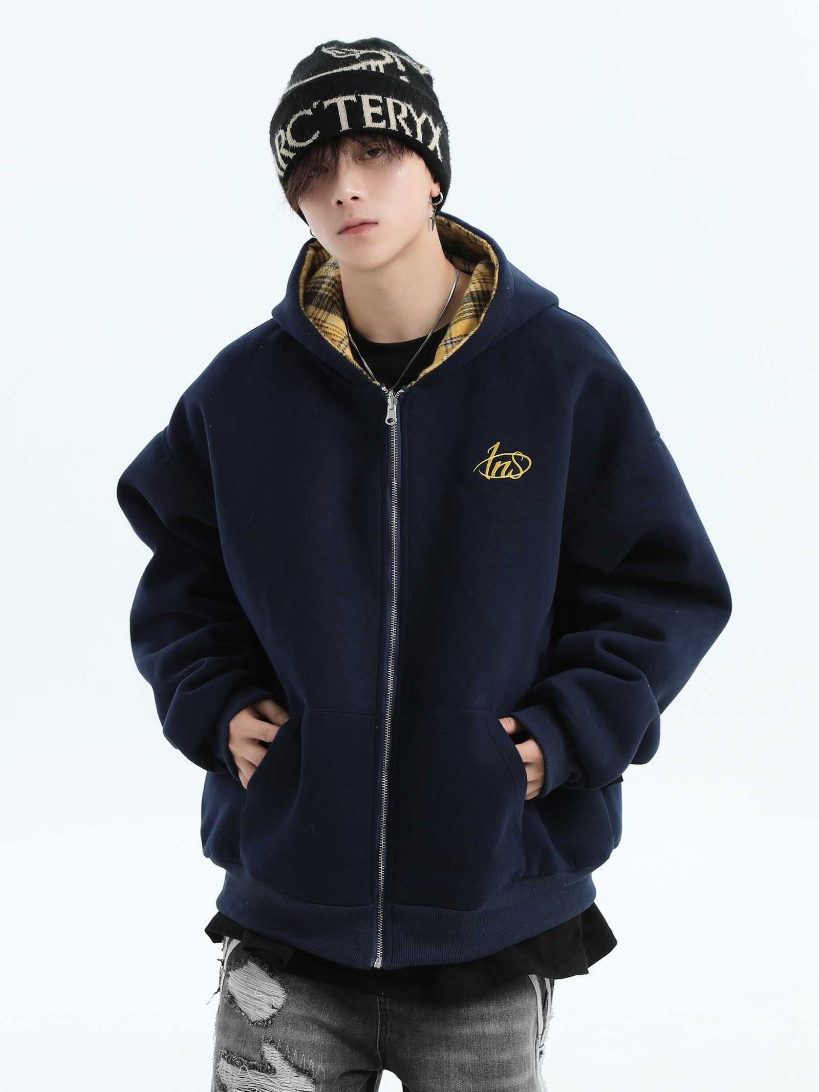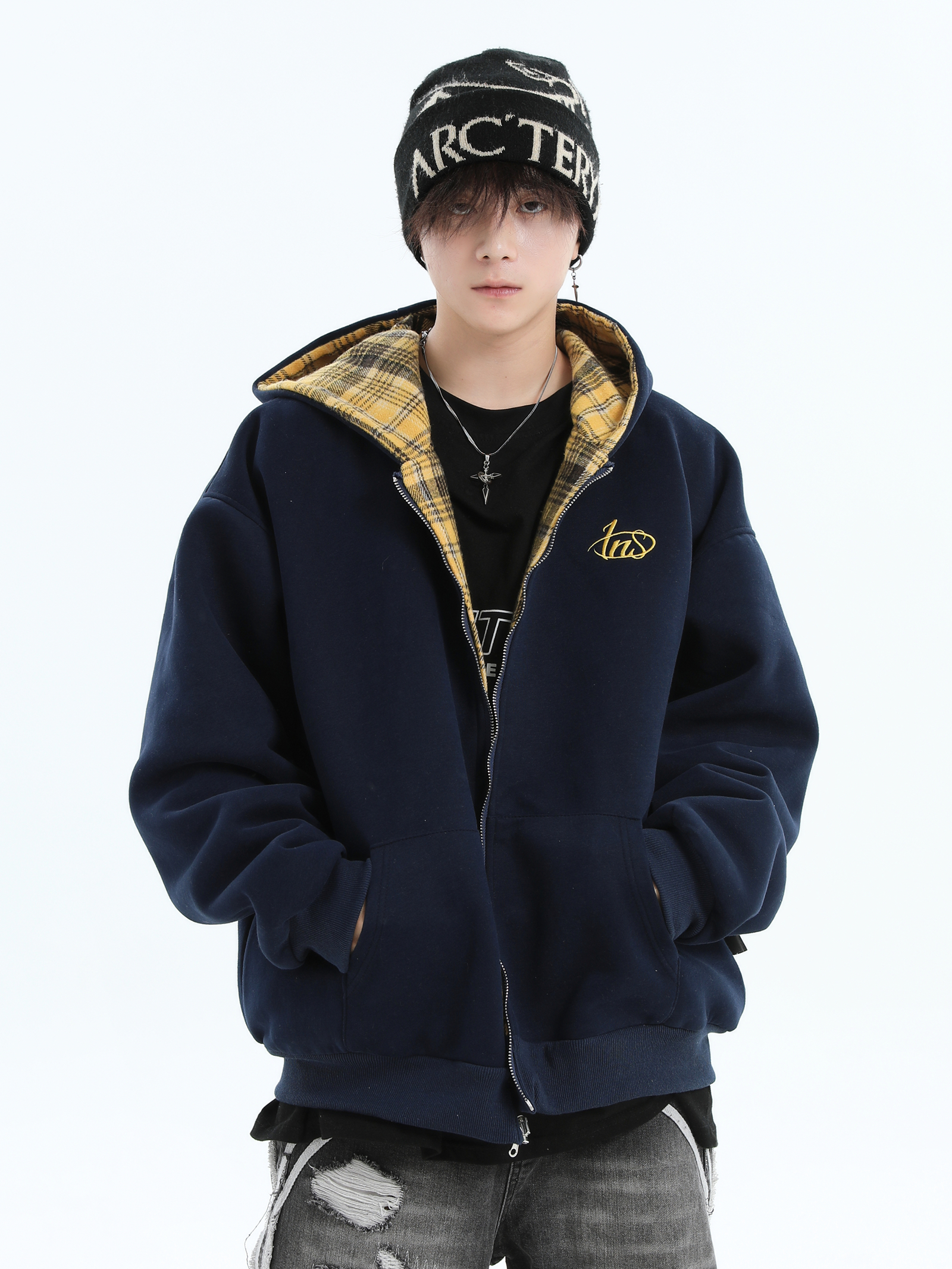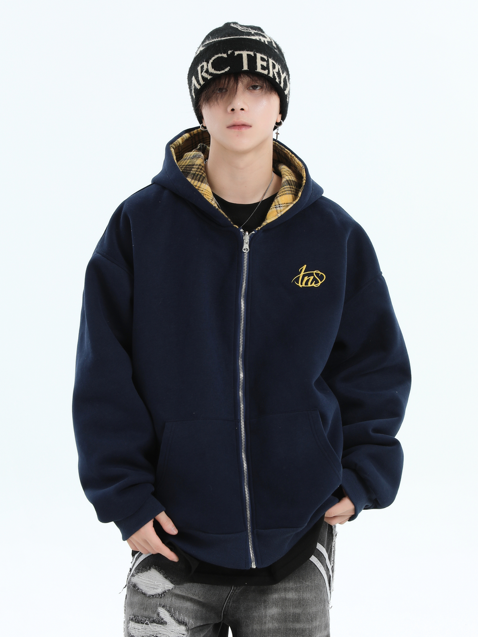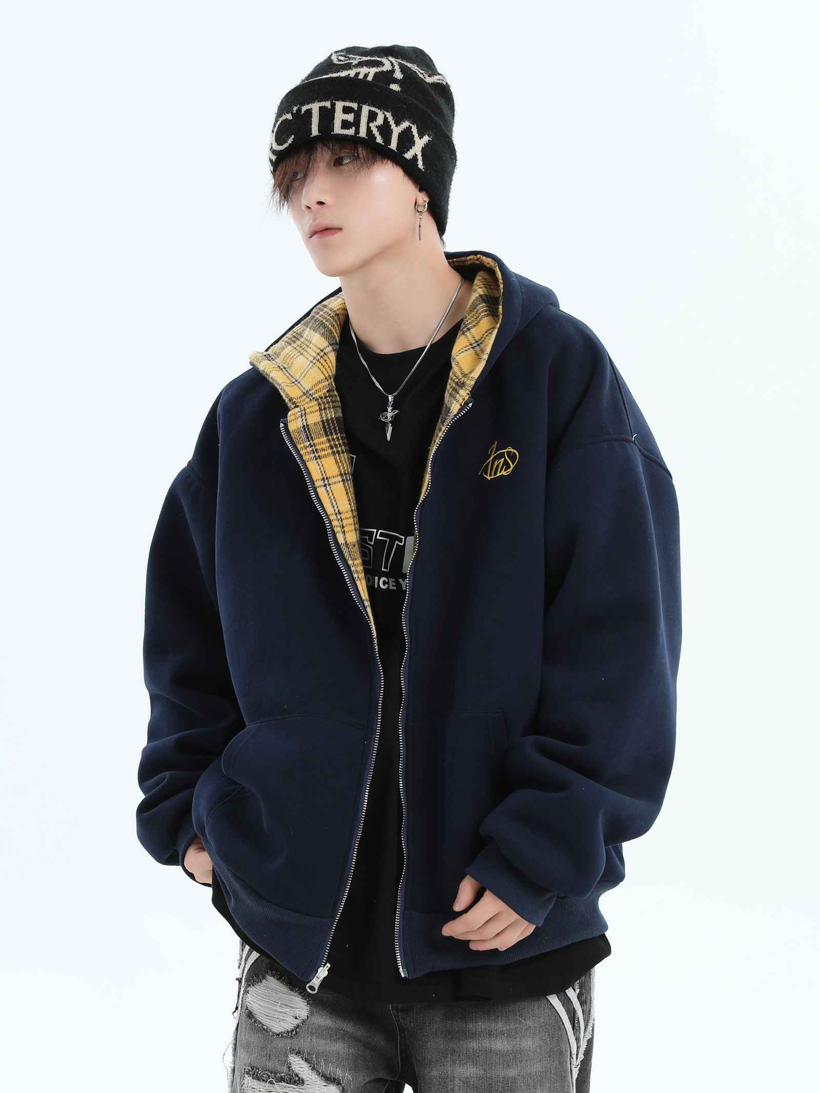 Be the first to review “China-Chic Brand Couple American Double Sided Reversed Plaid Hoodie Loose Cardigan Coat Male”