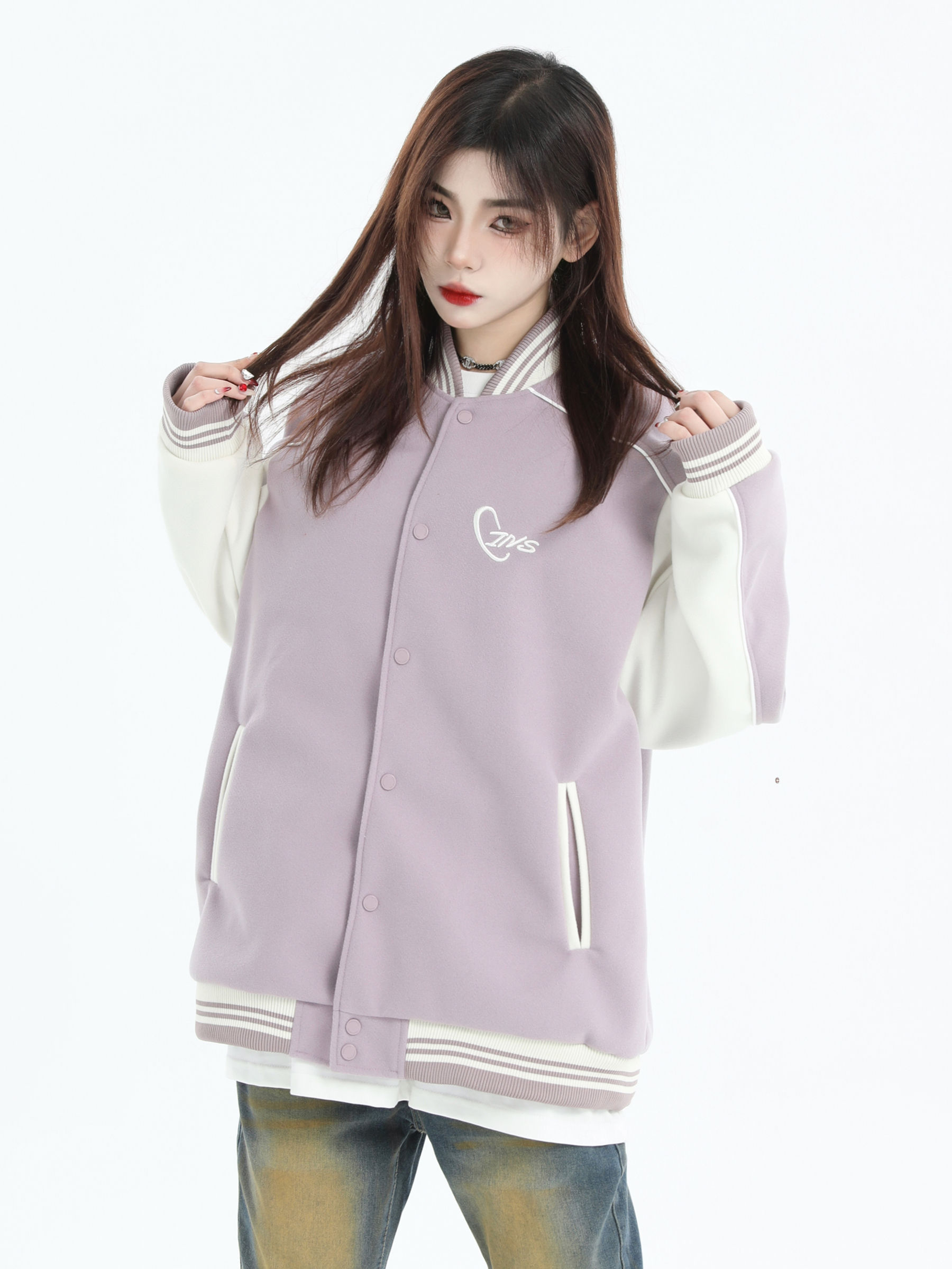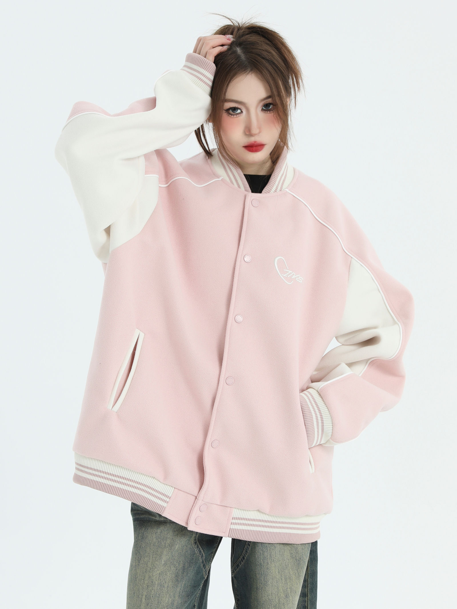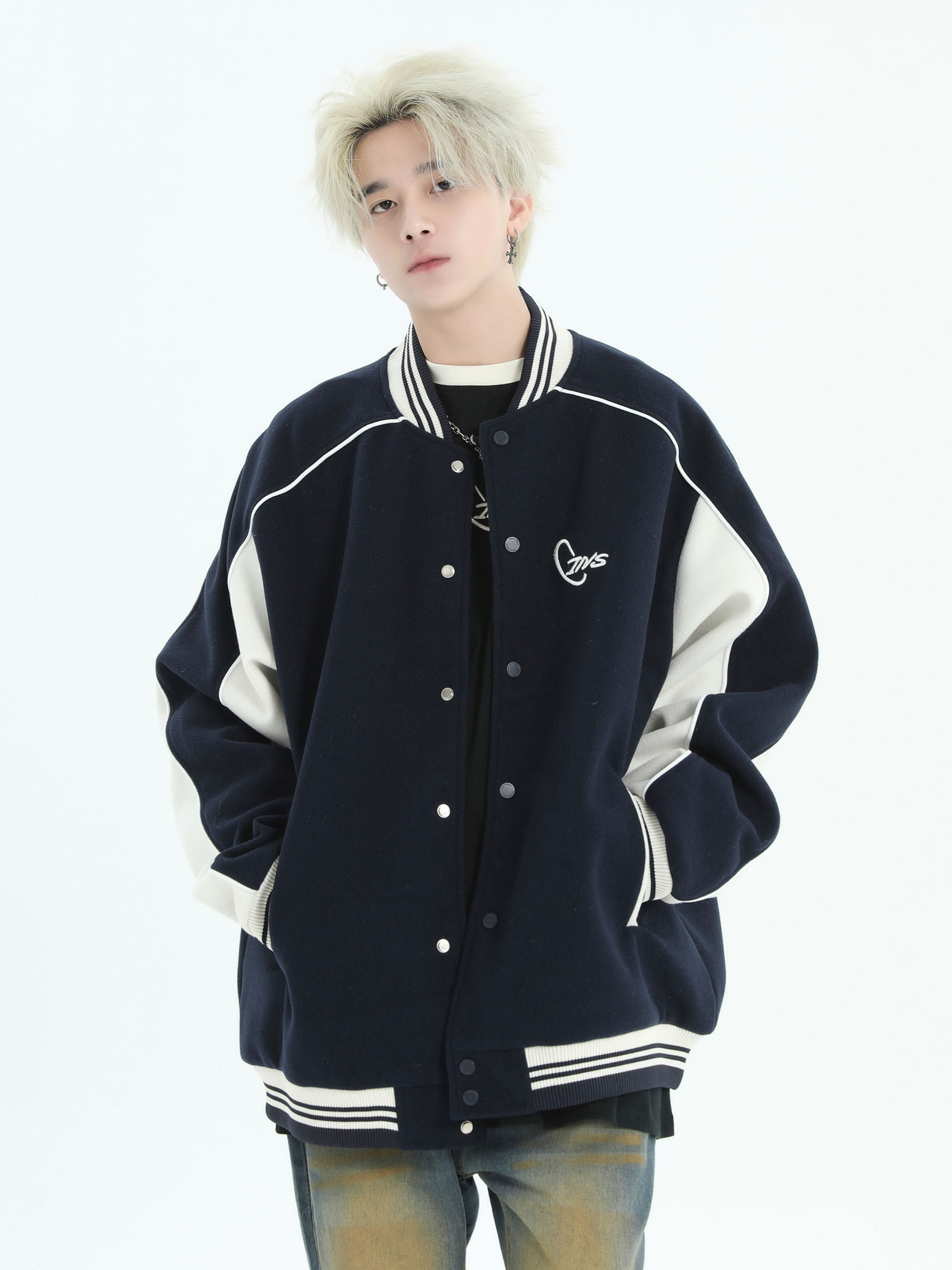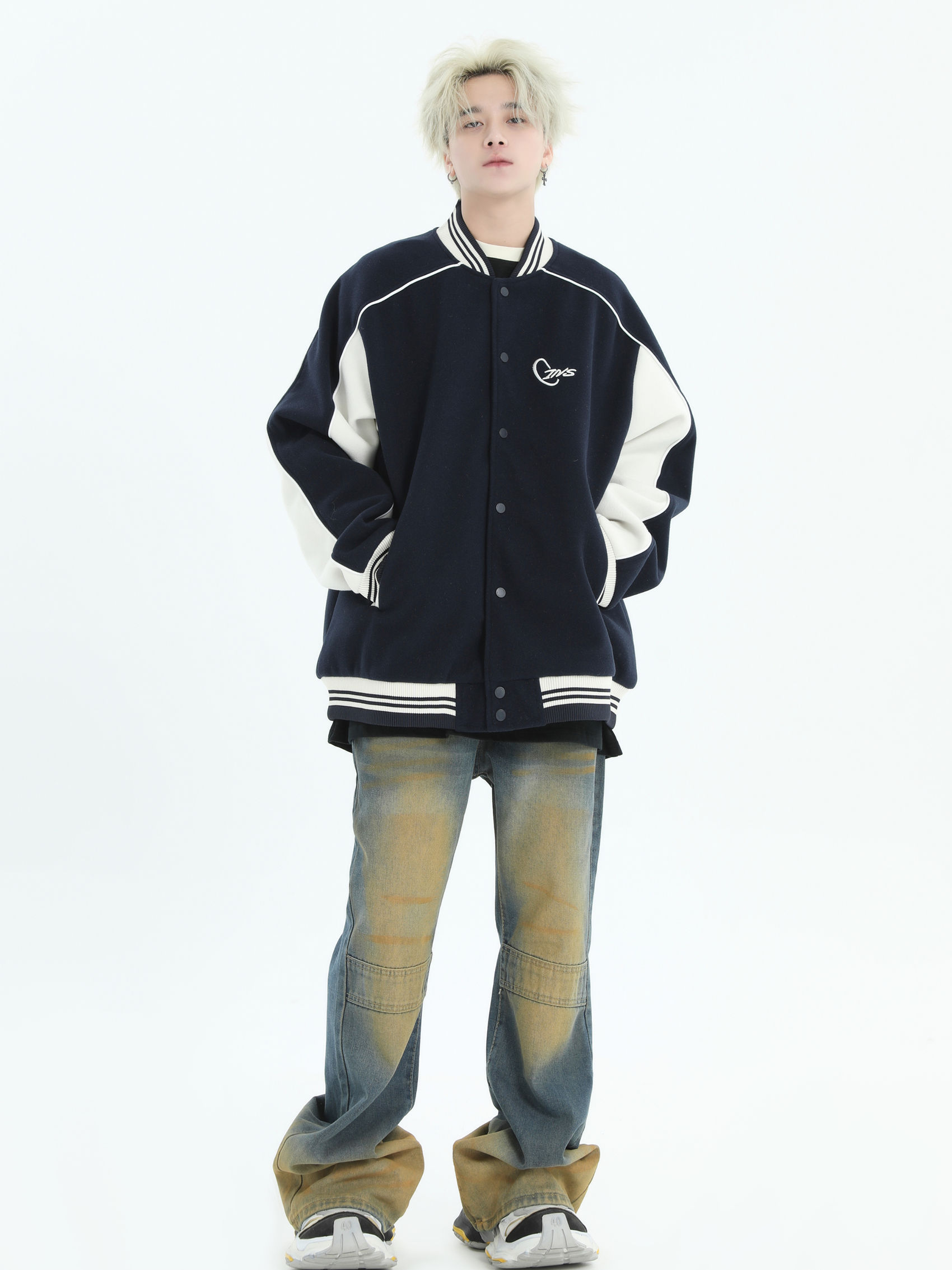 Be the first to review “China-Chic Brand Couple American small logo color blocking striped baseball jacket loose jacket jacket men”