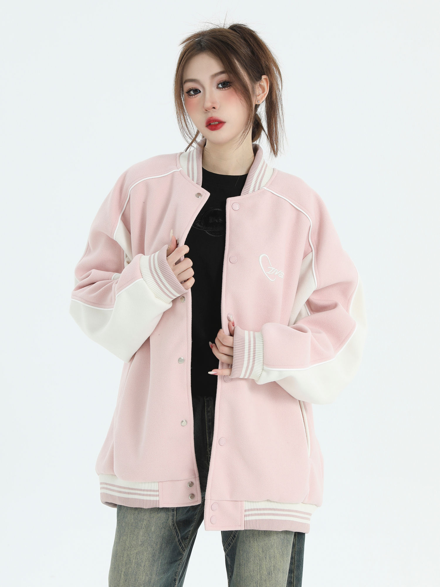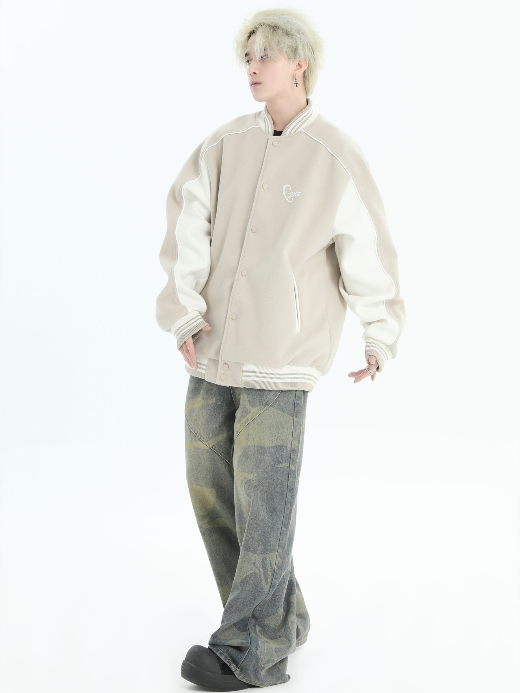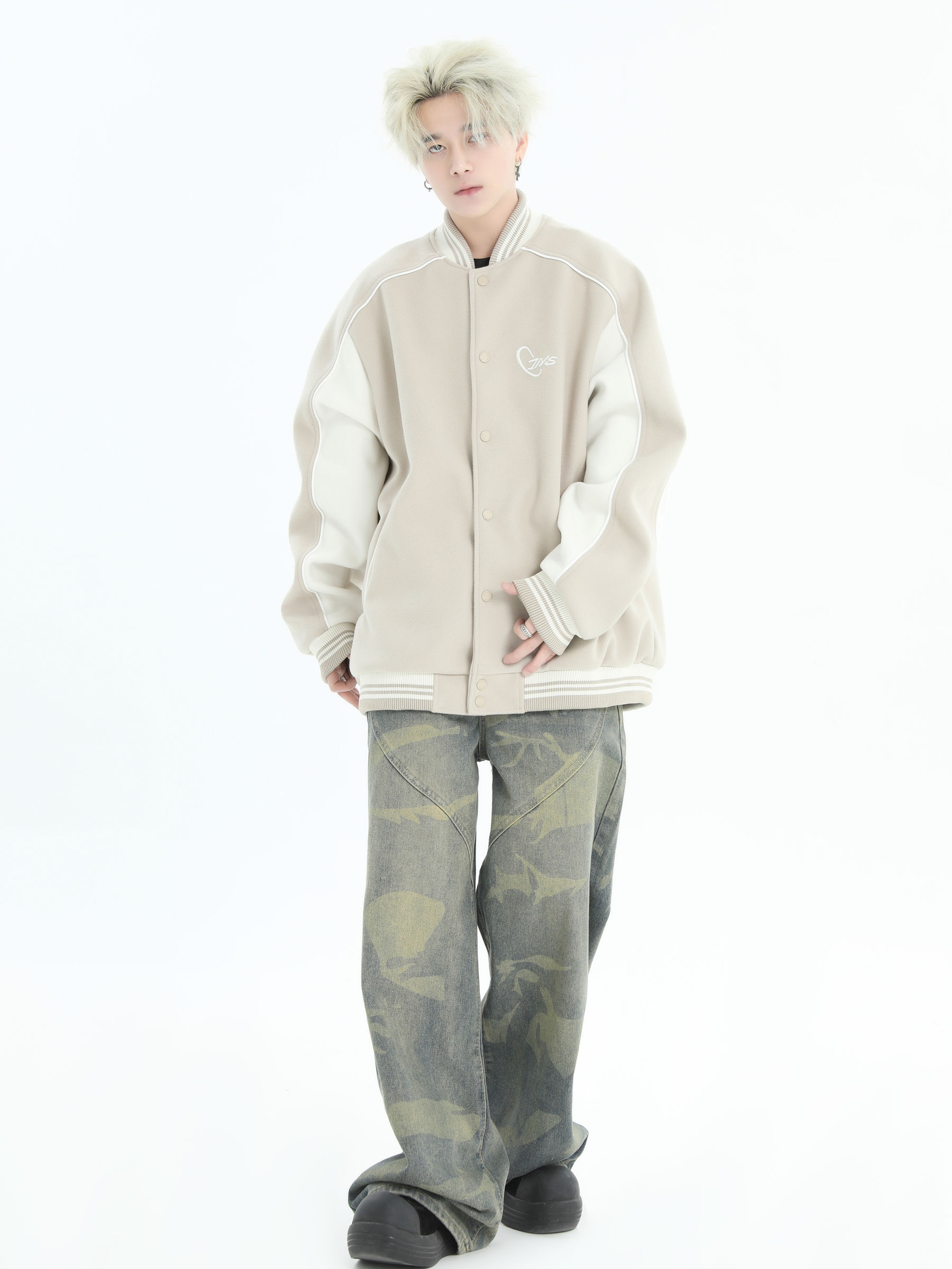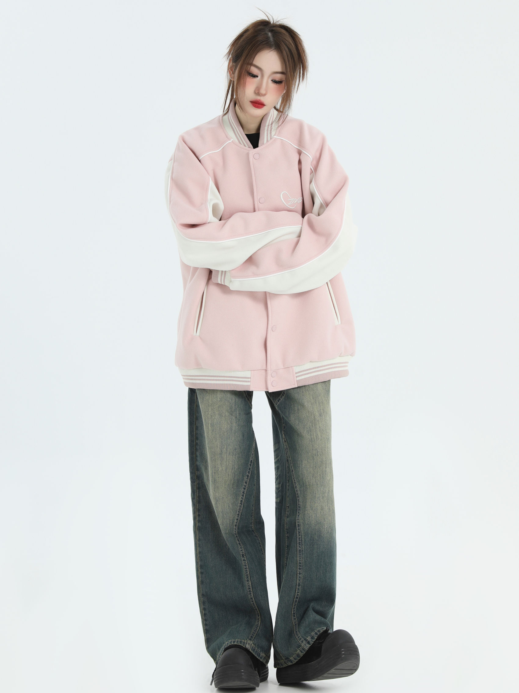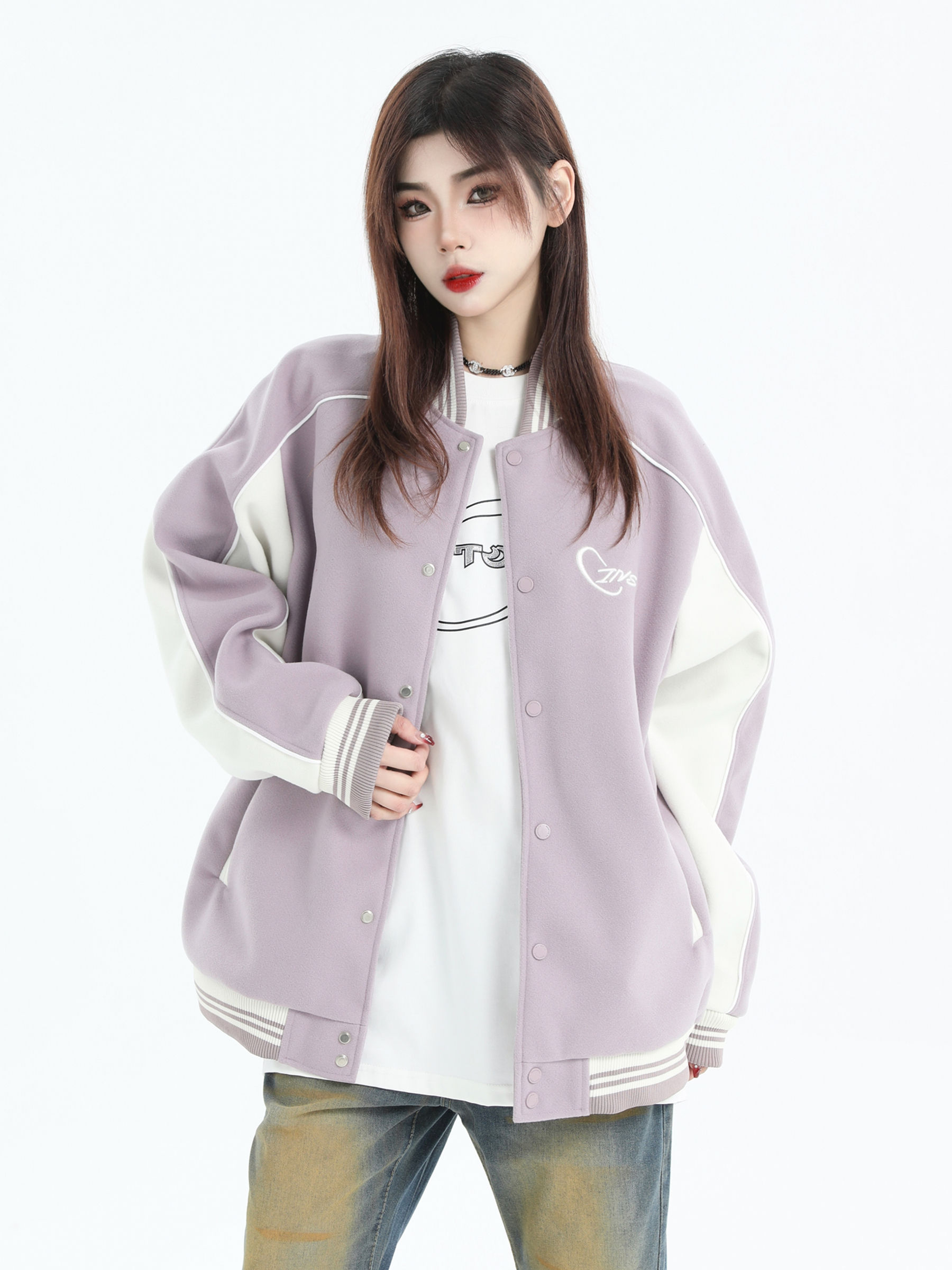 Be the first to review “China-Chic Brand Couple American small logo color blocking striped baseball jacket loose jacket jacket men”