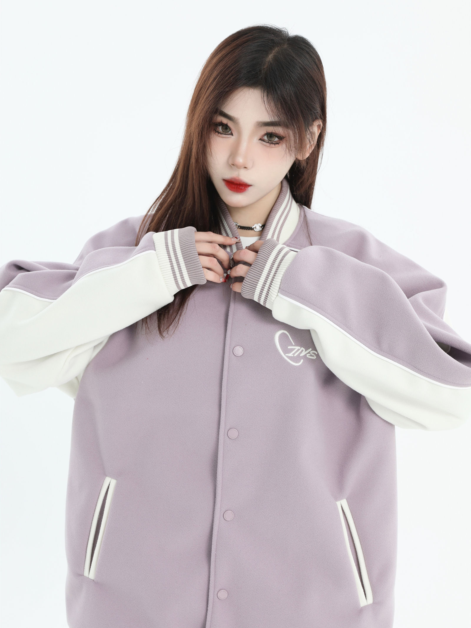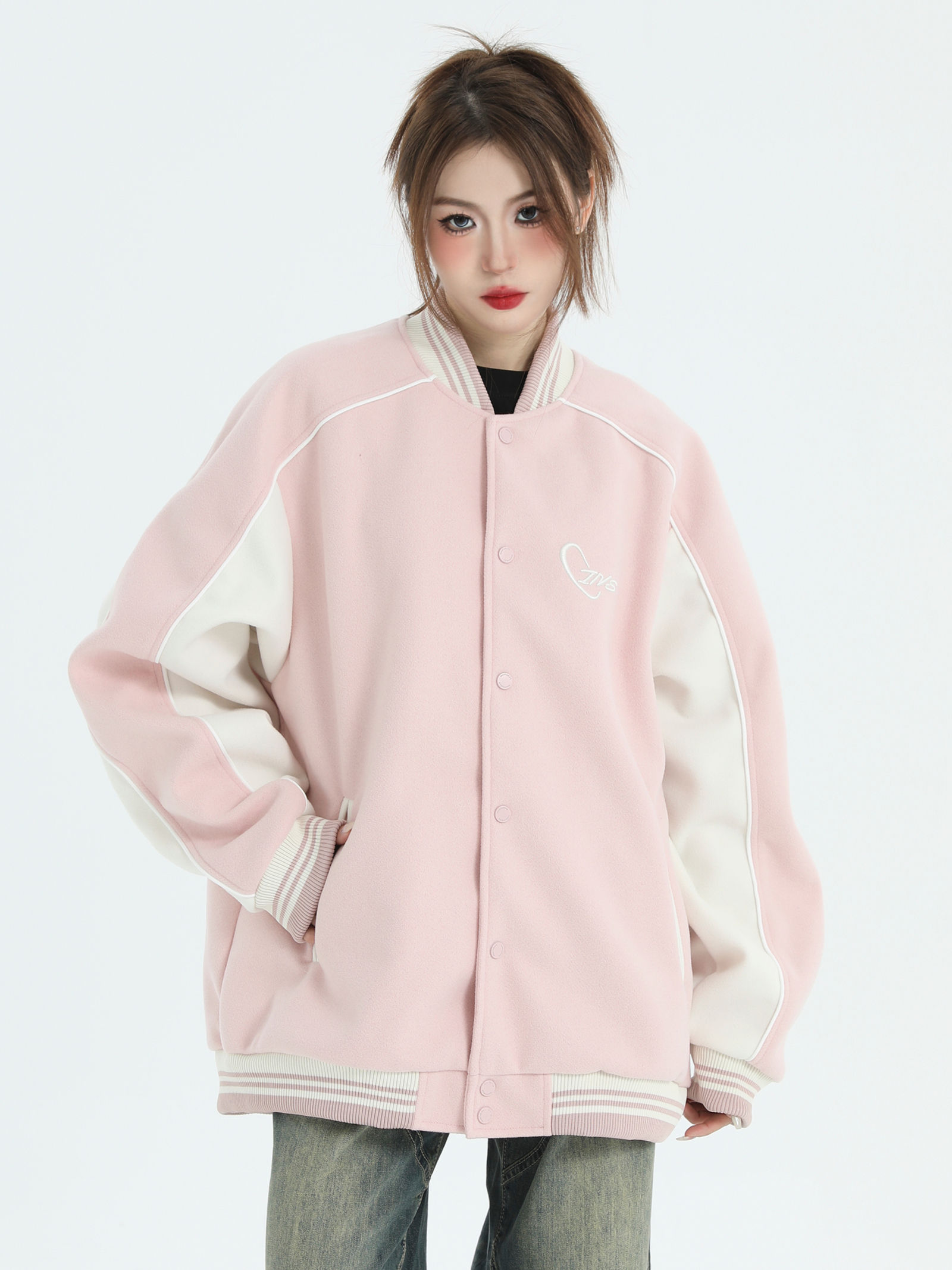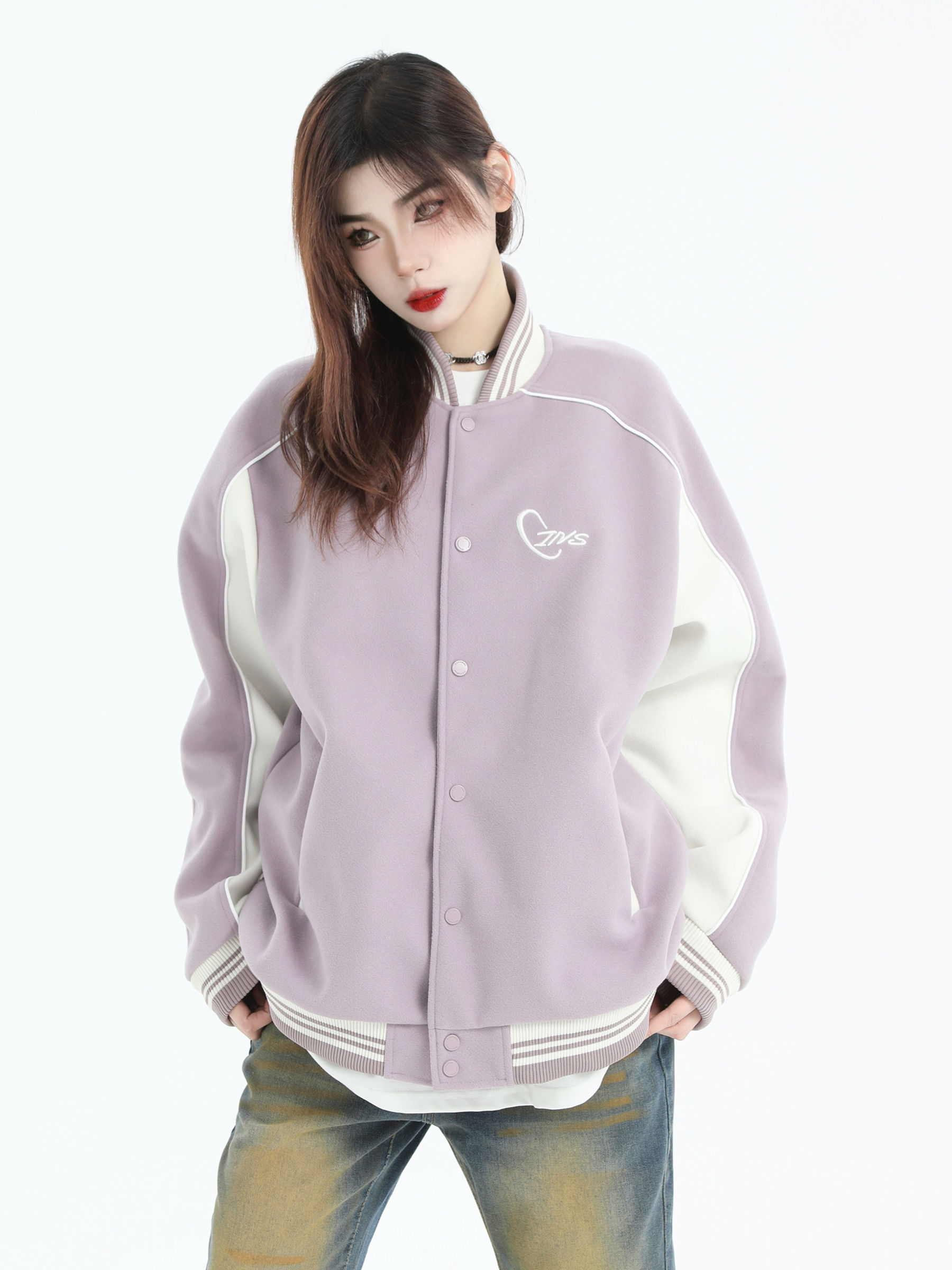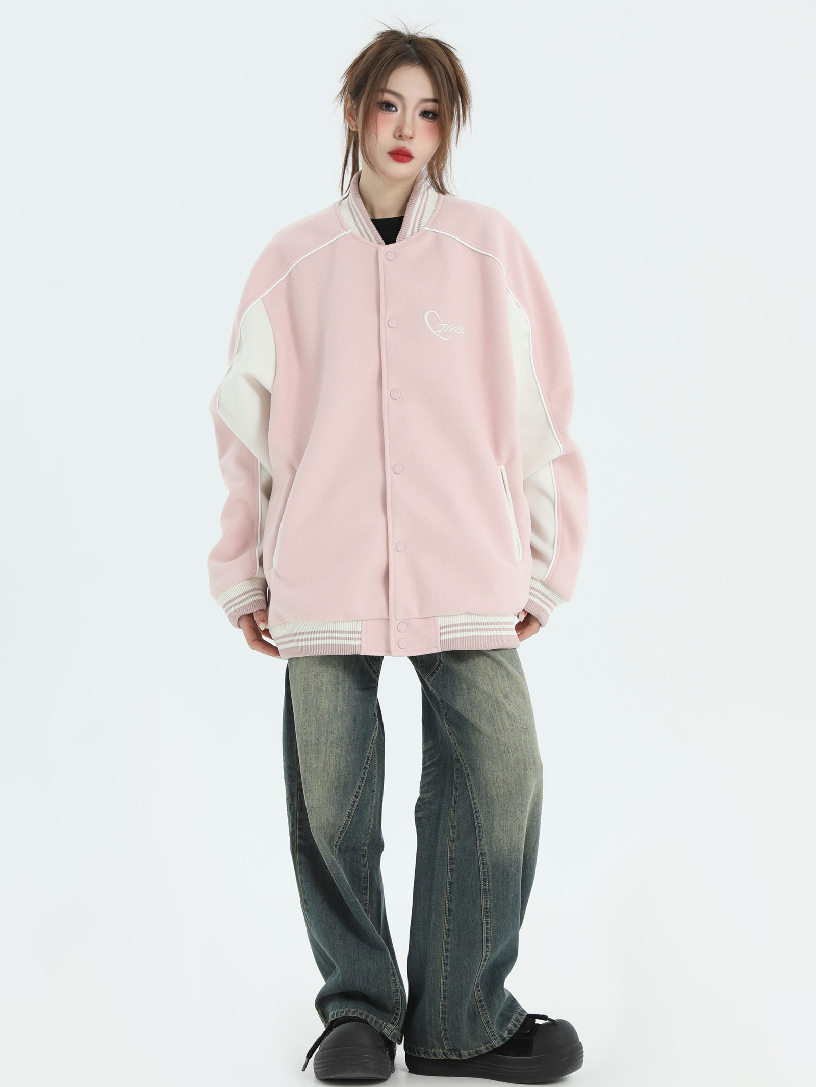 Be the first to review “China-Chic Brand Couple American small logo color blocking striped baseball jacket loose jacket jacket men”