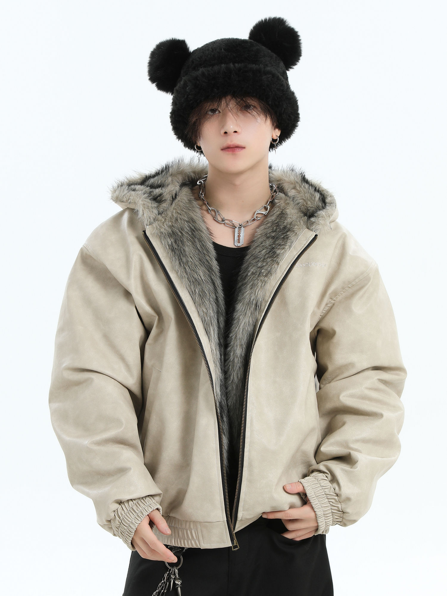 Be the first to review “China-Chic Brand Couple American Woolen Collar Block Mountain Carving Jacket Loose Thermal Jacket PU Leather Cotton Suit”