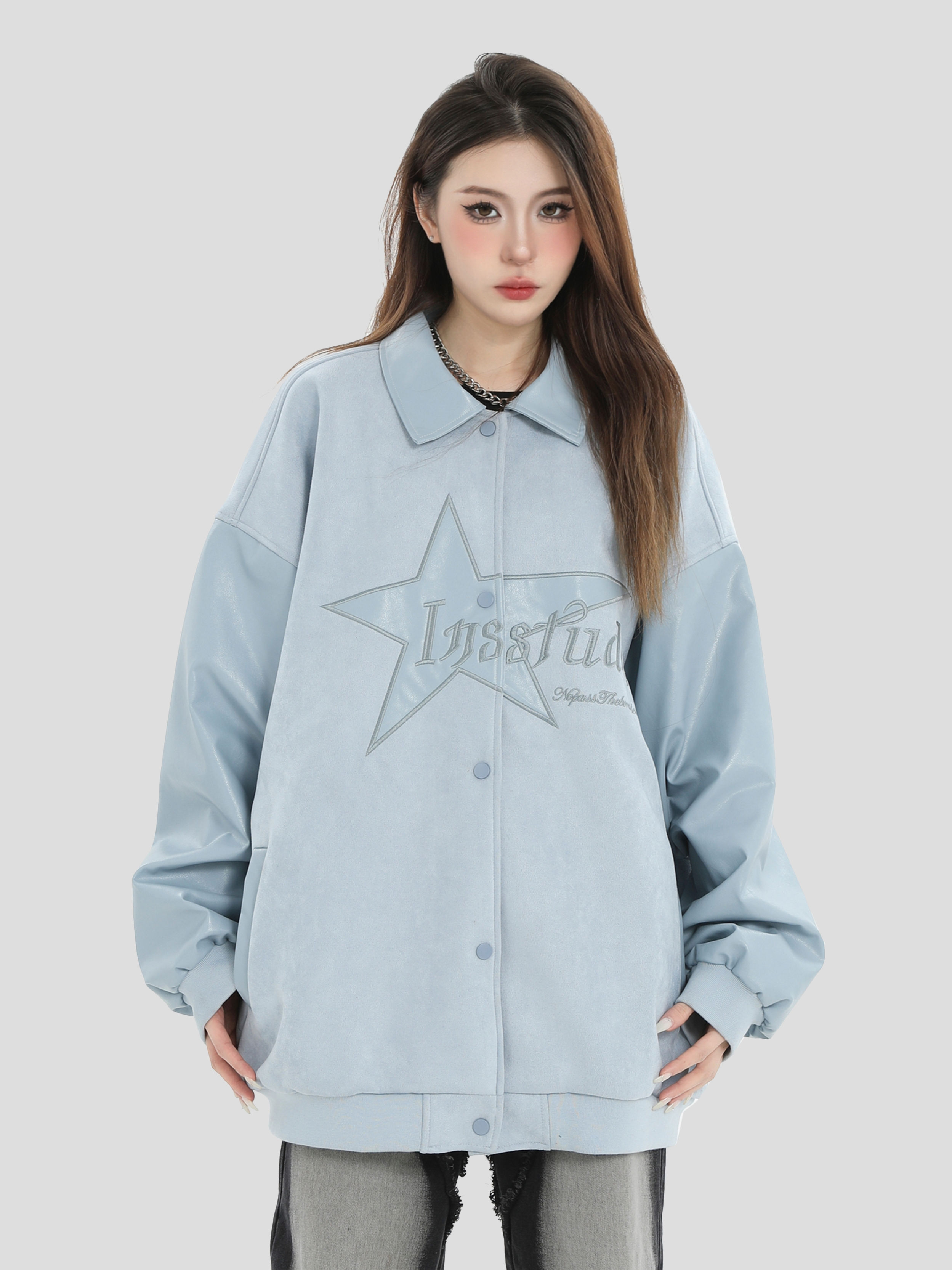 China-Chic Brand Lovers American Star LOGO Suede Baseball Suit Loose Jacket Jacket Men