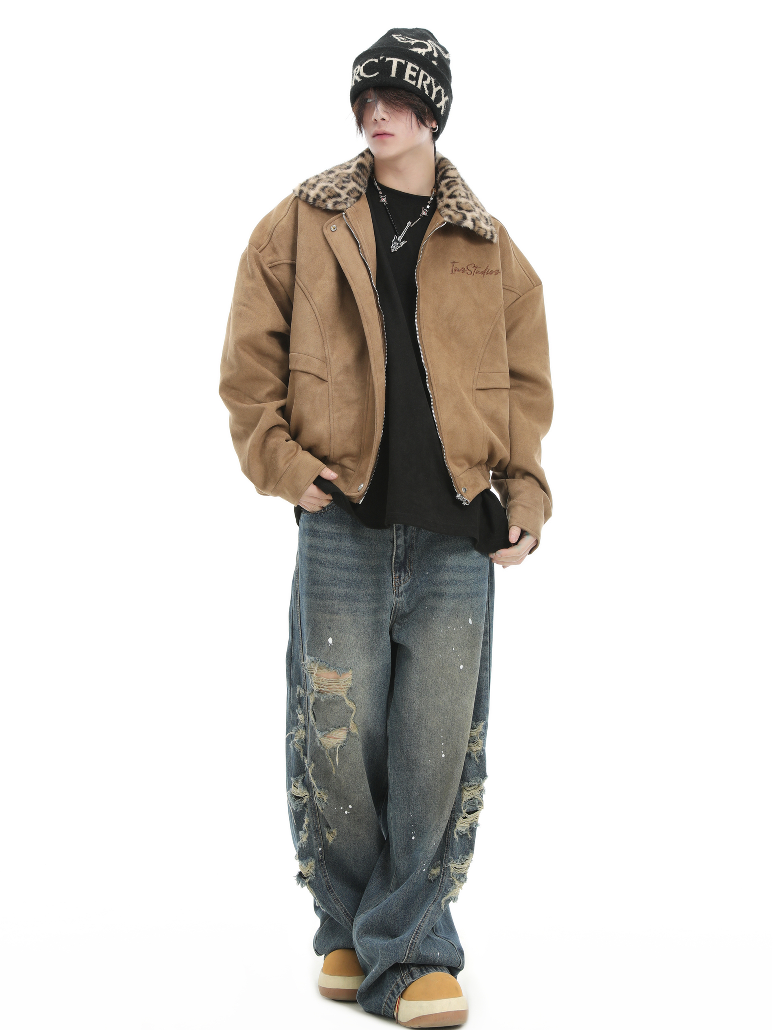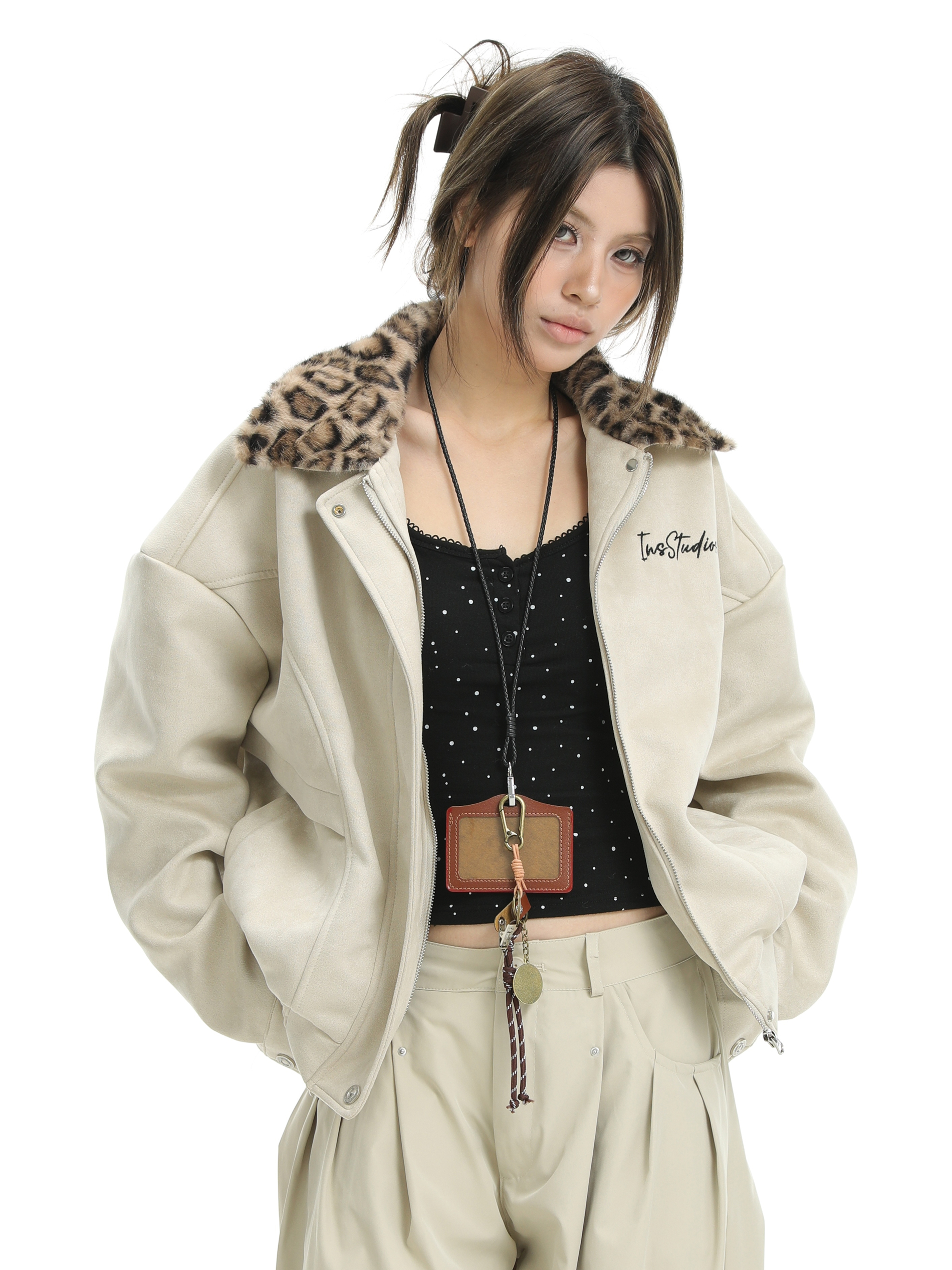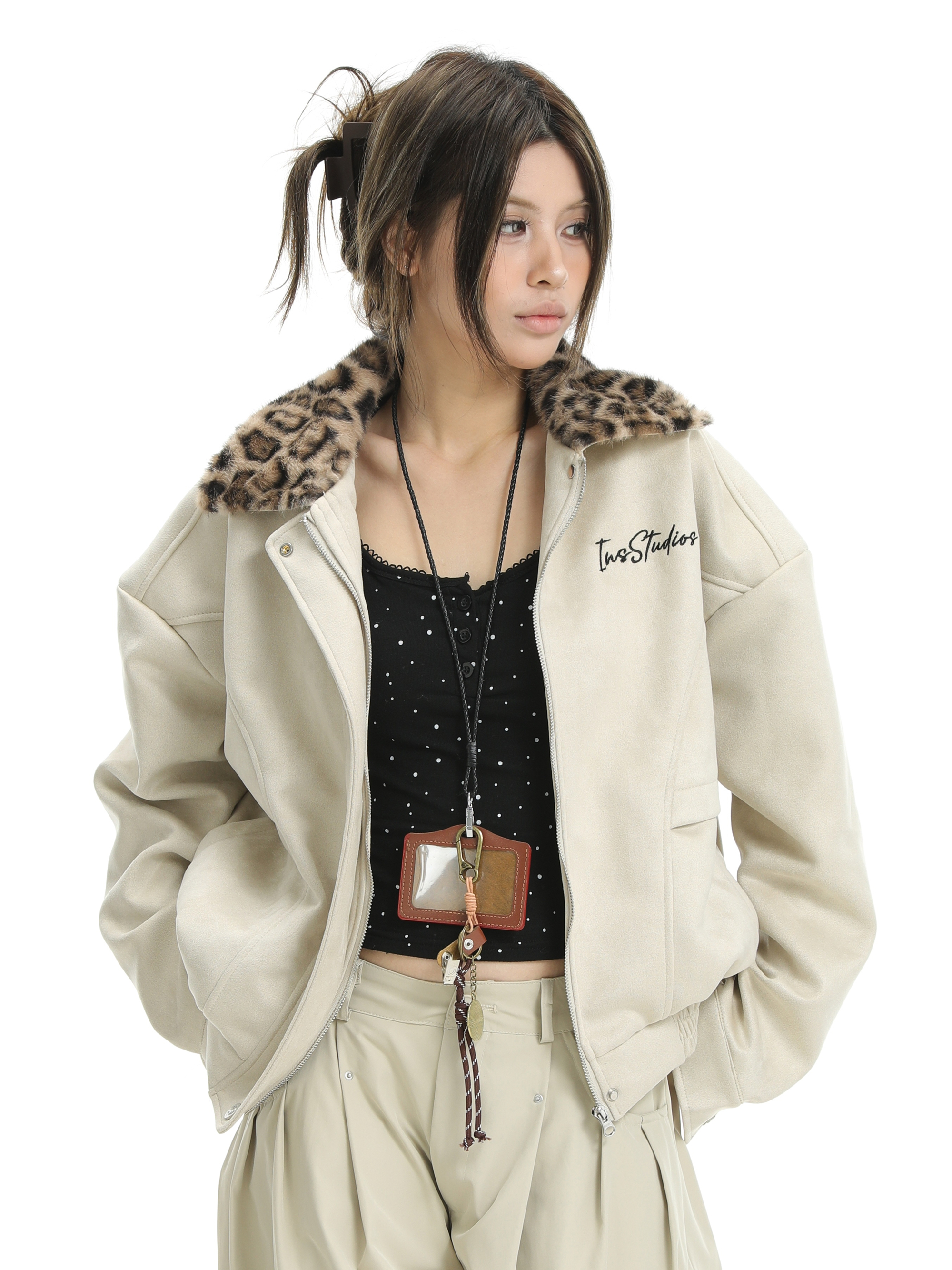 Be the first to review “China-Chic Couple American Barnes Leopard Polo Jacket Coat Spring Suede Top”