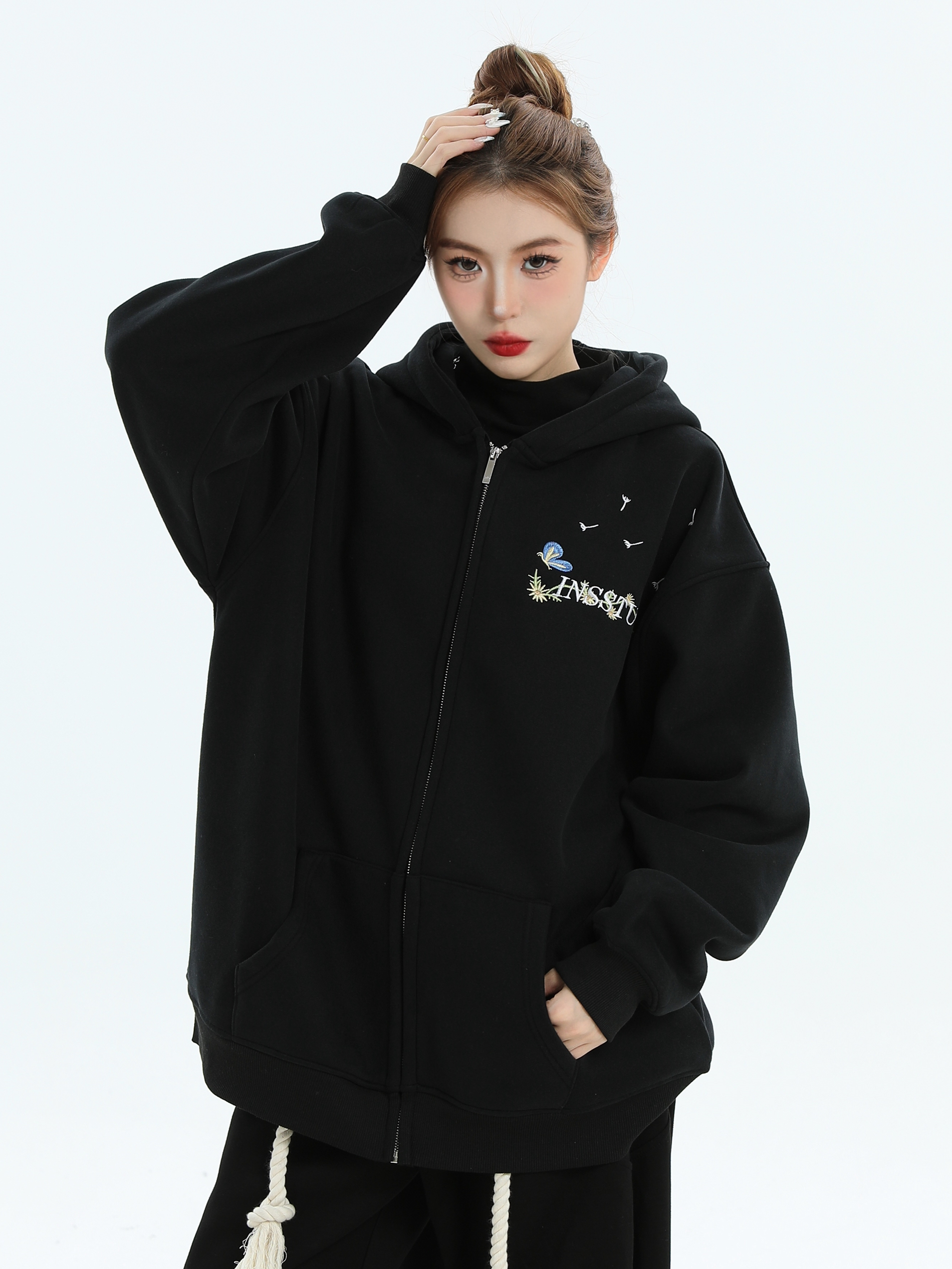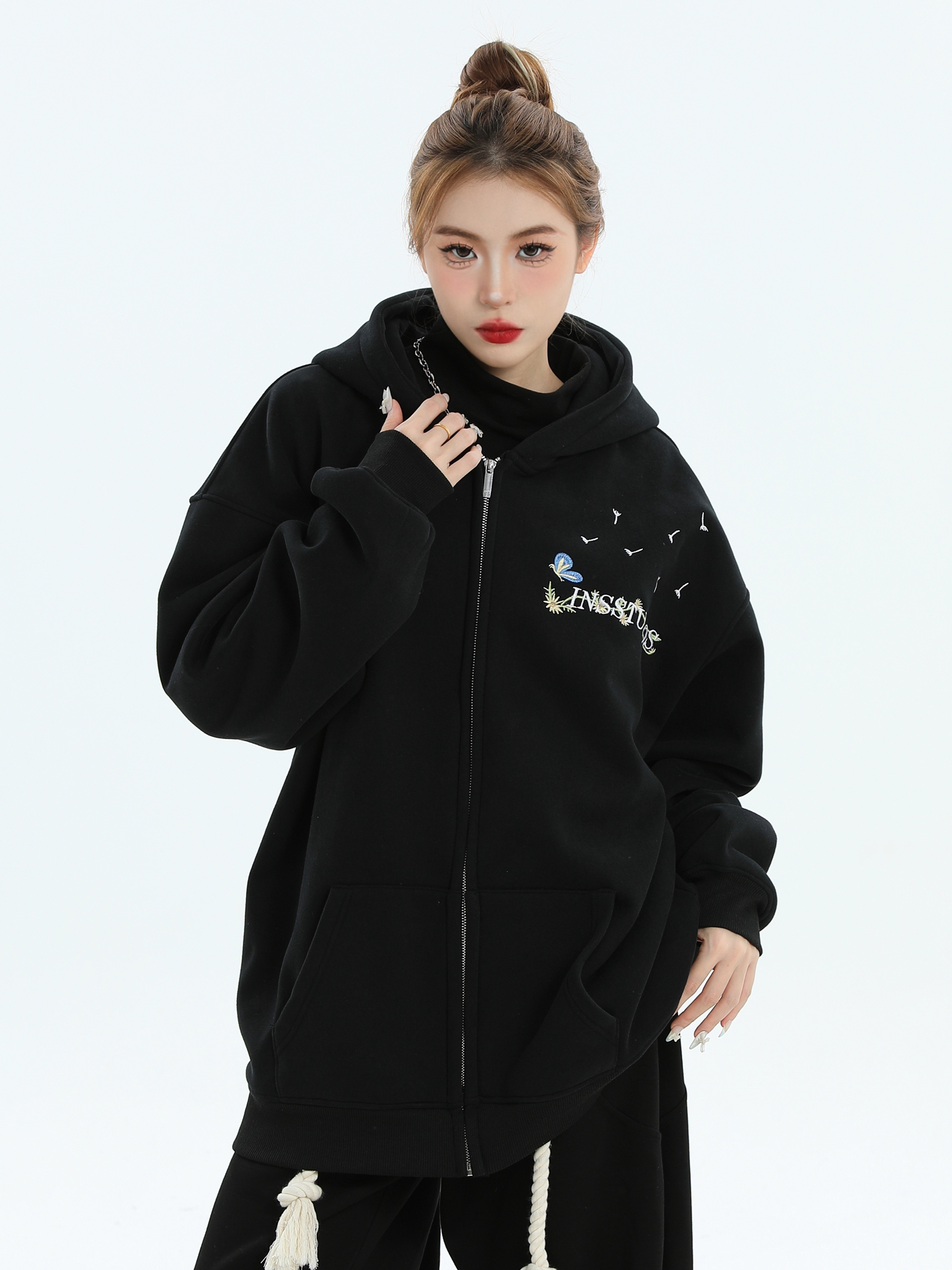 Be the first to review “China-Chic Couple American Butterfly LOGO Embroidery Sweater Loose Plush Zipper Coat Men”