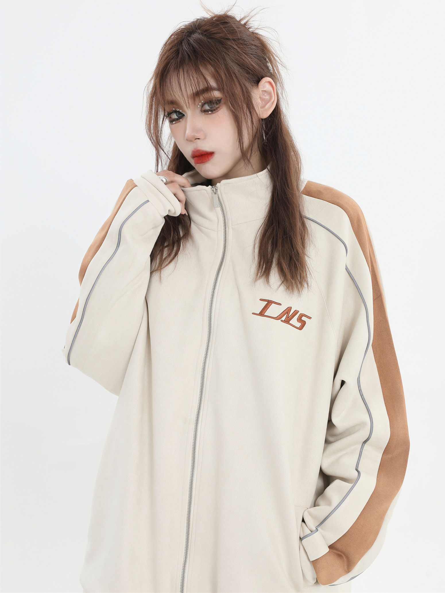 Be the first to review “China-Chic Couple American Contrast Suede Jacket Loose Sports Casual Jacket”
