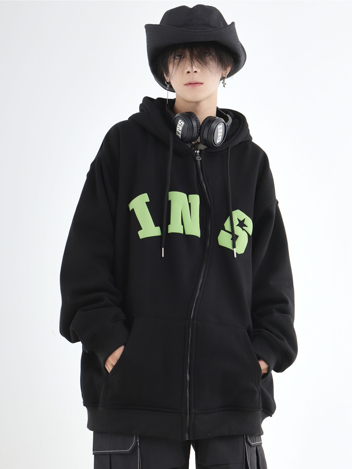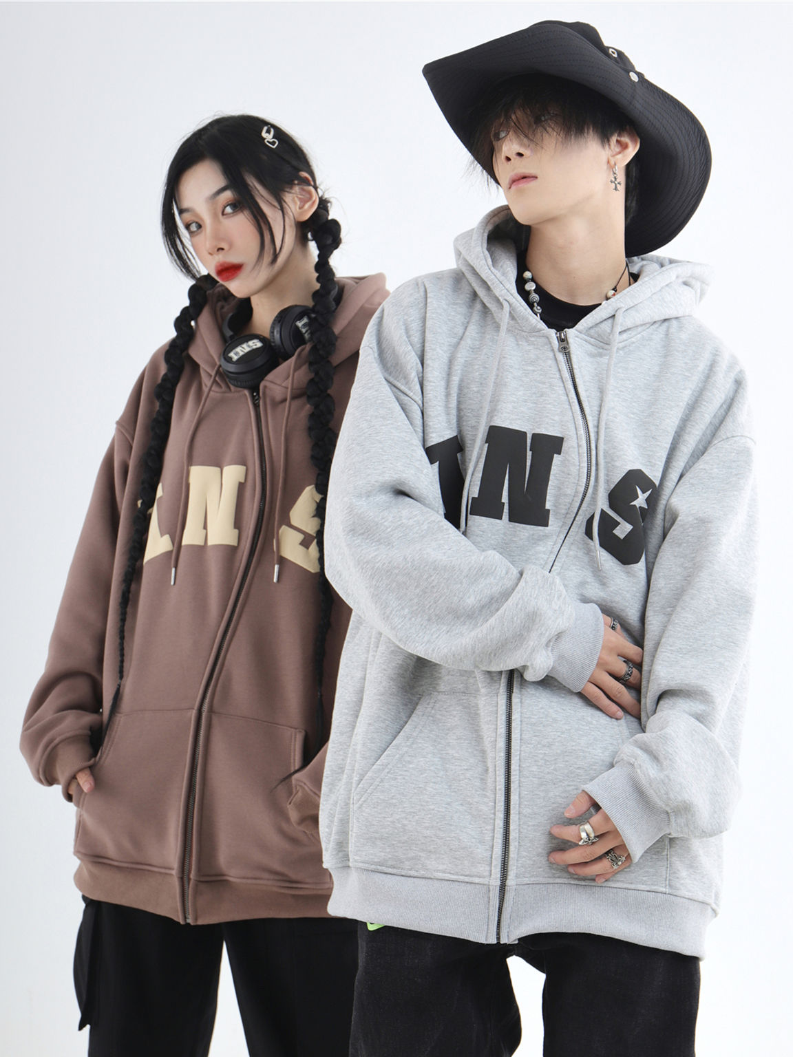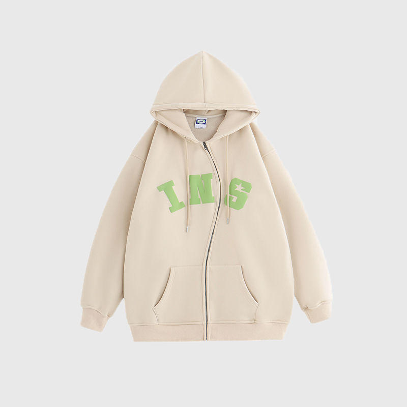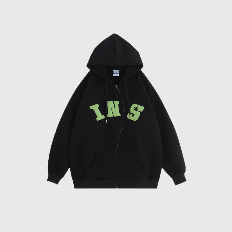 China-Chic Couple American S Zipper Foaming Logo Cardigan Sweater Plush Hoodie