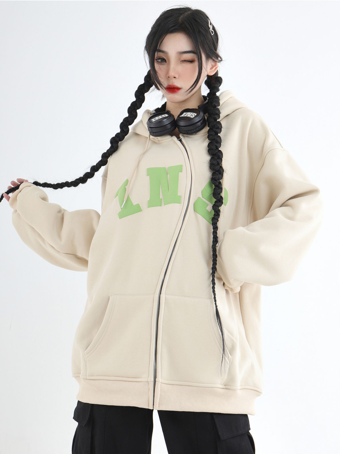 Be the first to review “China-Chic Couple American S Zipper Foaming Logo Cardigan Sweater Plush Hoodie”