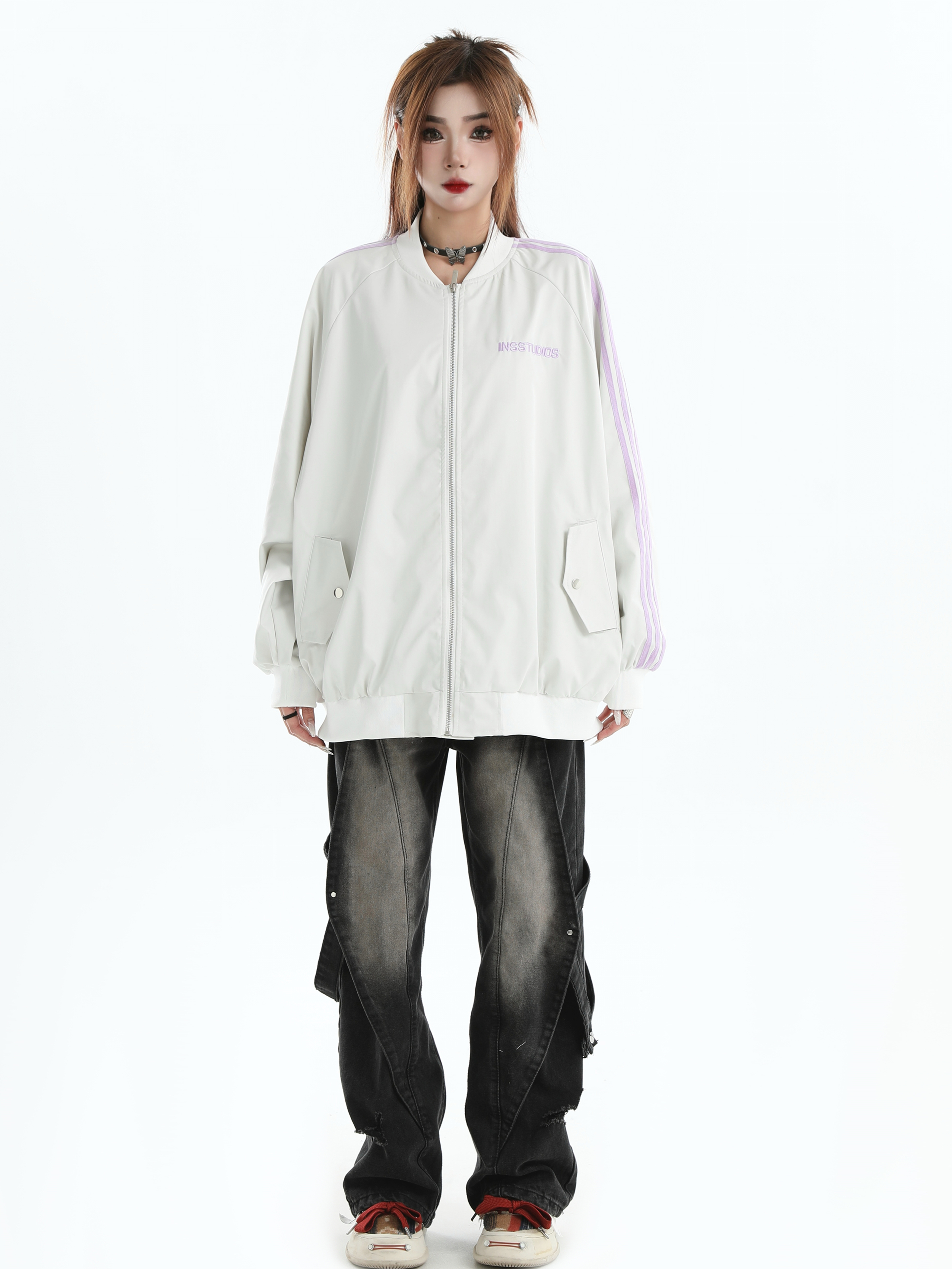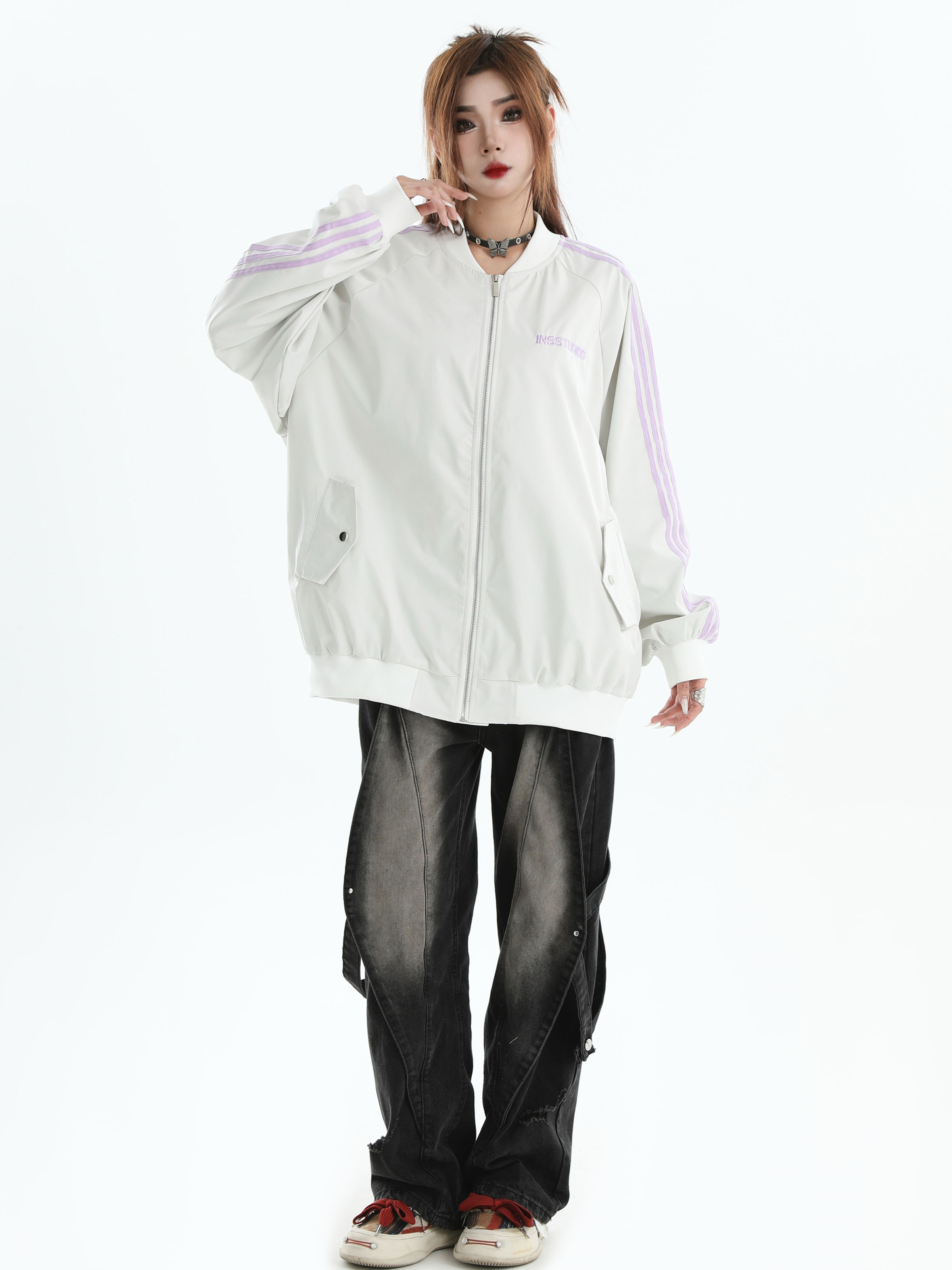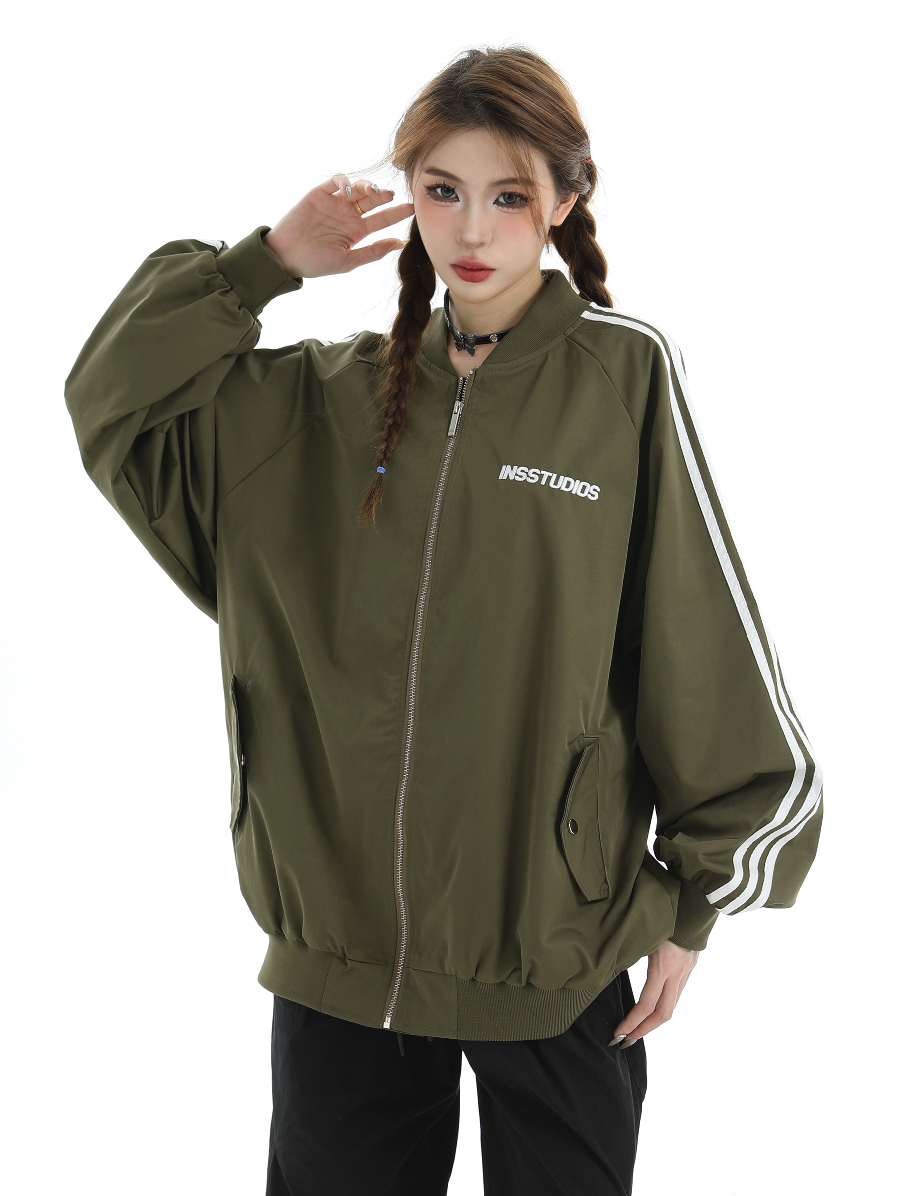 Be the first to review “China-Chic Couple American Stripe Three Bar Flight Jacket Loose Baseball Jacket Men”