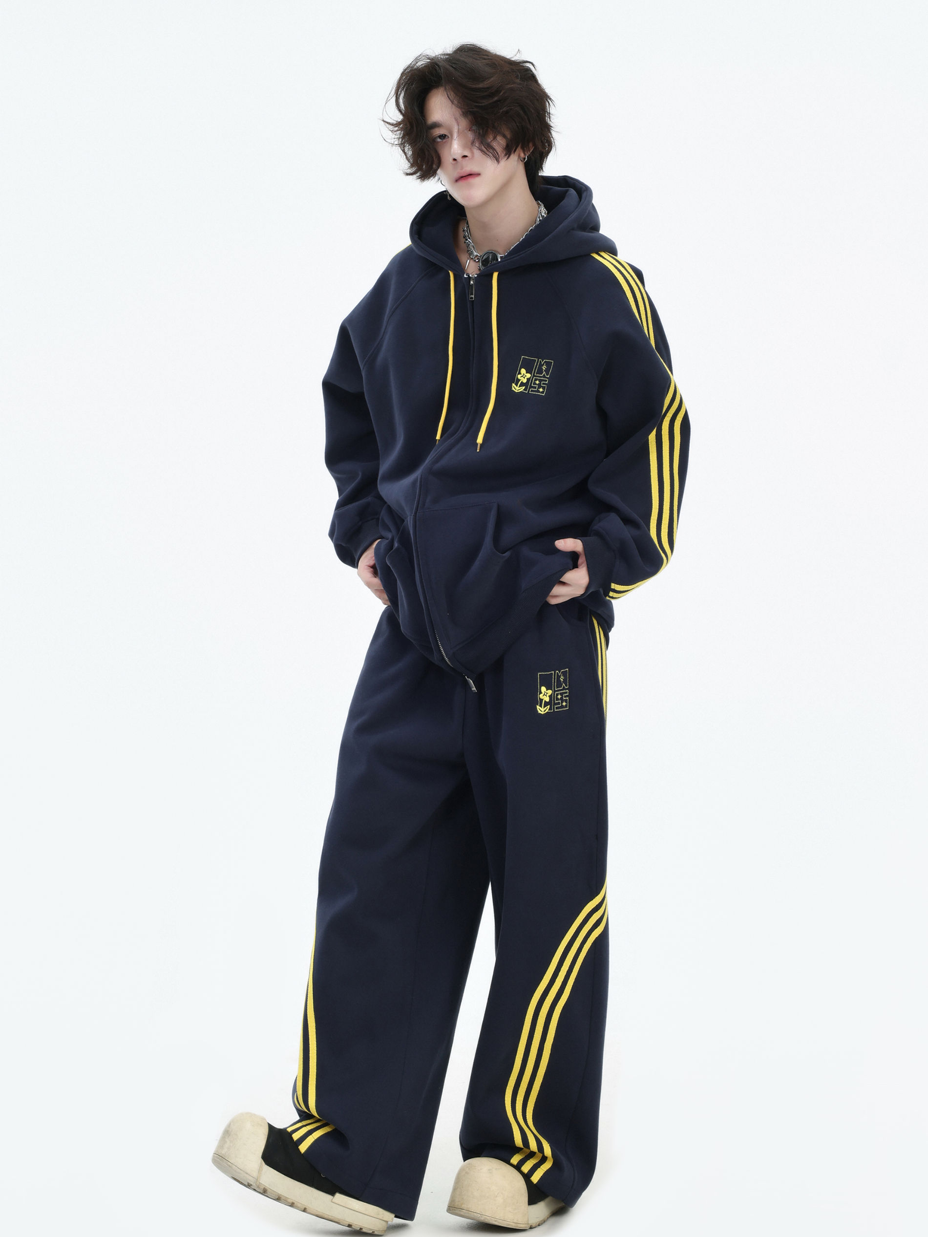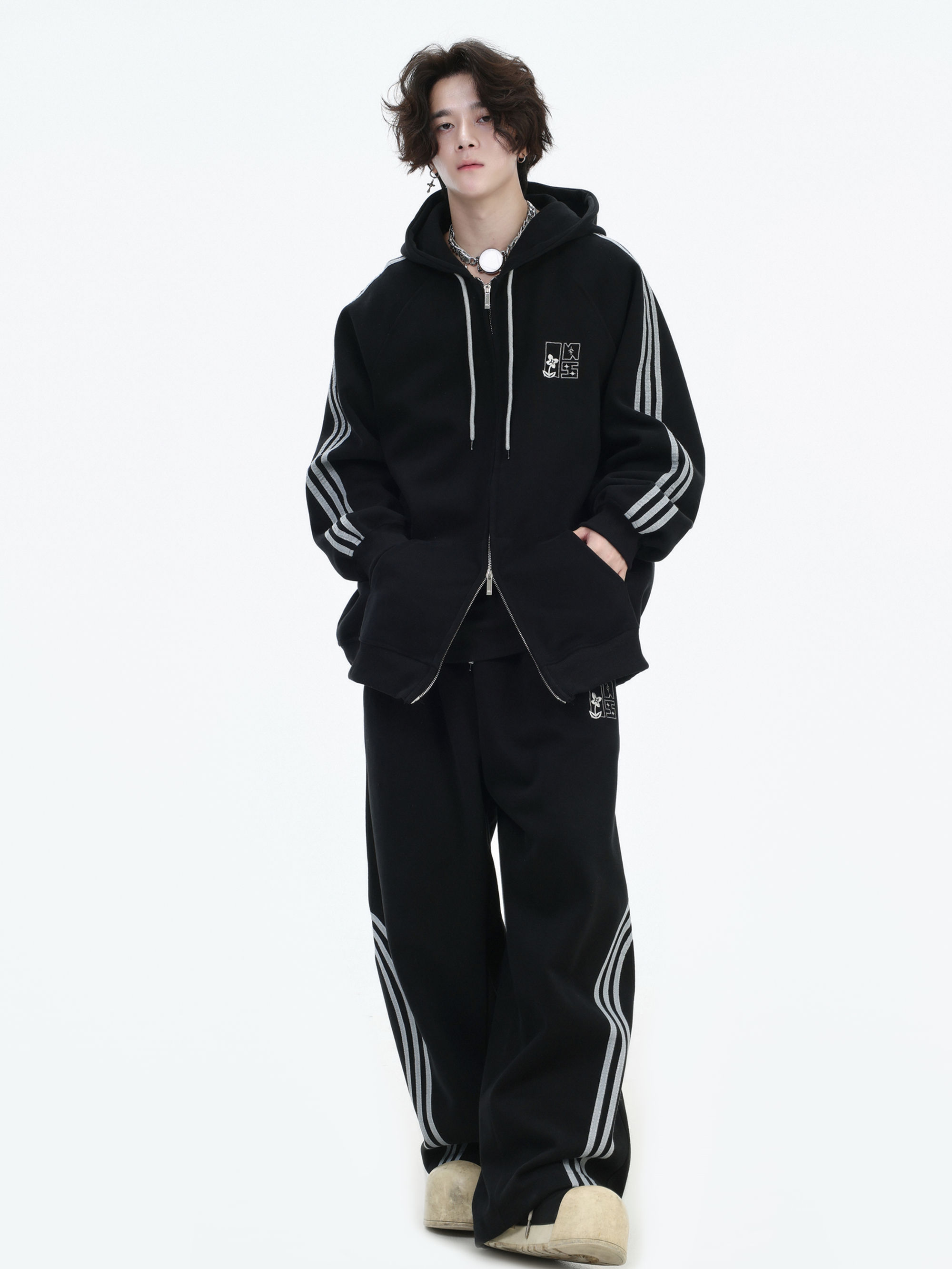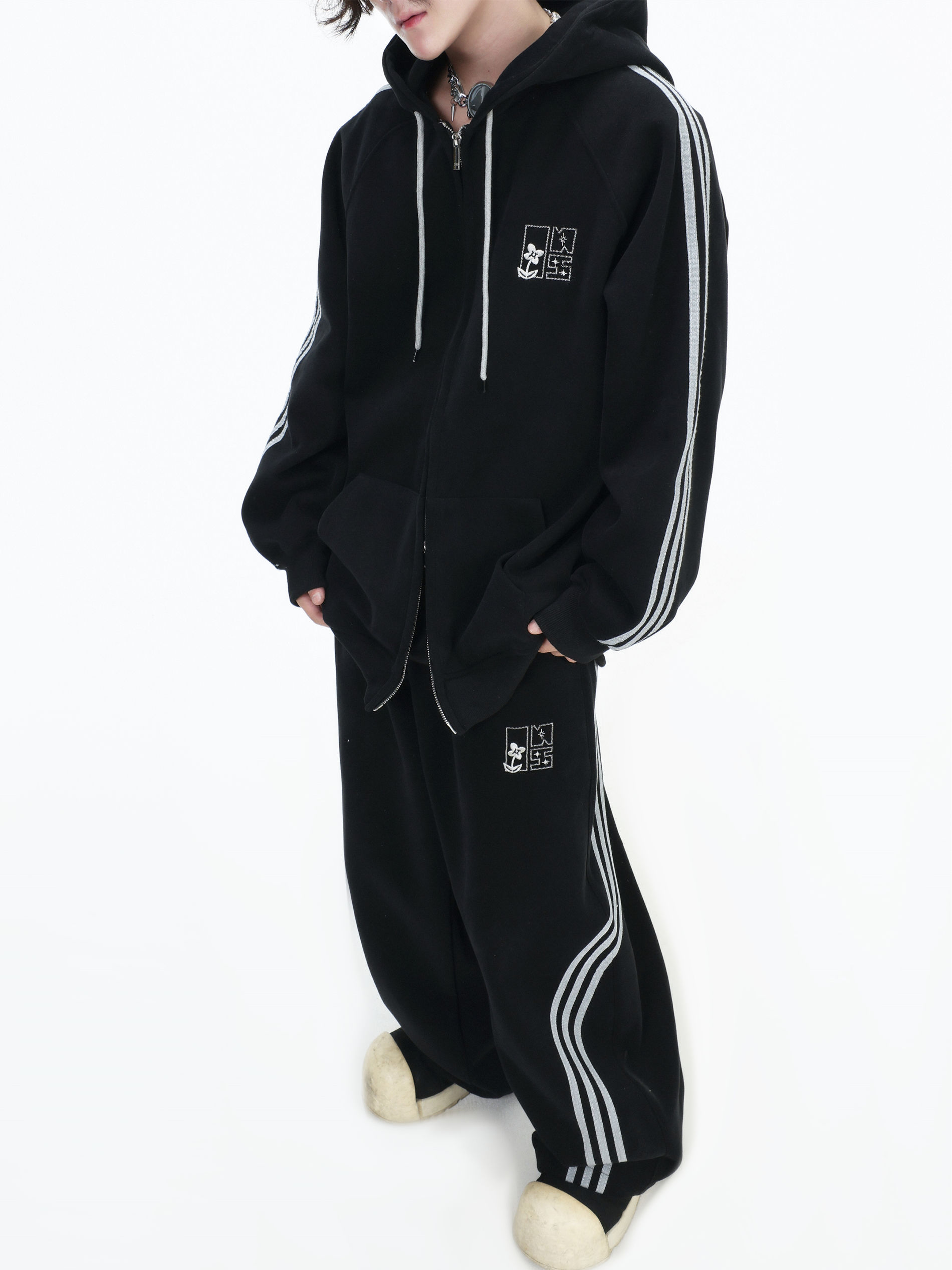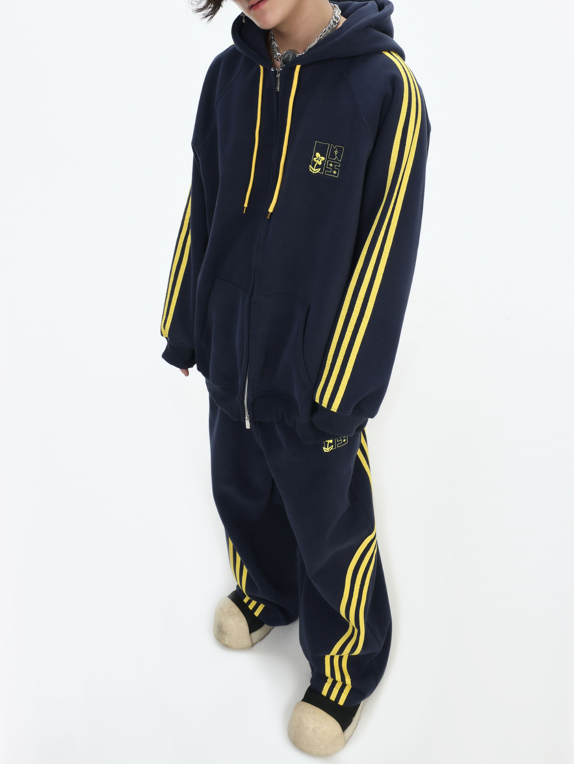 Be the first to review “China-Chic couple’s American “embroidered striped cardigan sweater” loose sports pants coat”