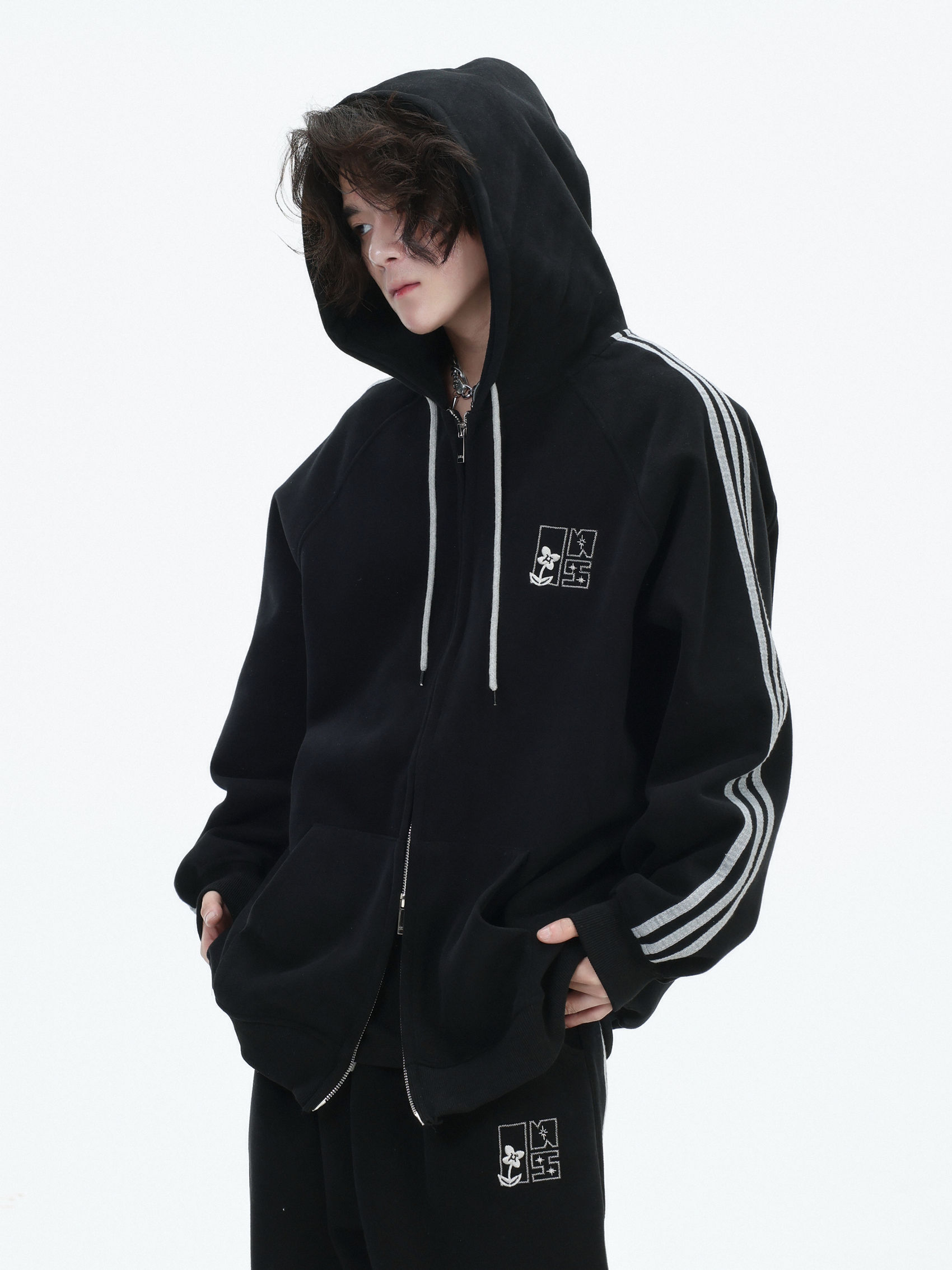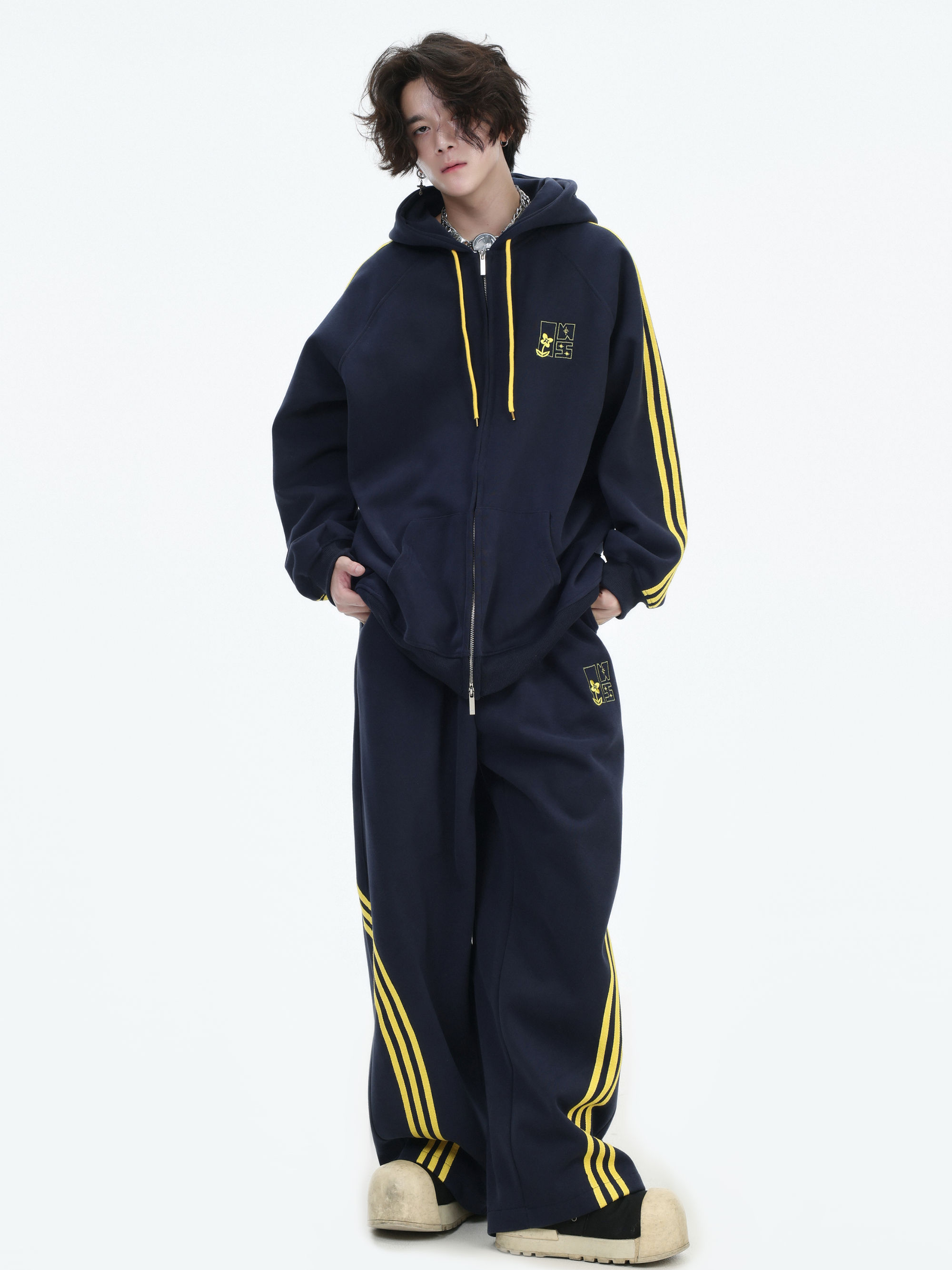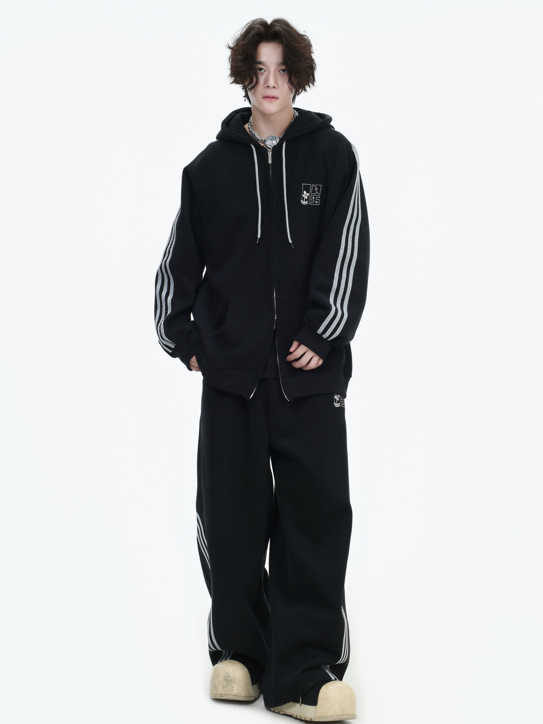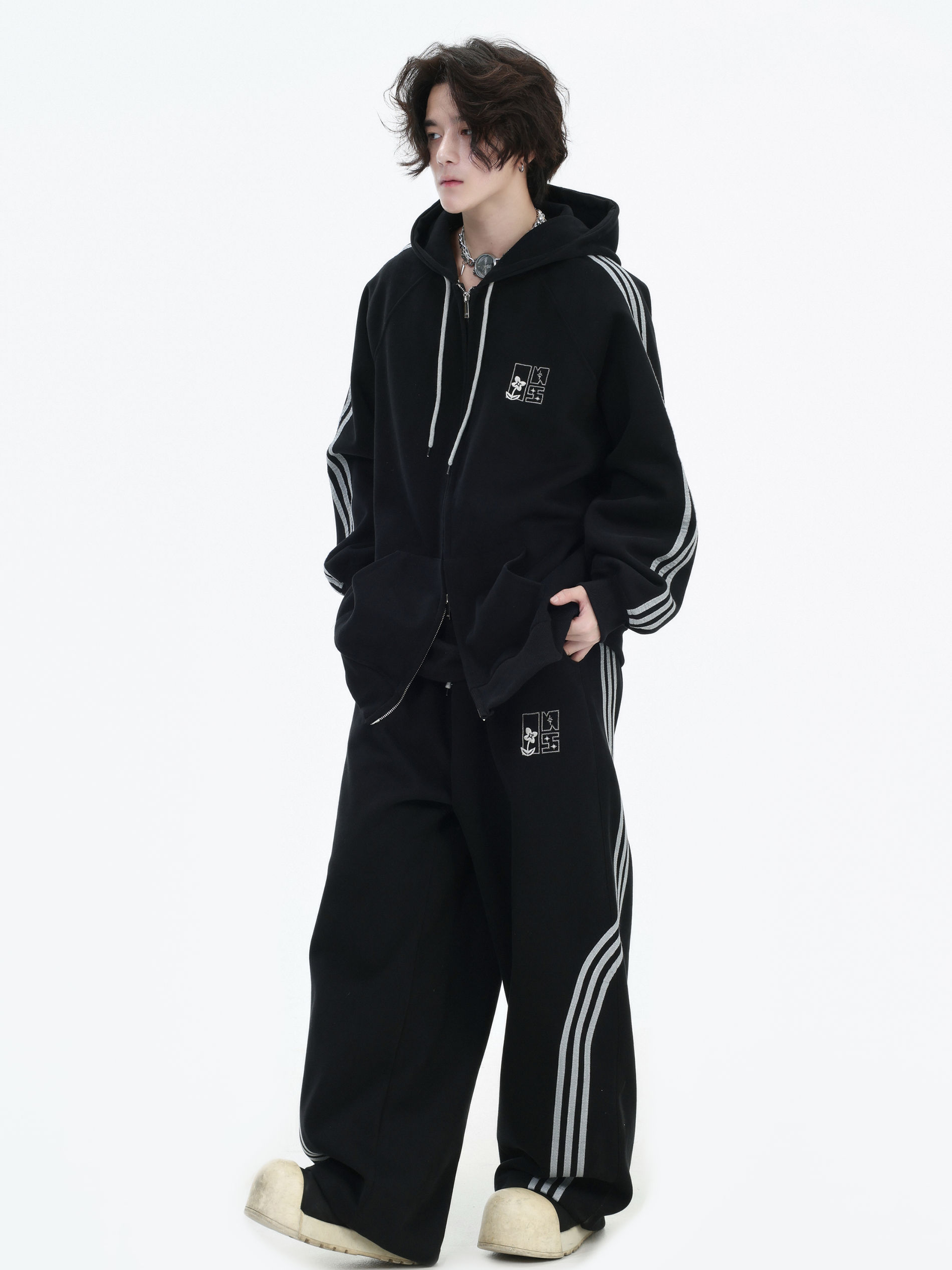 Be the first to review “China-Chic couple’s American “embroidered striped cardigan sweater” loose sports pants coat”