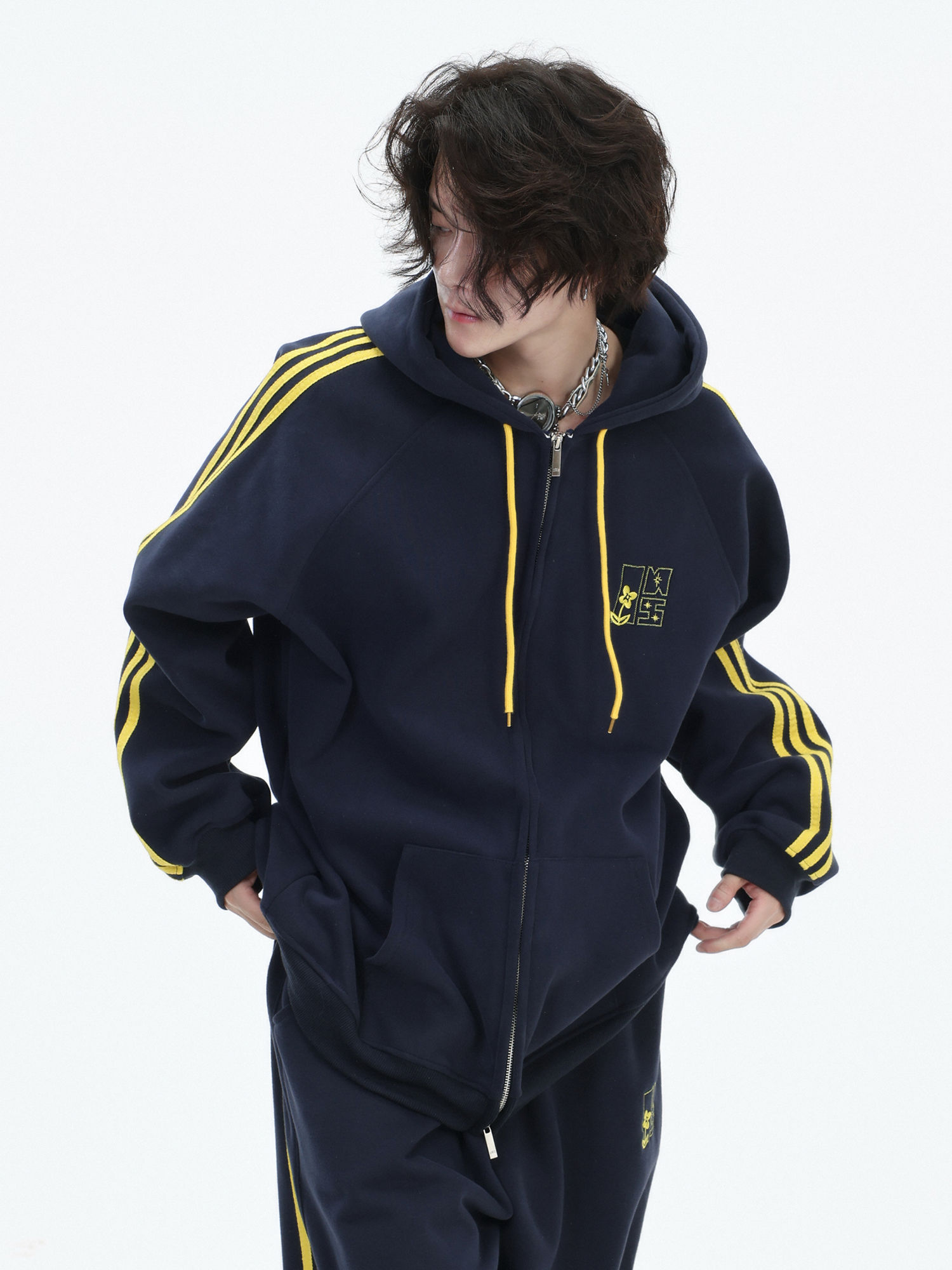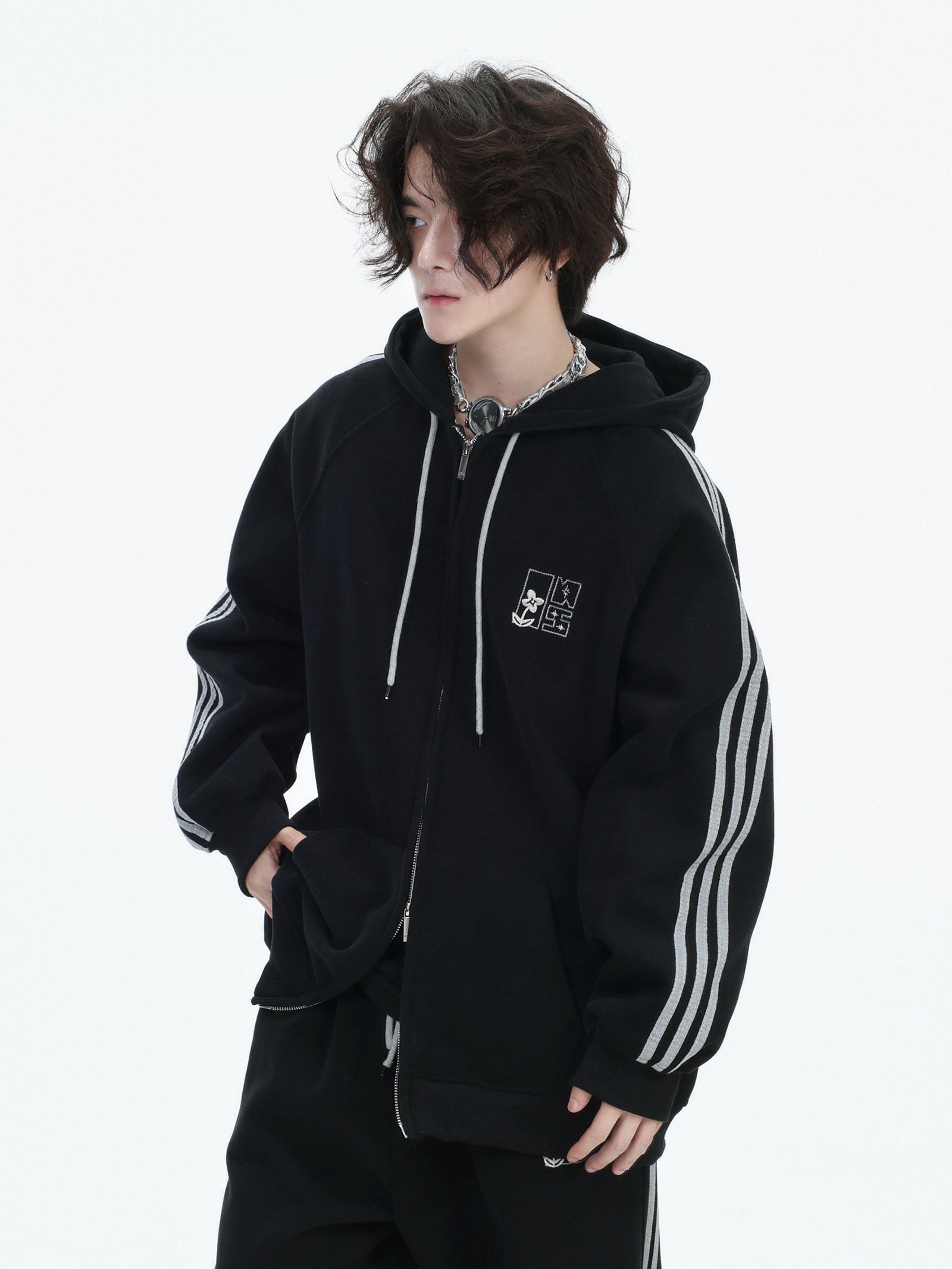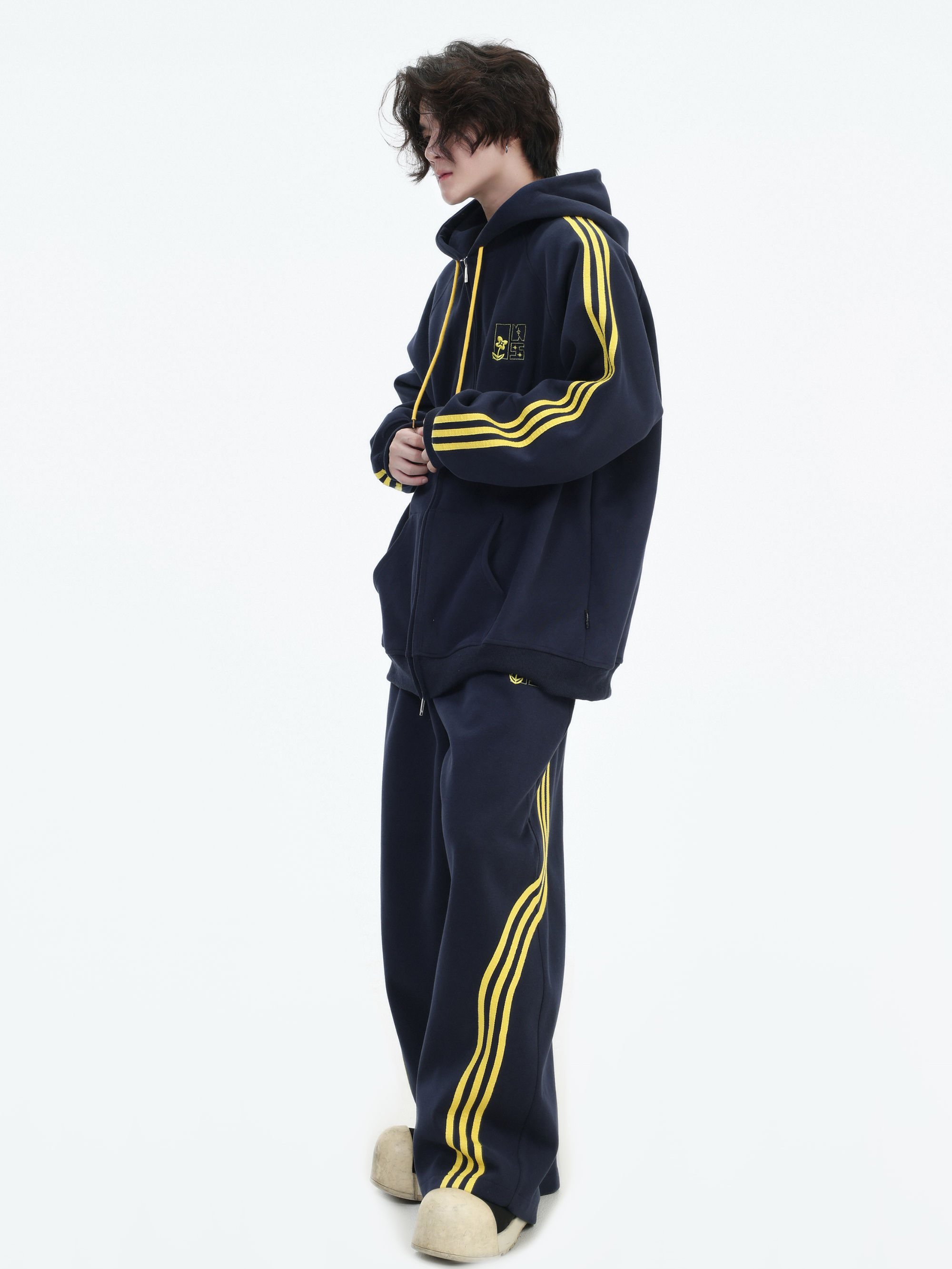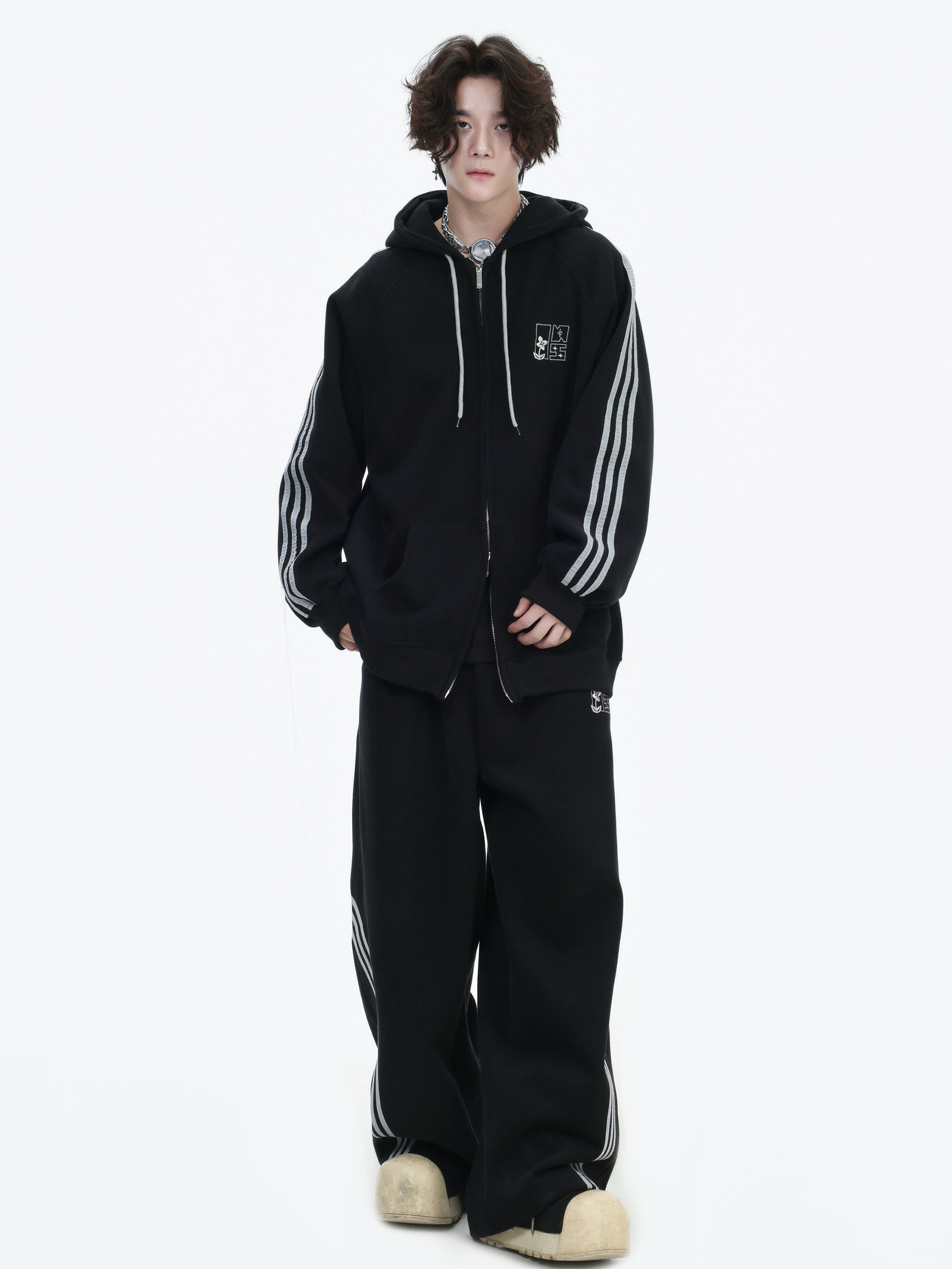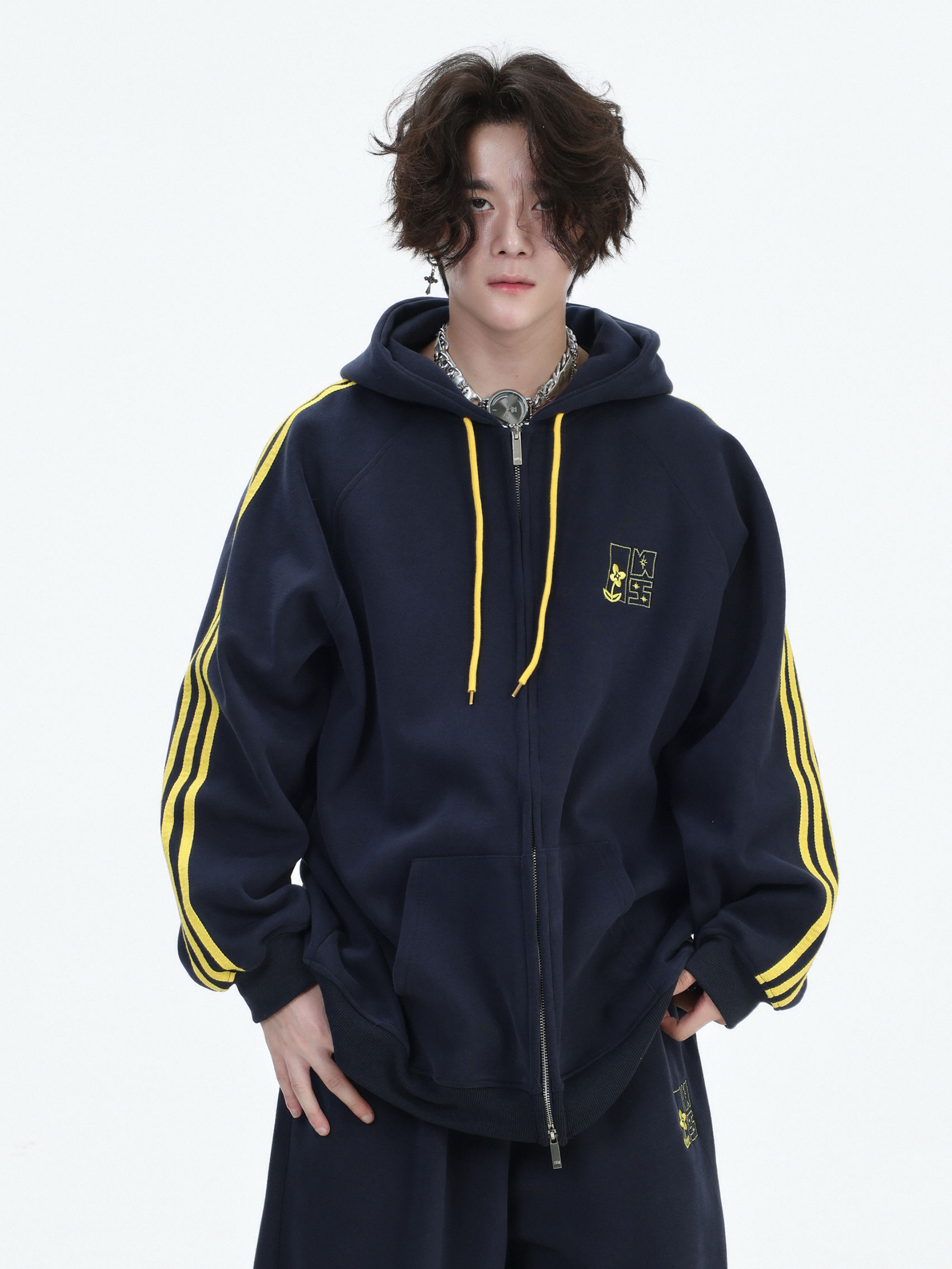 Be the first to review “China-Chic couple’s American “embroidered striped cardigan sweater” loose sports pants coat”