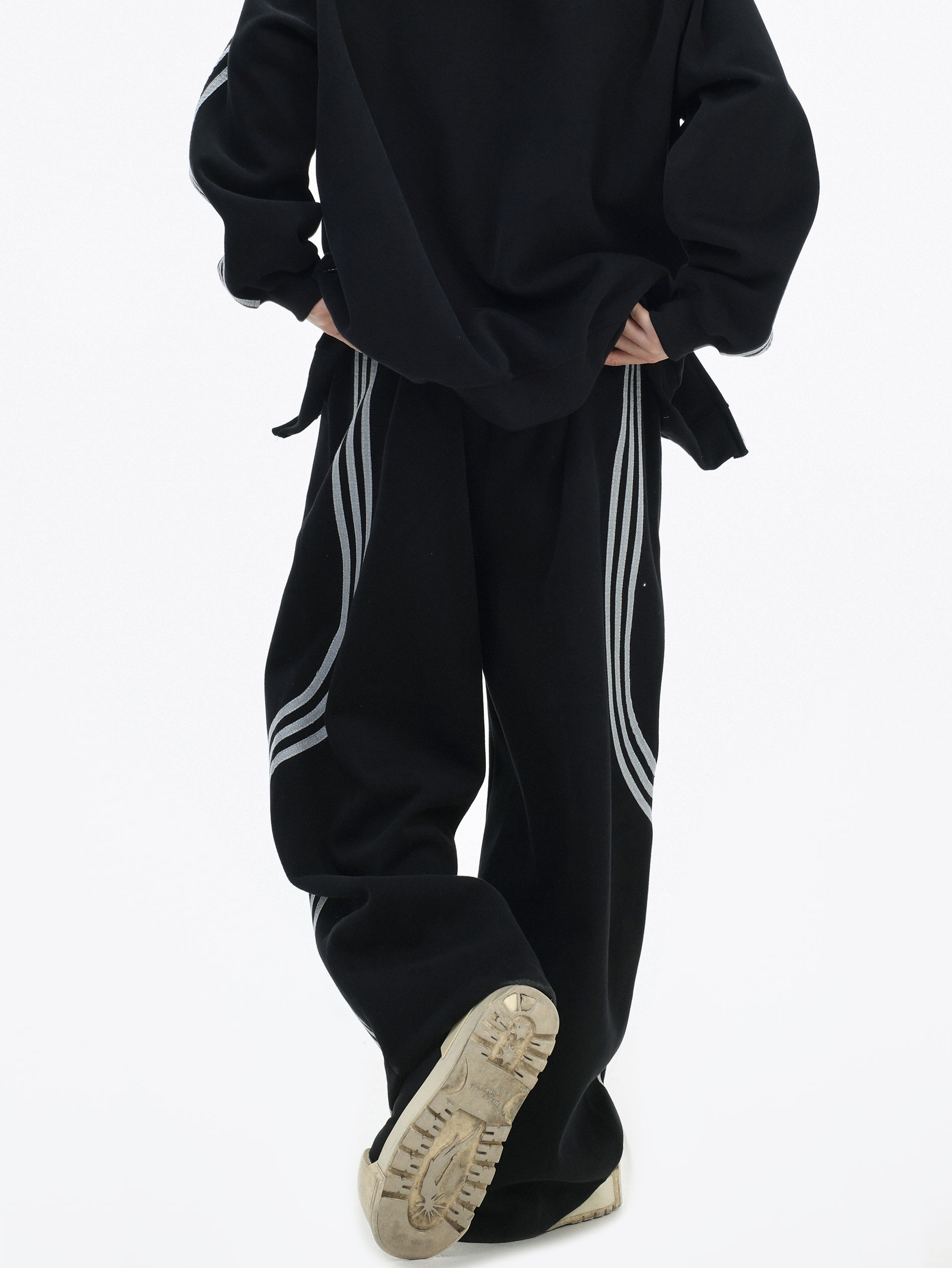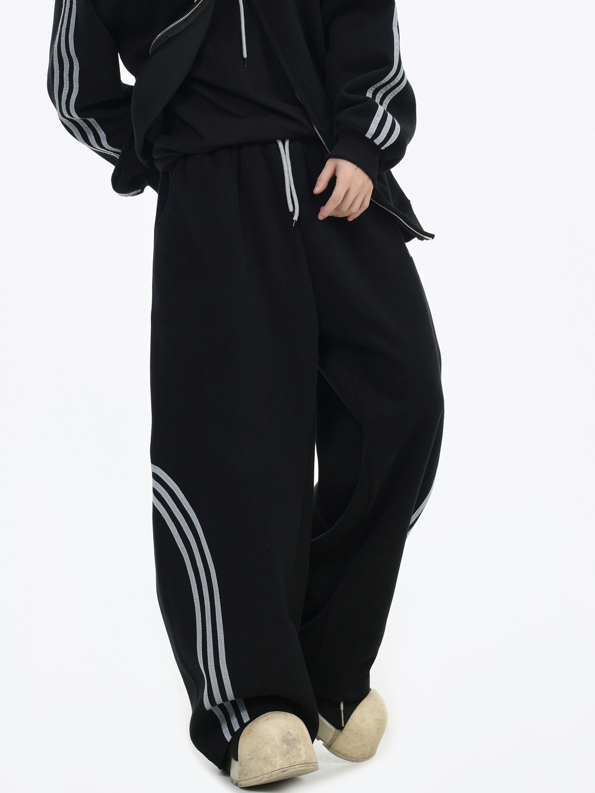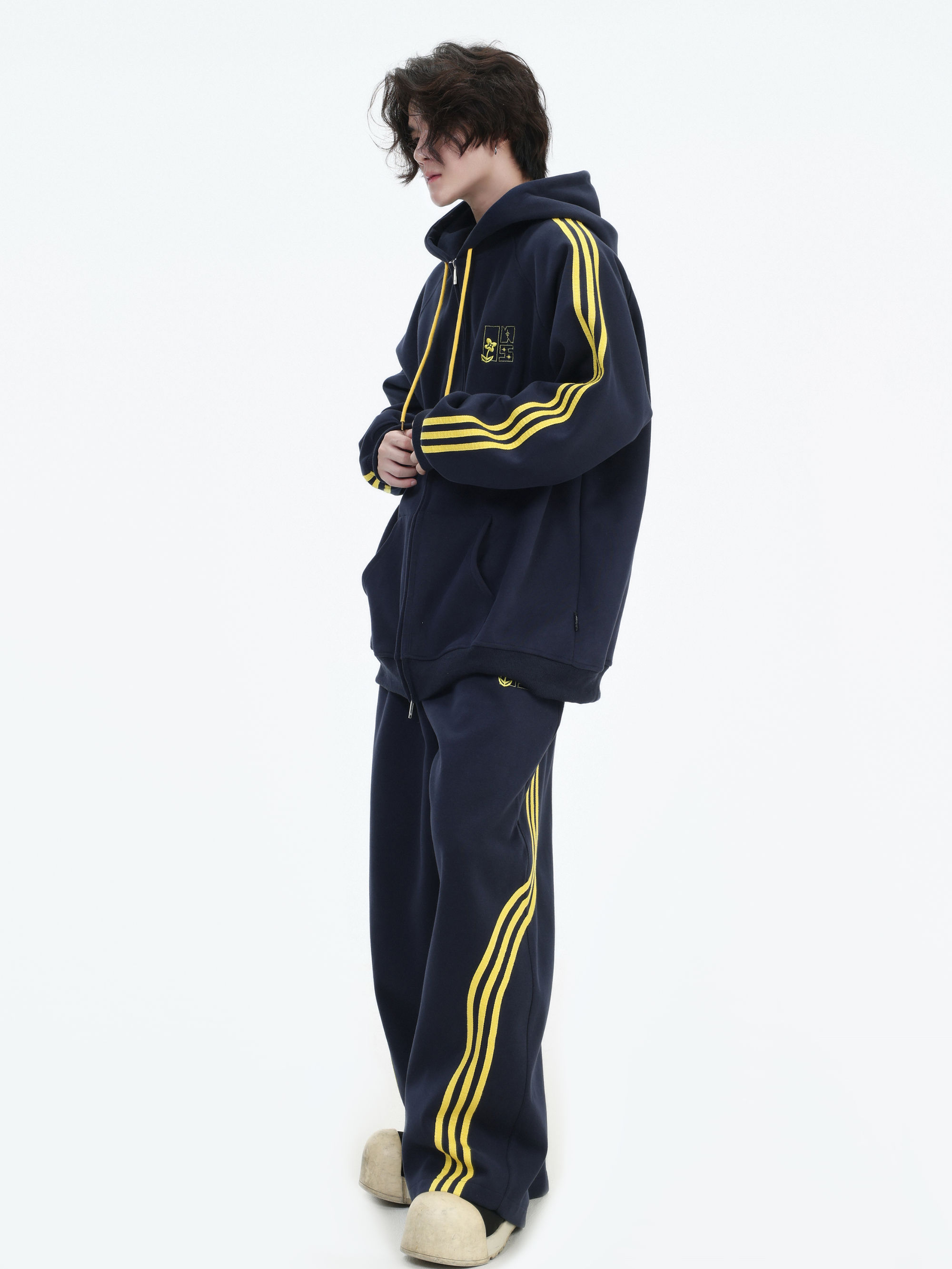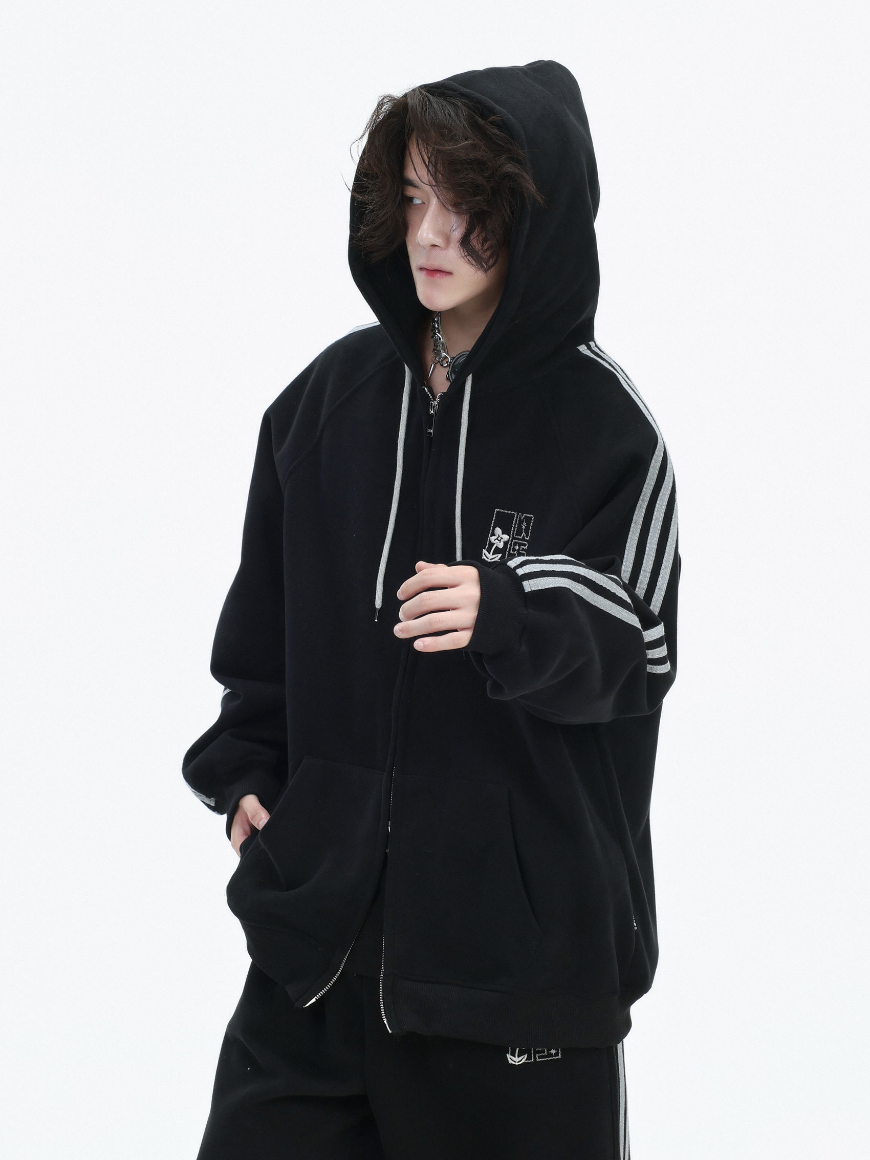 Be the first to review “China-Chic couple’s American “embroidered striped cardigan sweater” loose sports pants coat”
