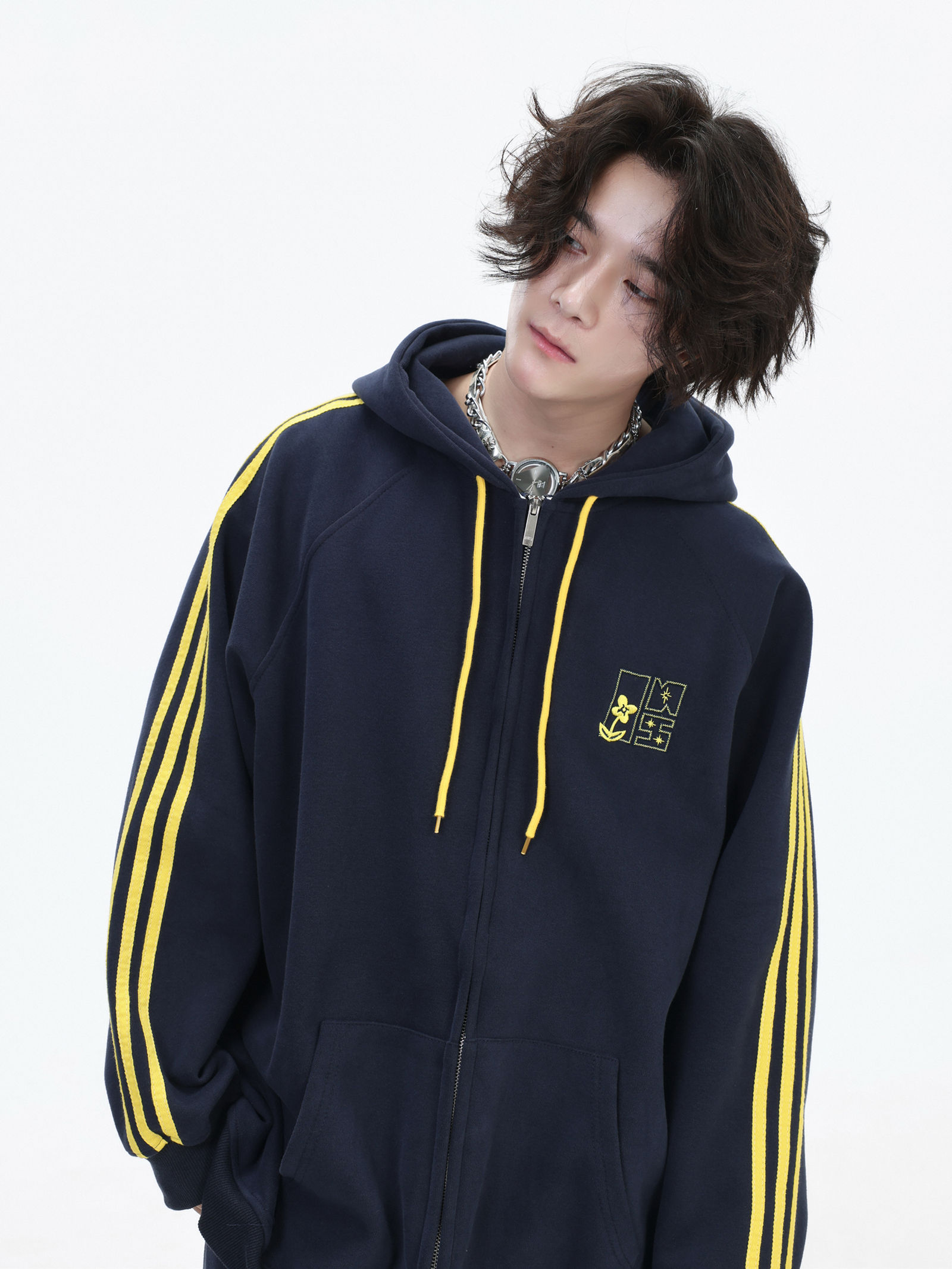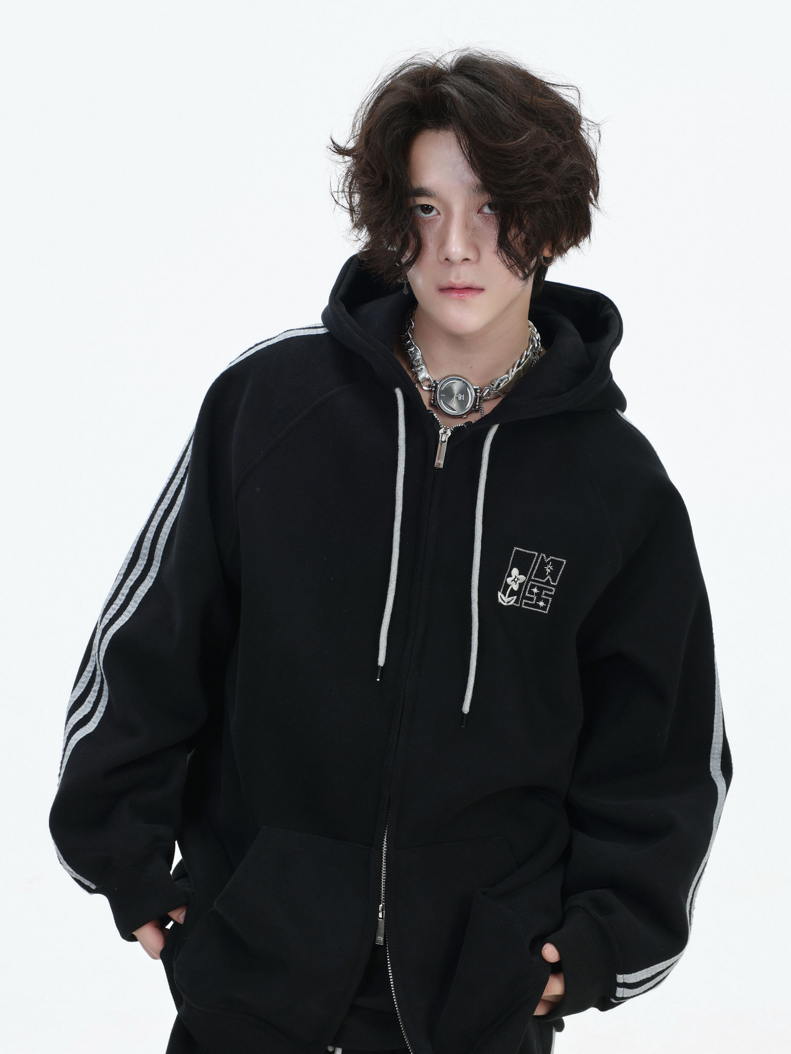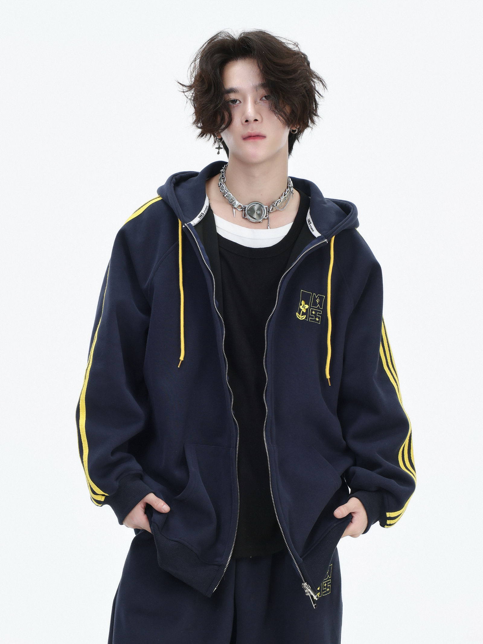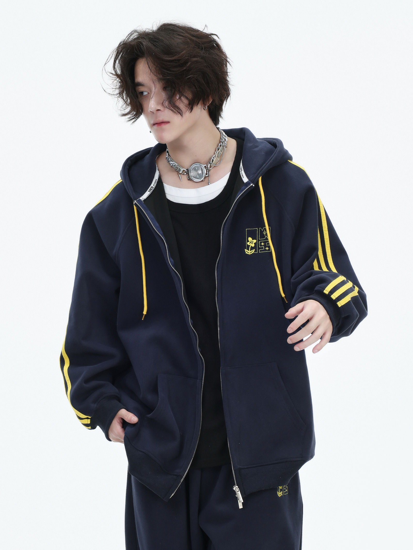 Be the first to review “China-Chic couple’s American “embroidered striped cardigan sweater” loose sports pants coat”