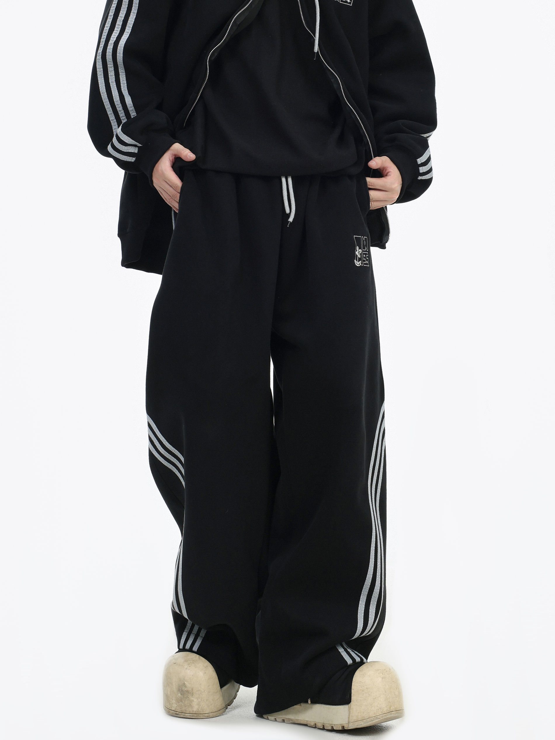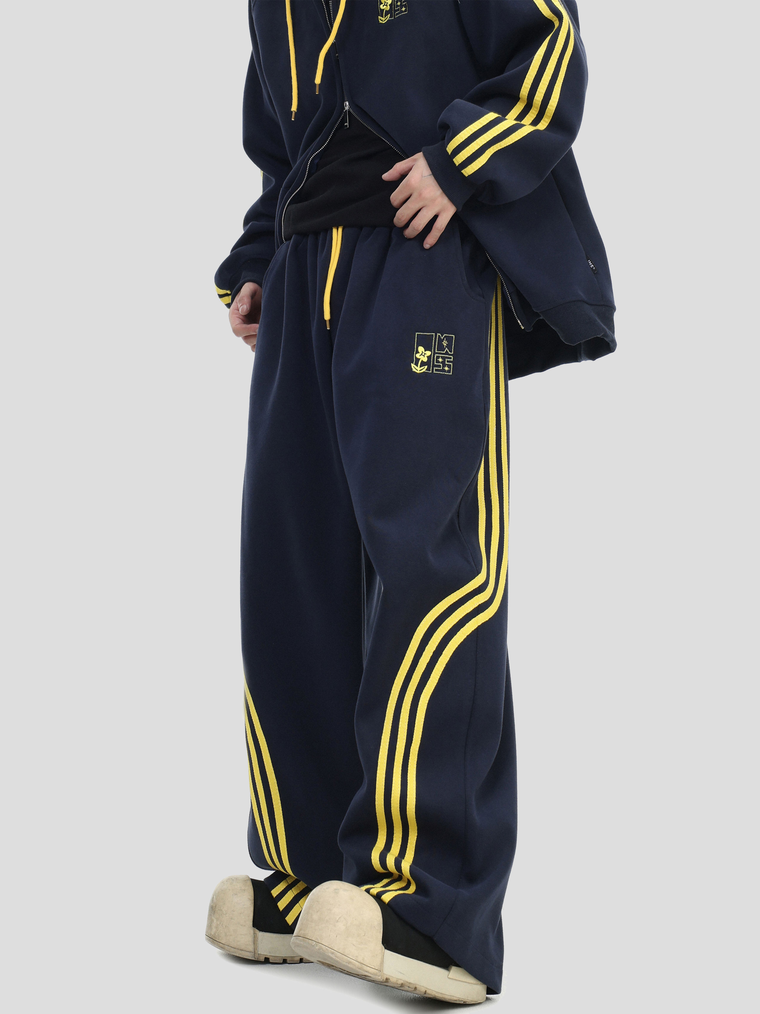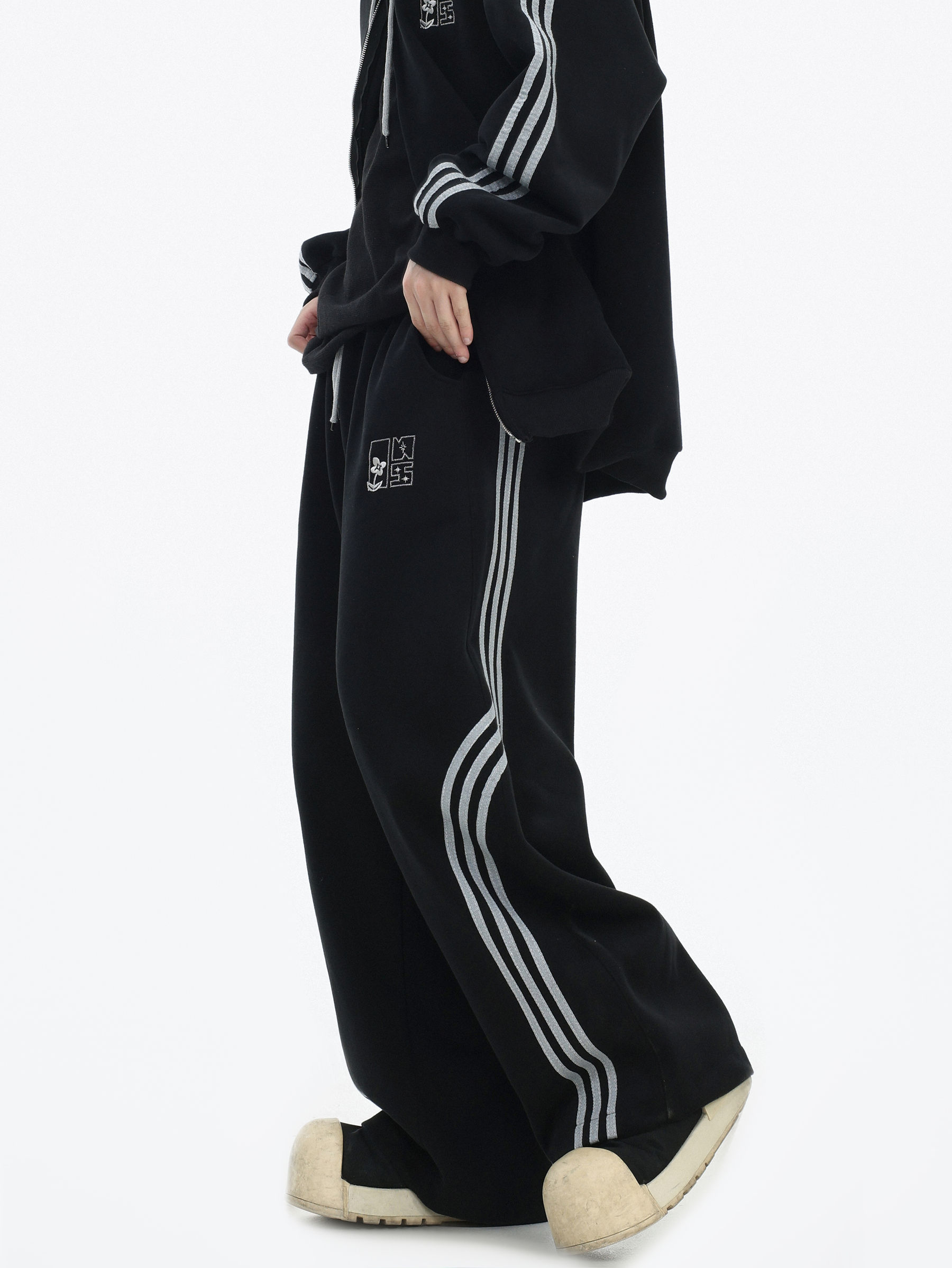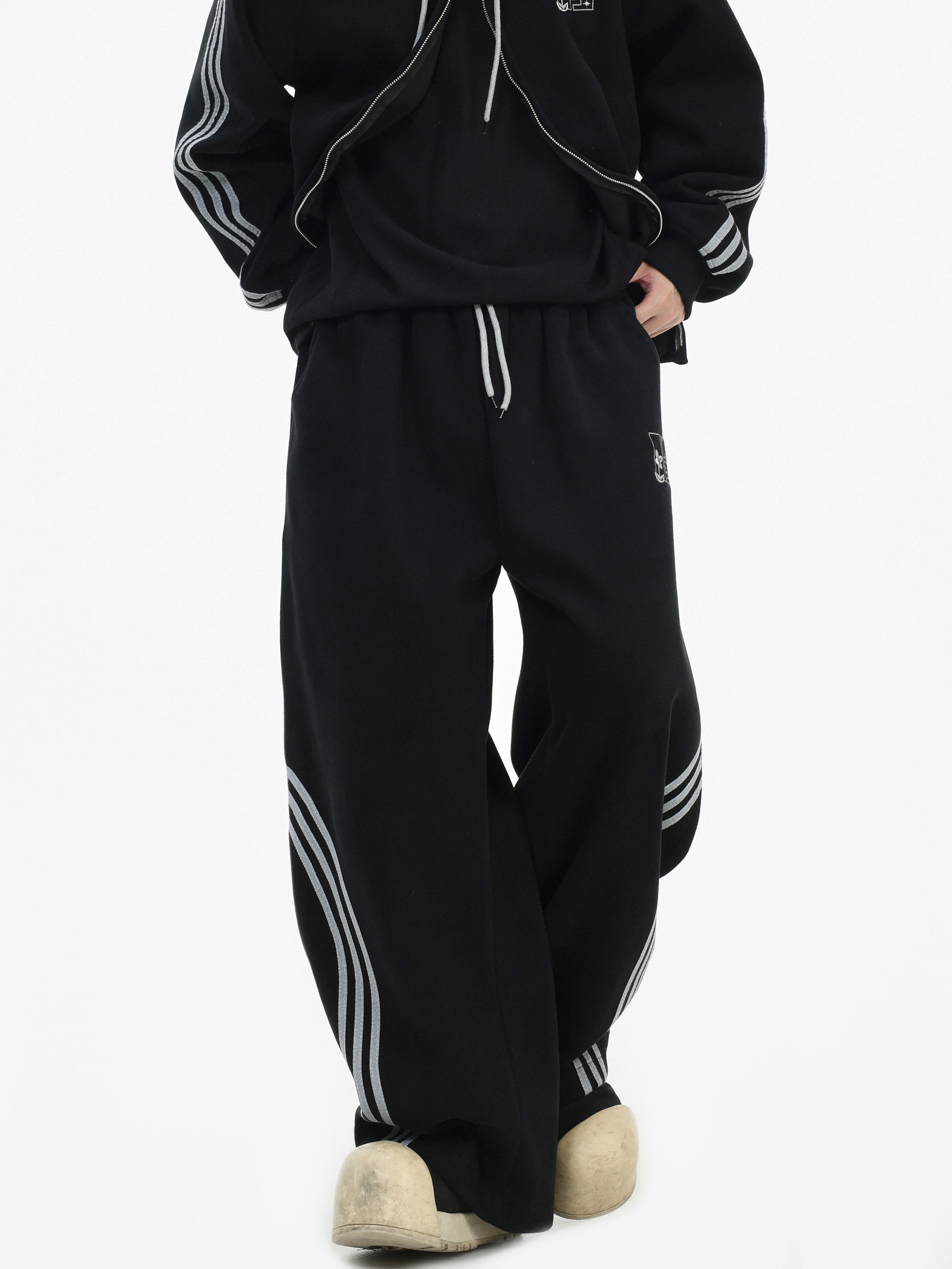 Be the first to review “China-Chic couple’s American “embroidered striped cardigan sweater” loose sports pants coat”