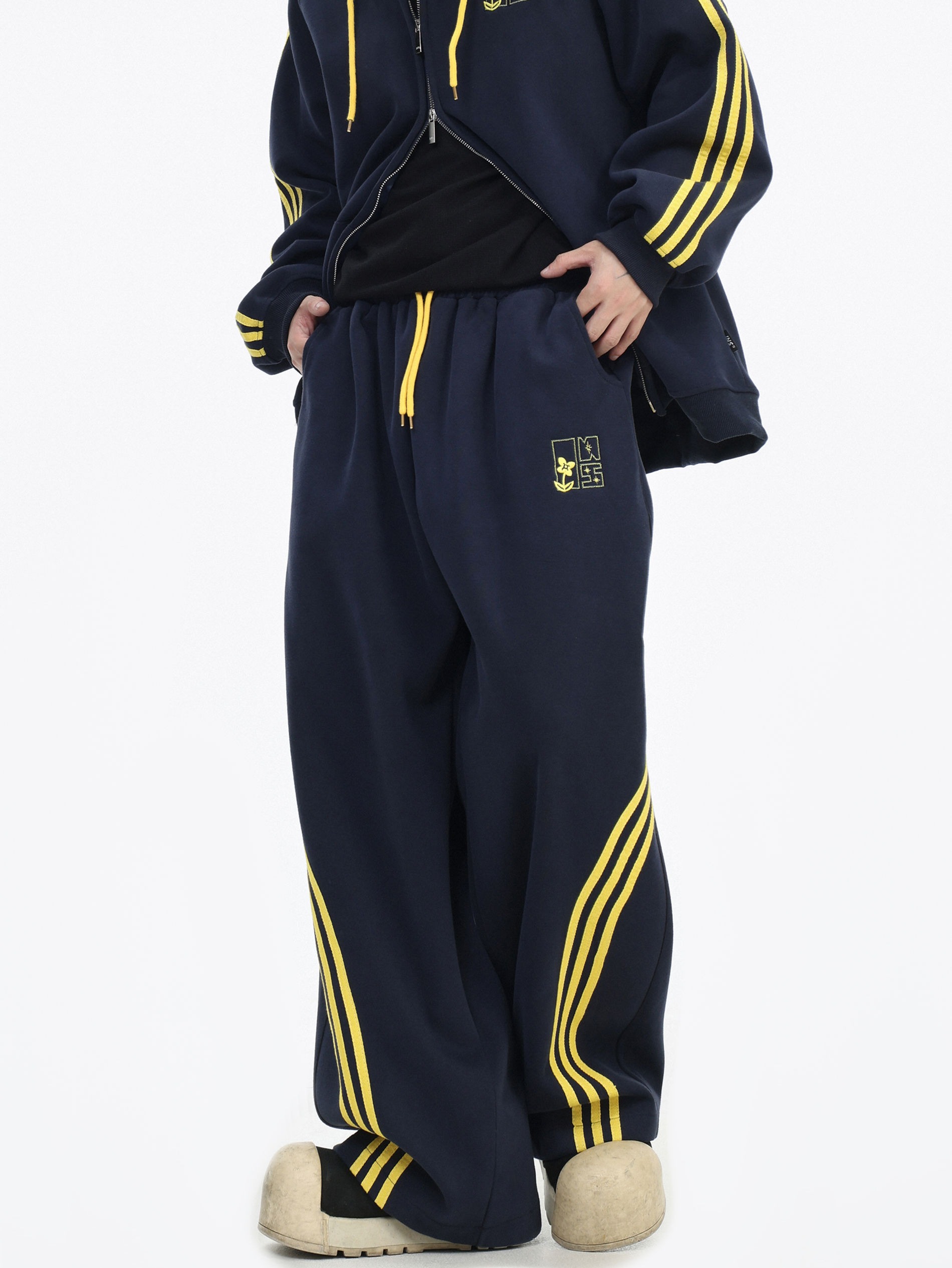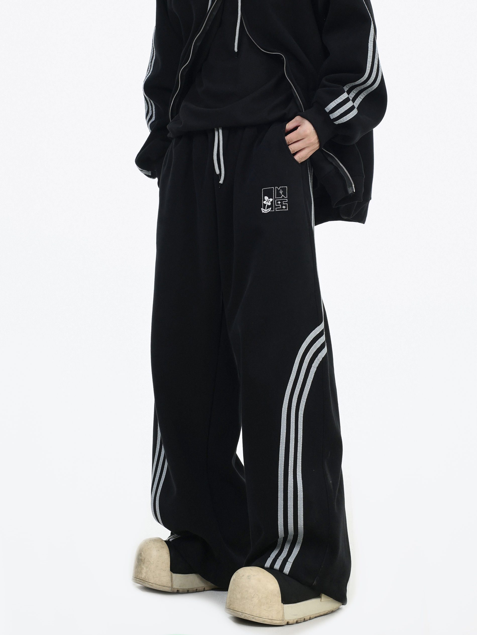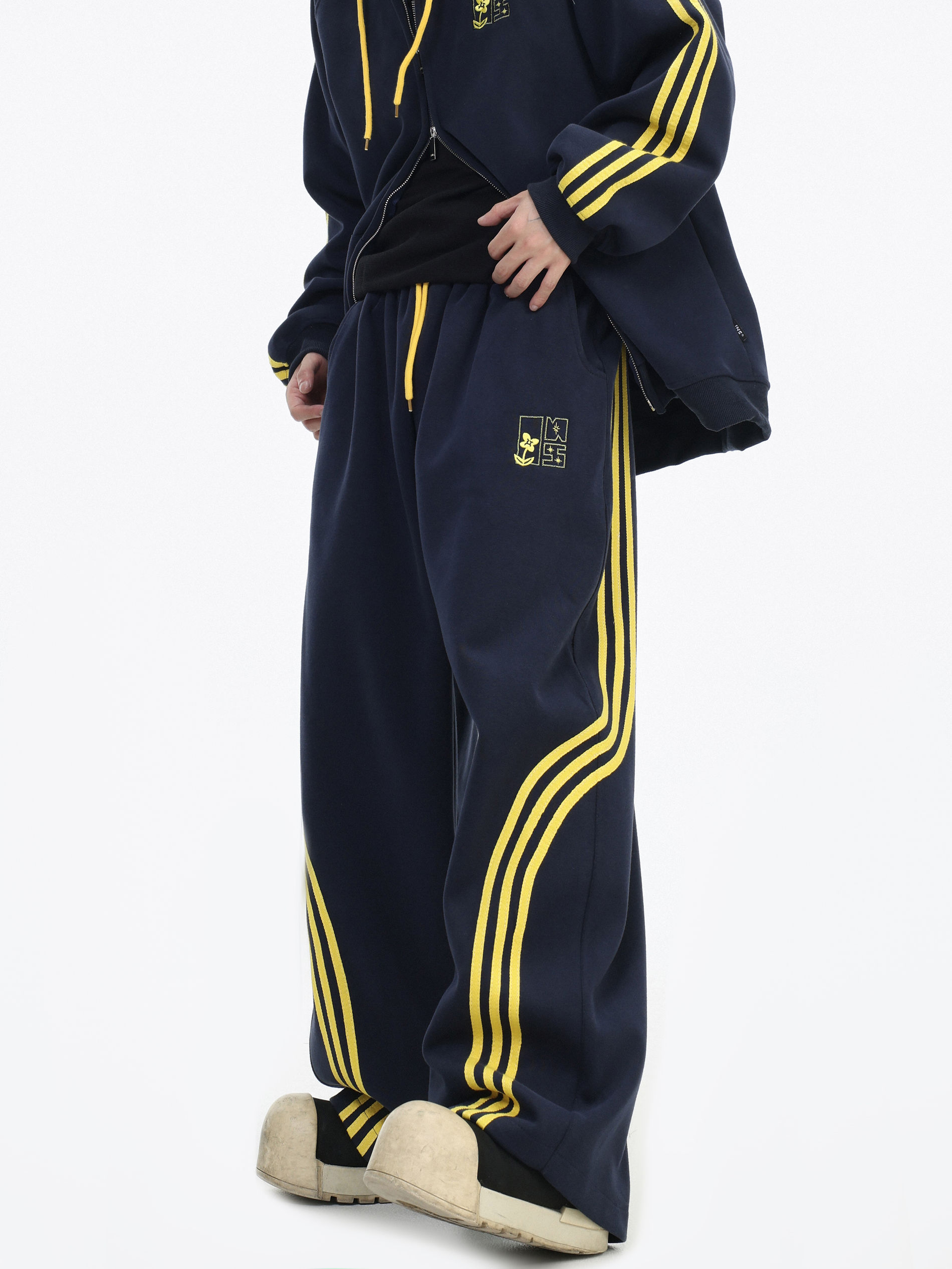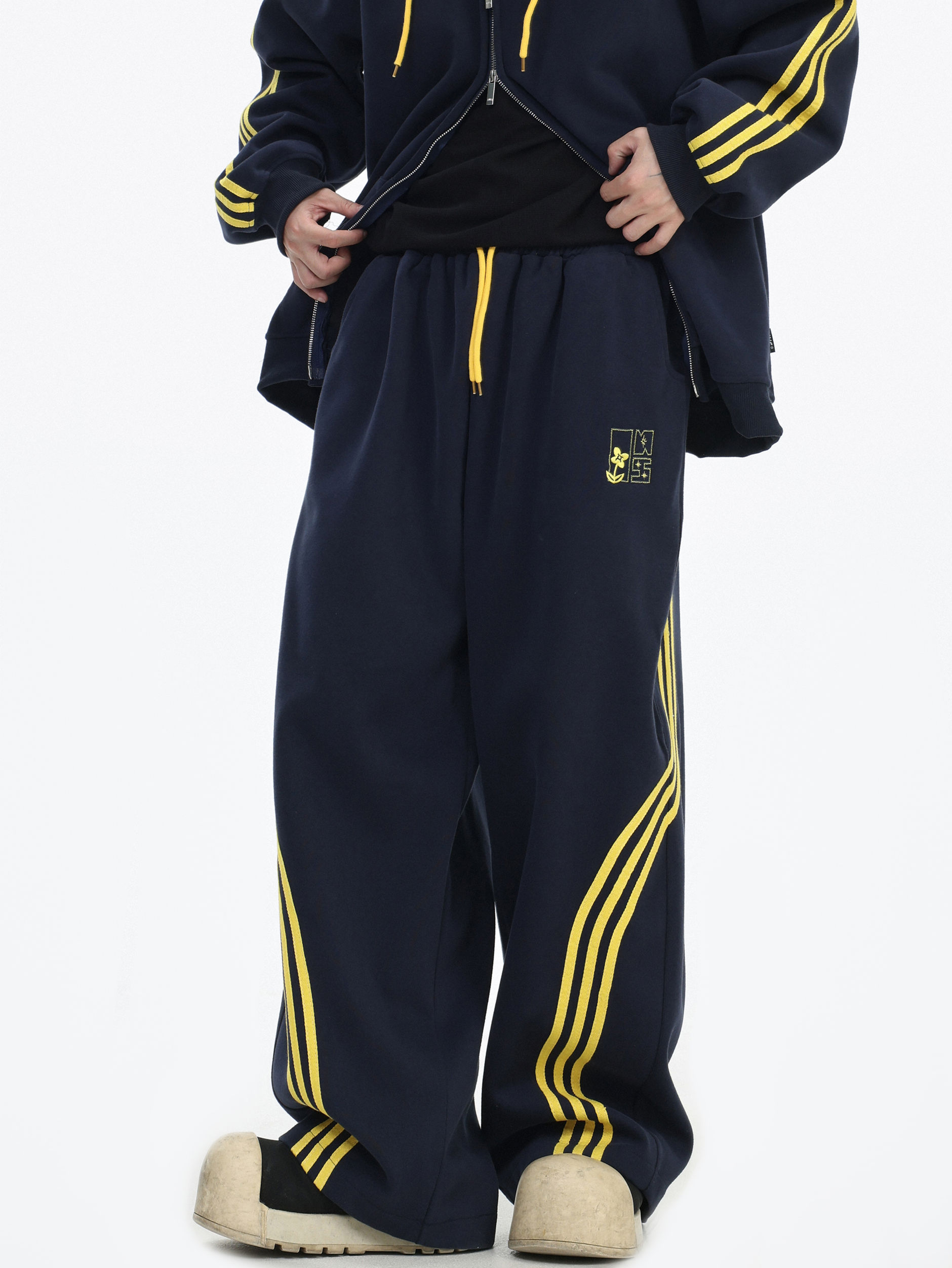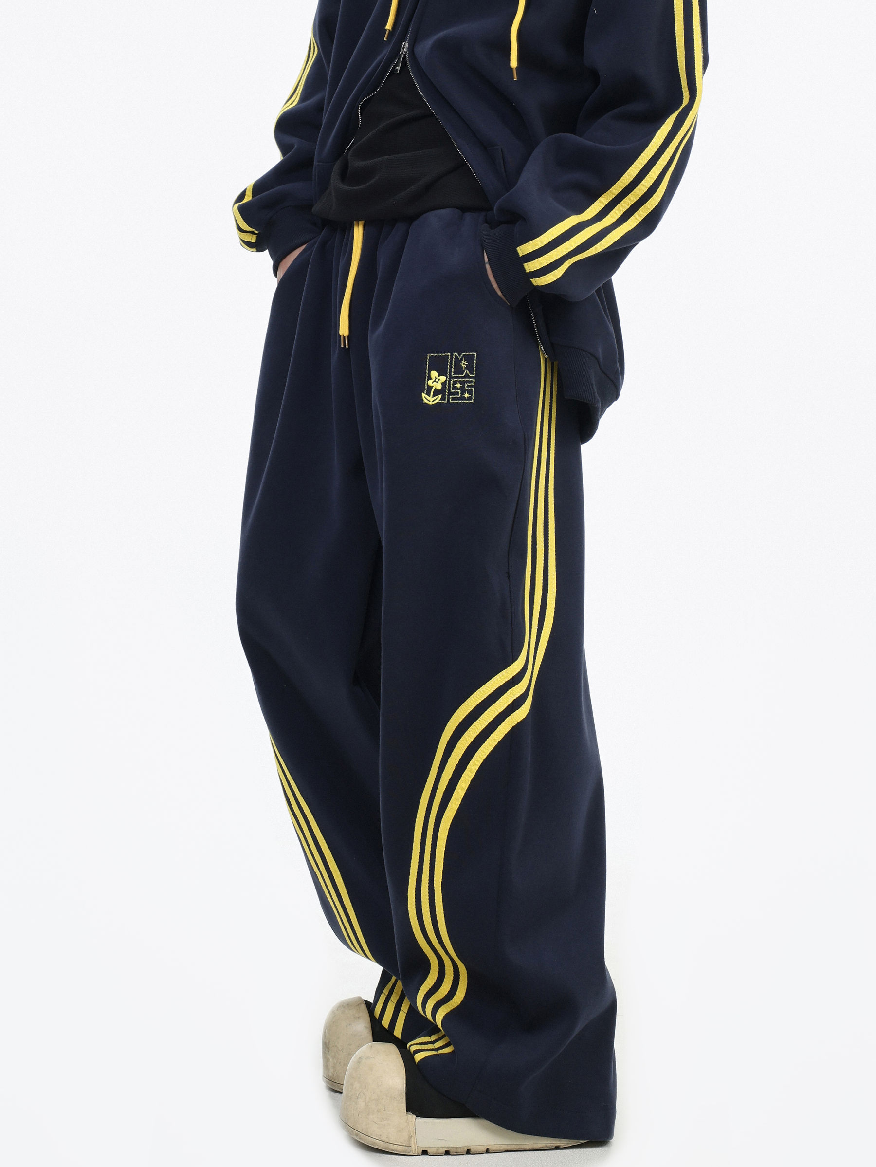 Be the first to review “China-Chic couple’s American “embroidered striped cardigan sweater” loose sports pants coat”