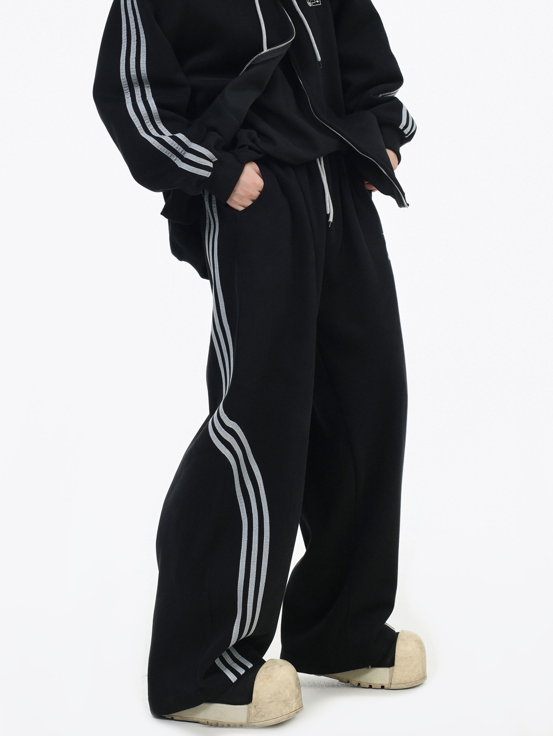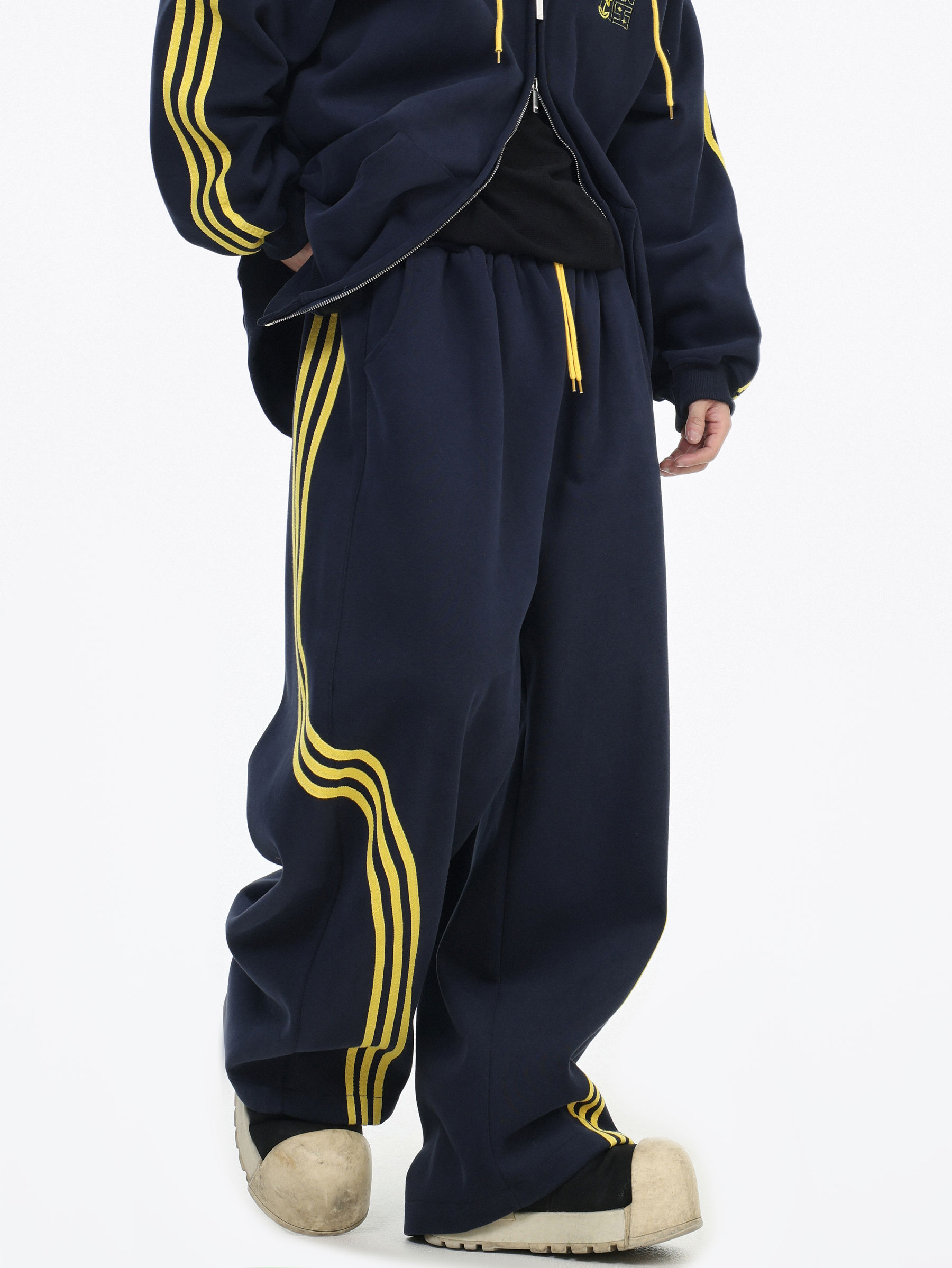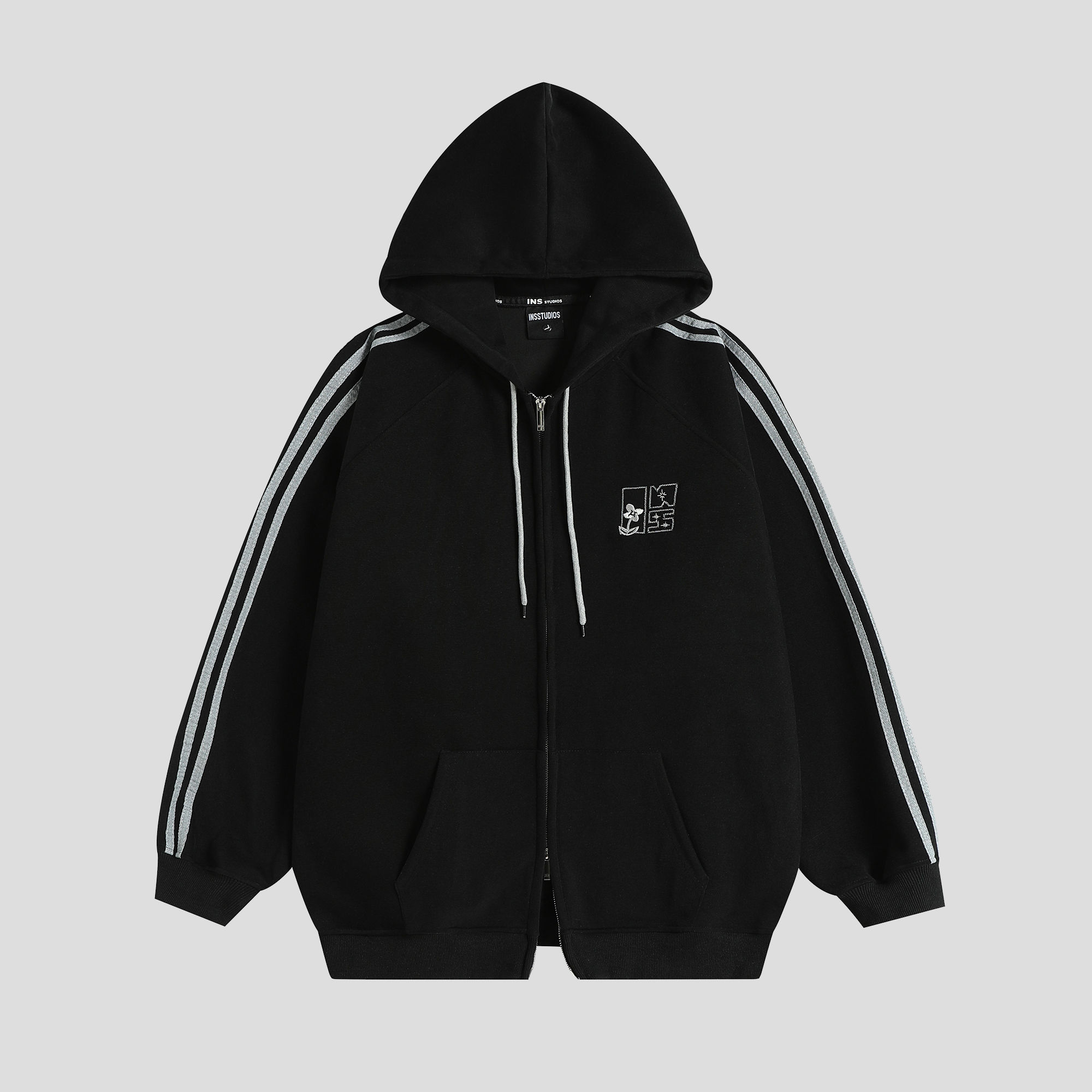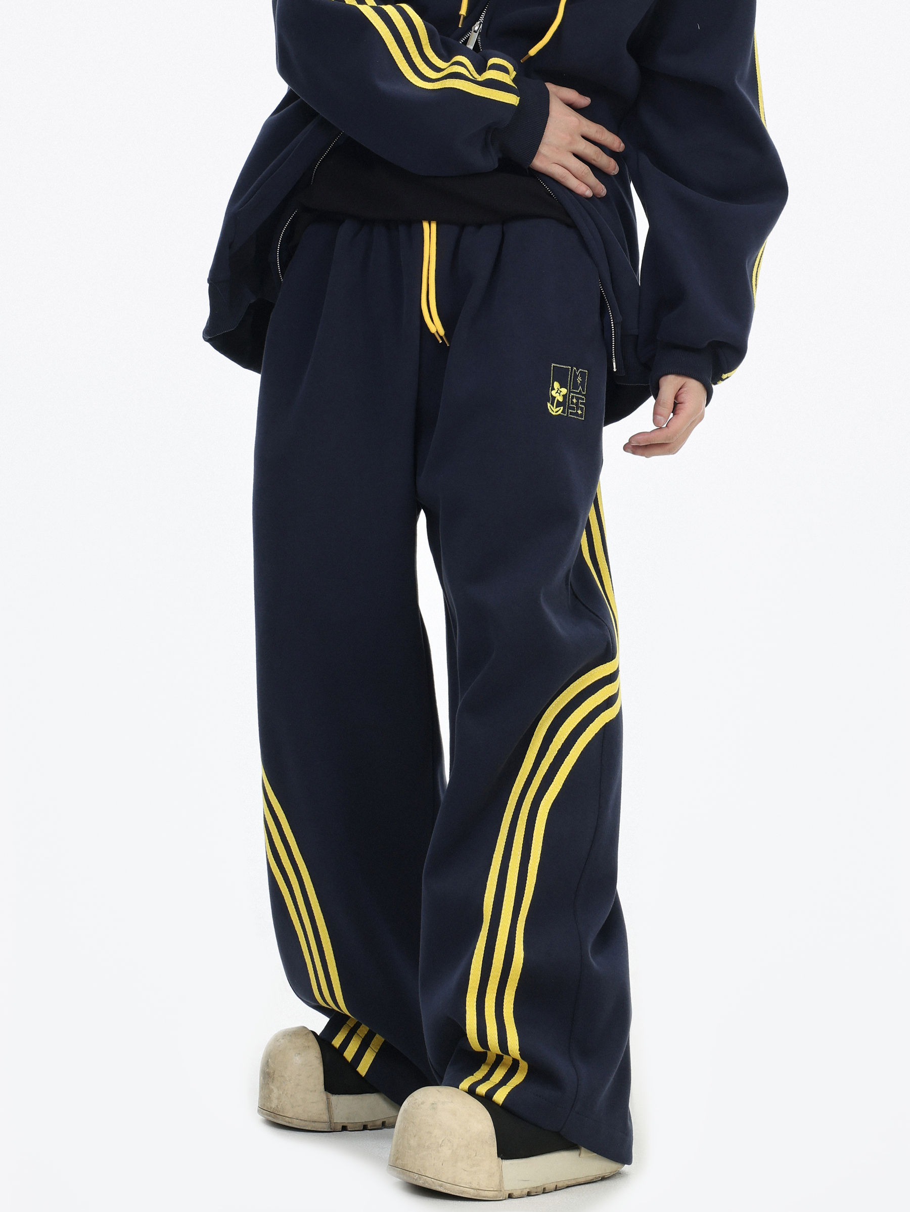 Be the first to review “China-Chic couple’s American “embroidered striped cardigan sweater” loose sports pants coat”