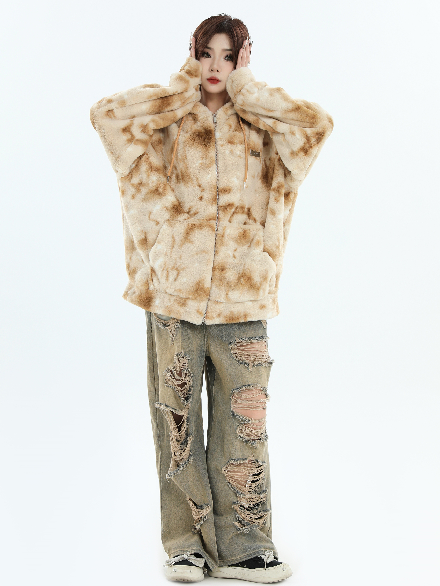 Be the first to review “China-Chic Couple’s American tie dyed plush hoodie loose and thick warm woolen cotton jacket”