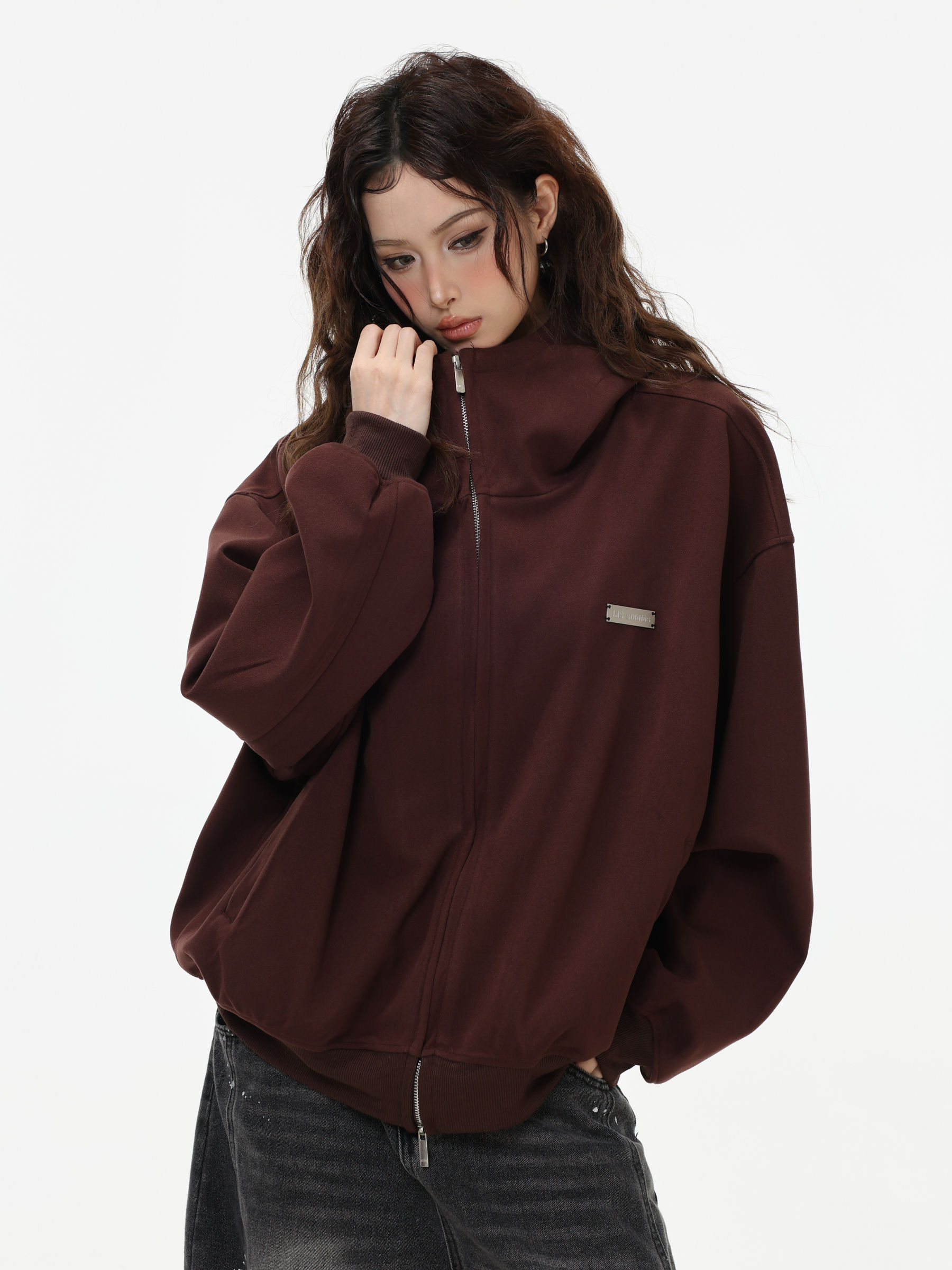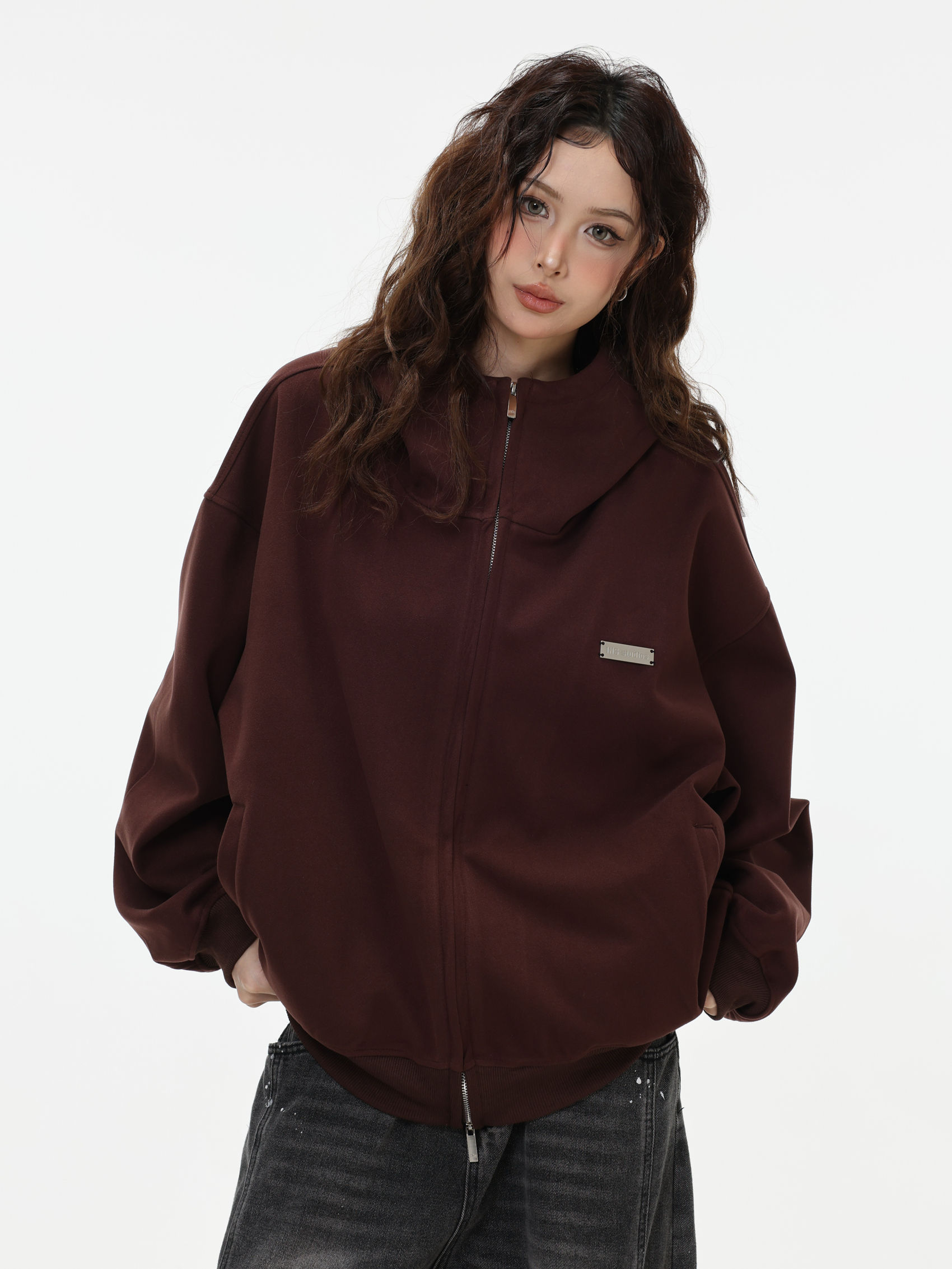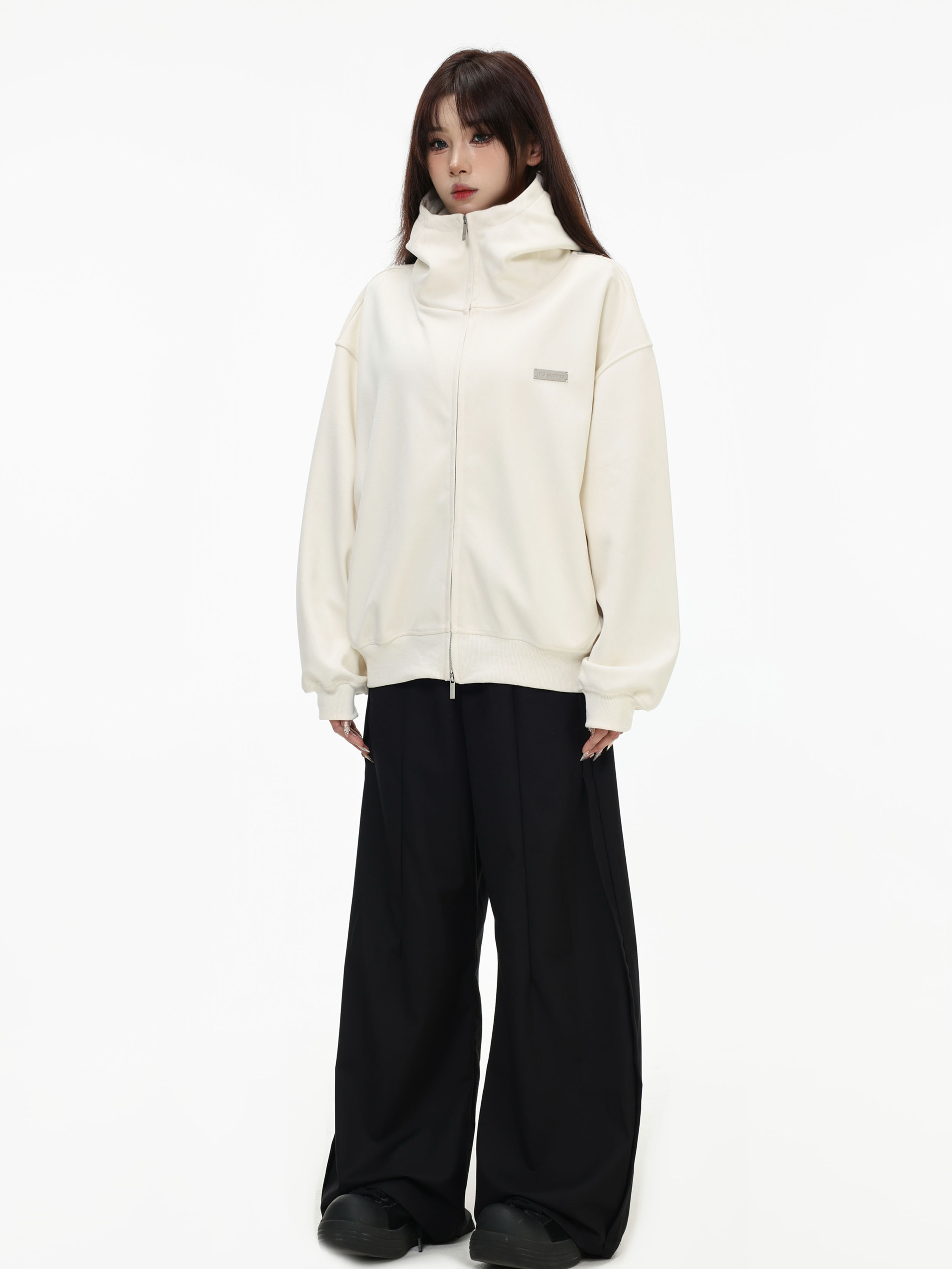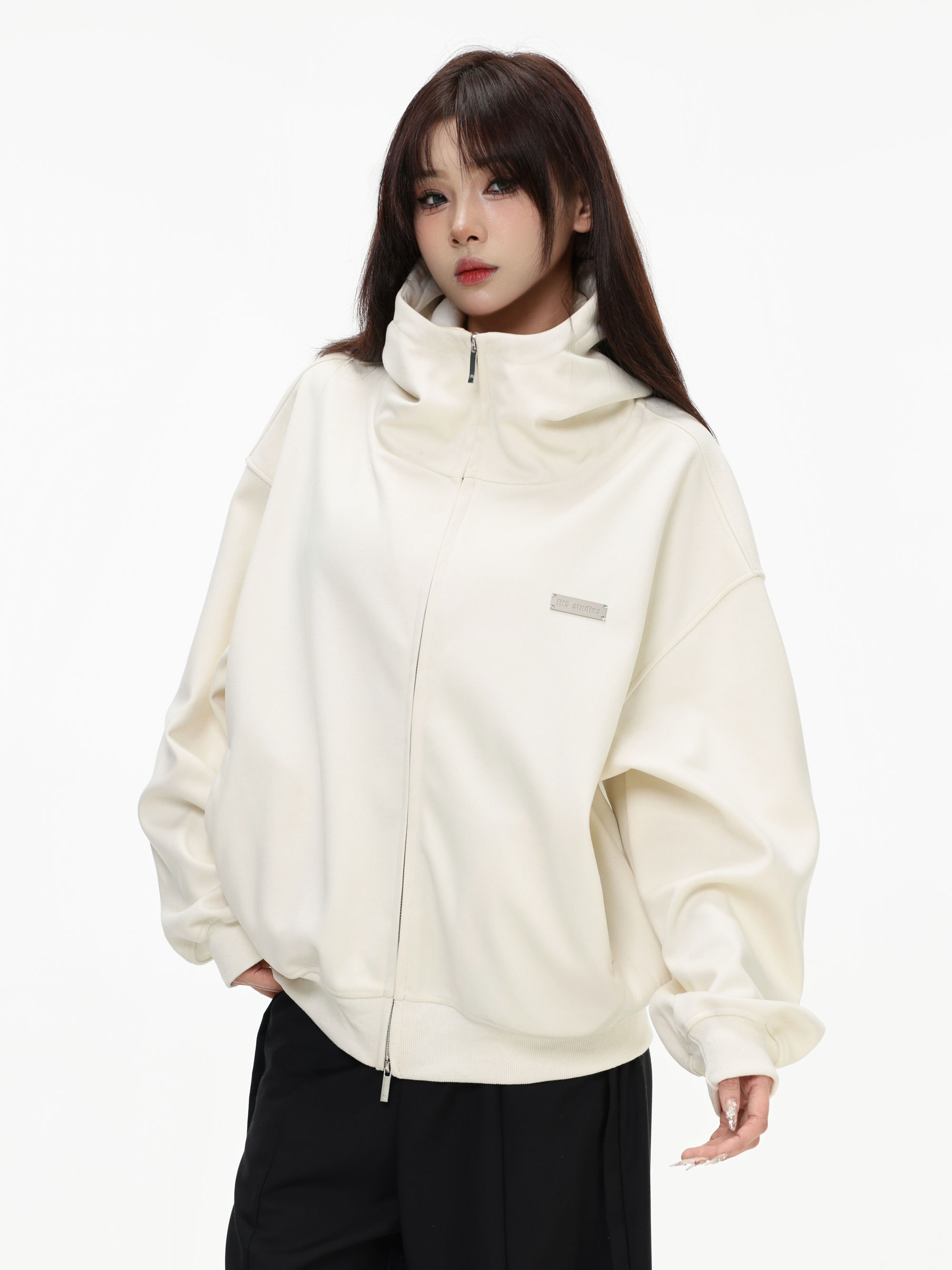 Be the first to review “China-Chic “High neck cardigan hoodie” loose double zipper slit coat for lovers”