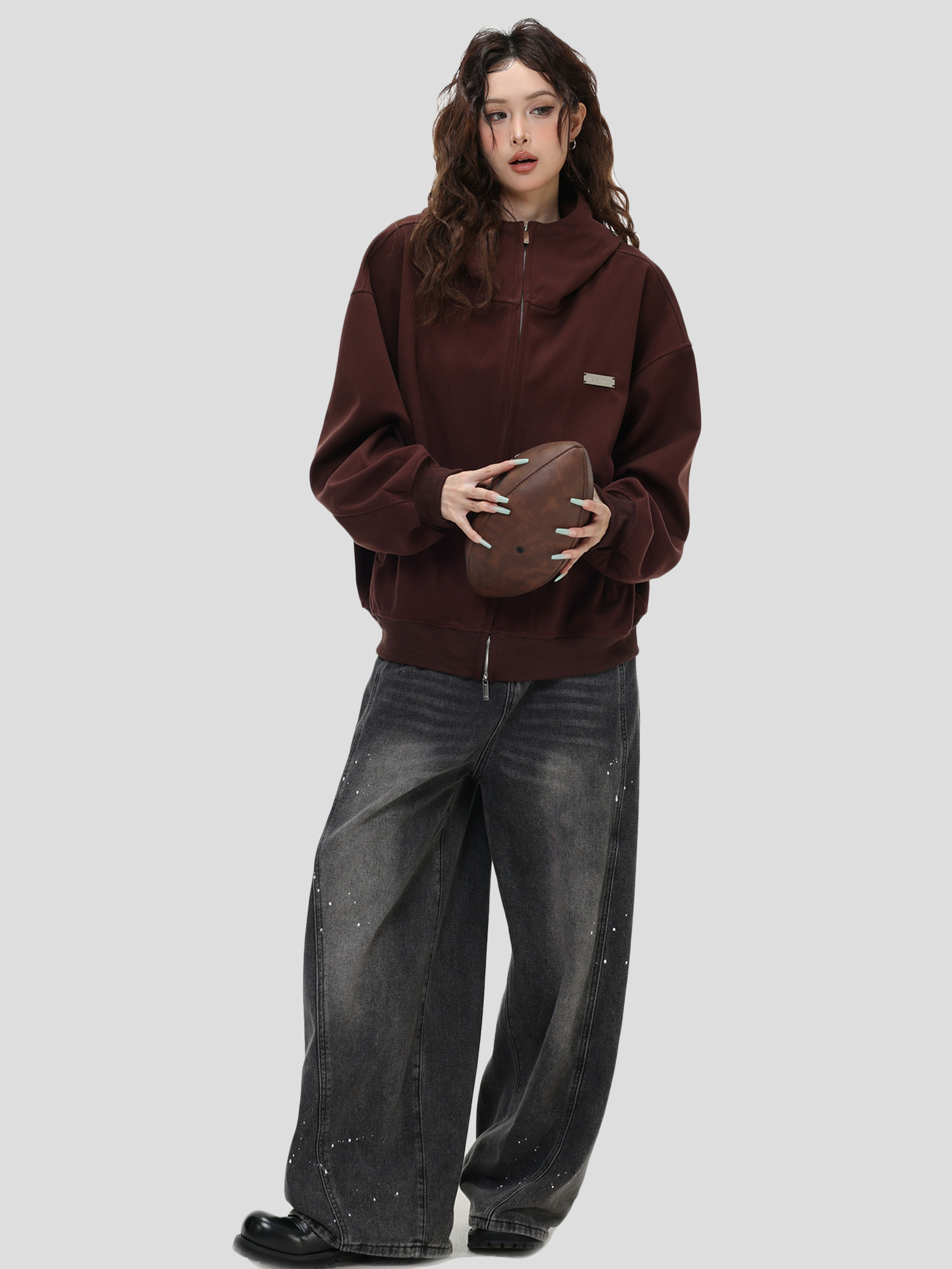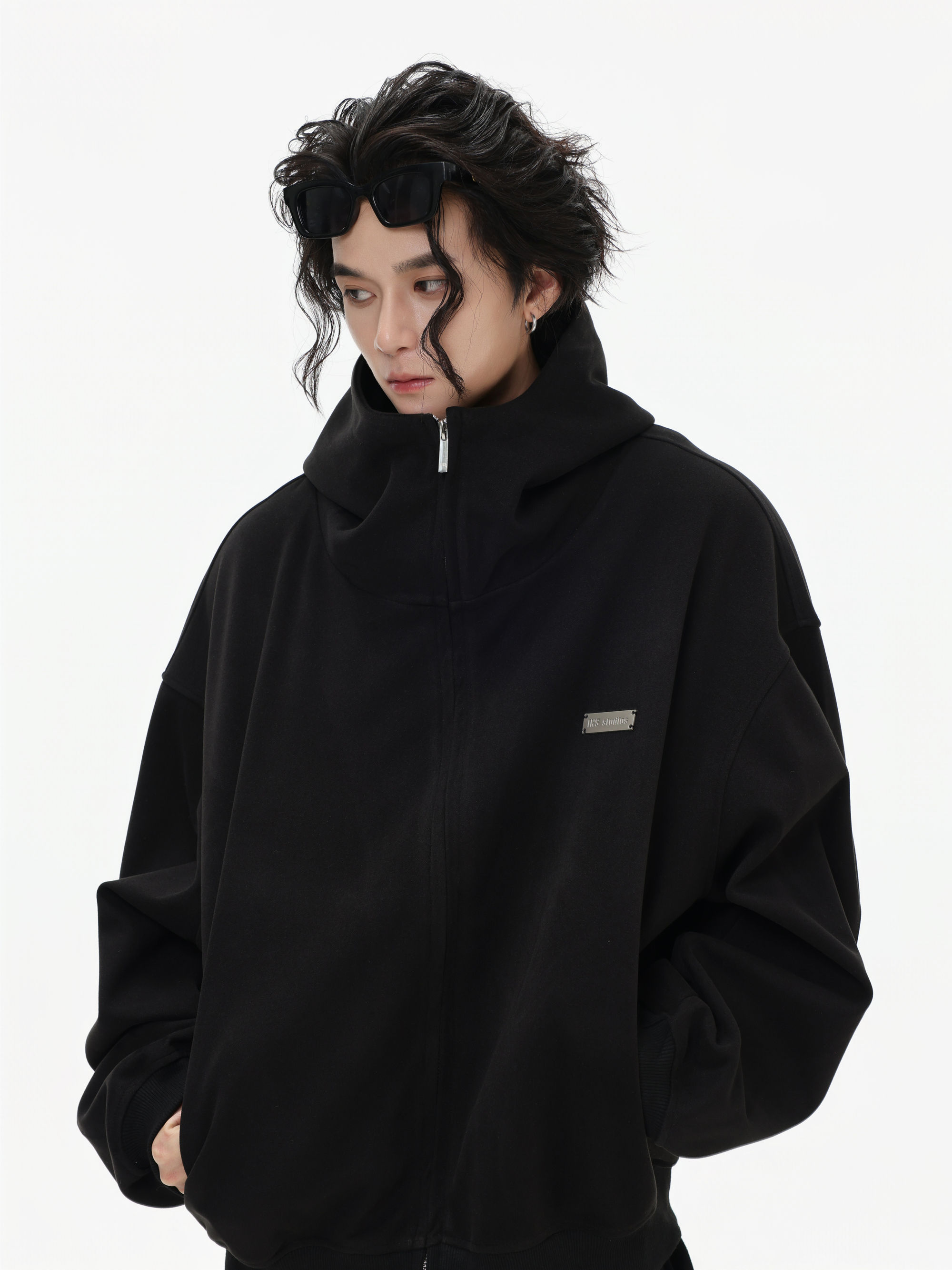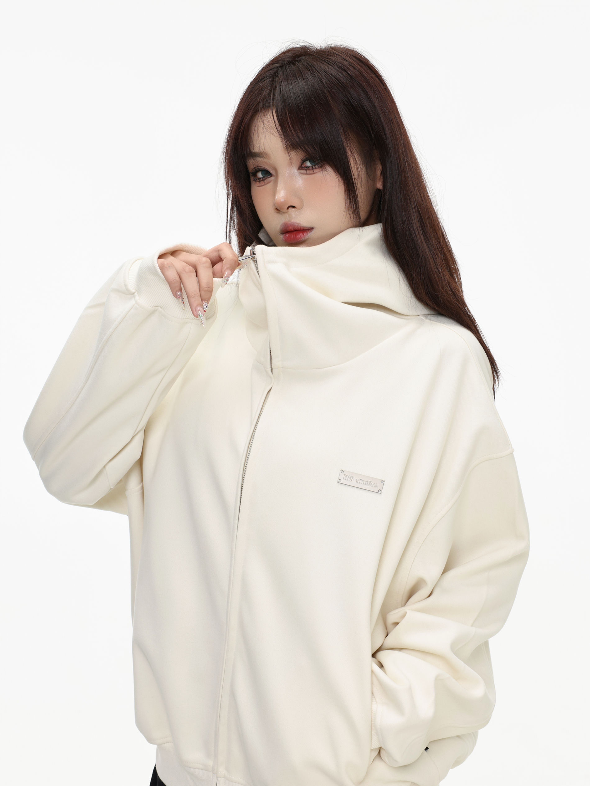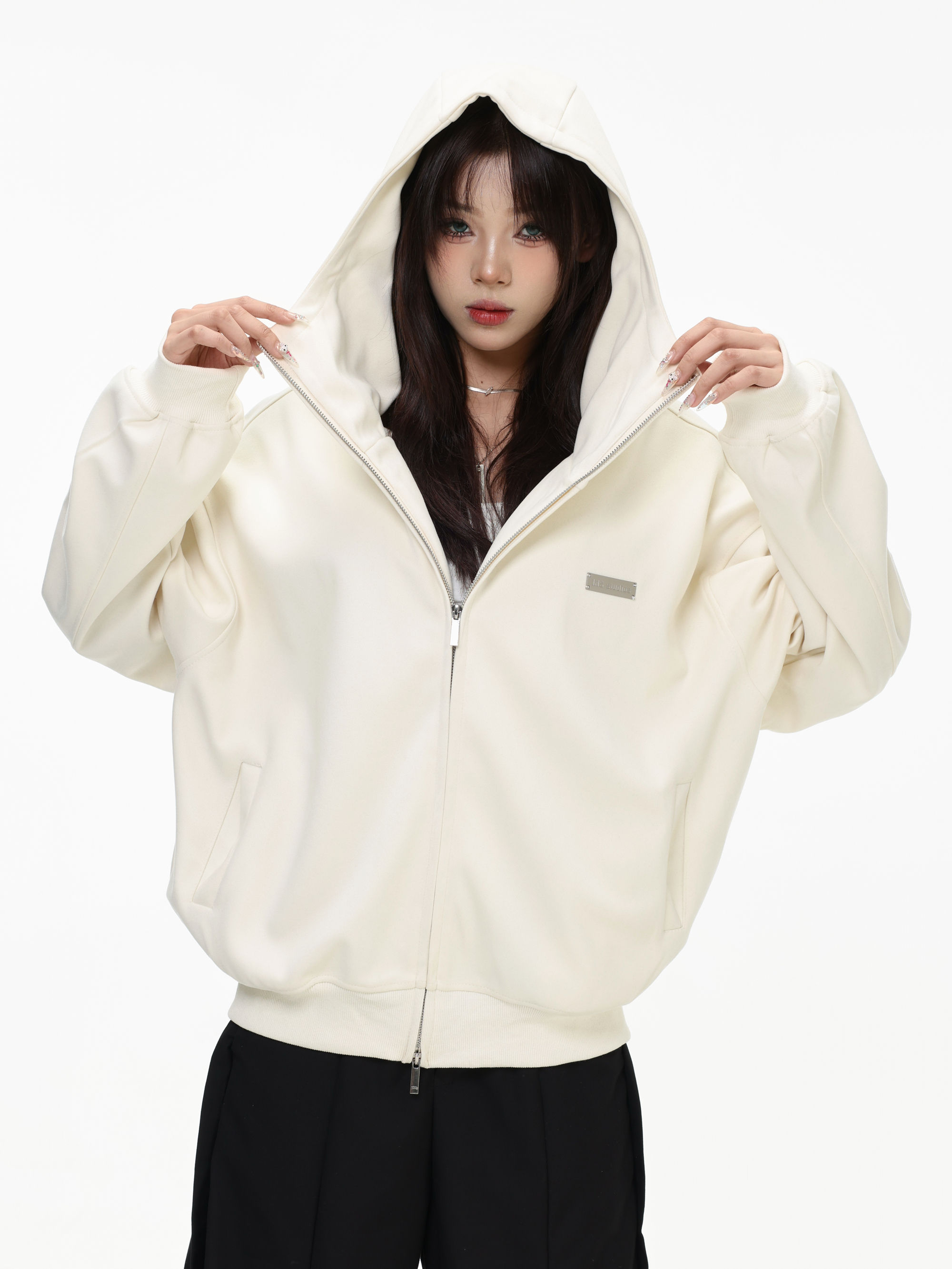 Be the first to review “China-Chic “High neck cardigan hoodie” loose double zipper slit coat for lovers”