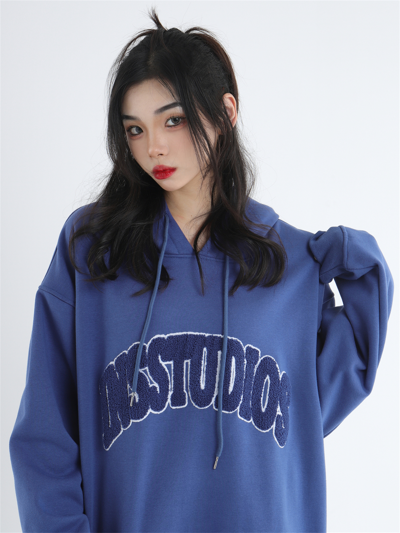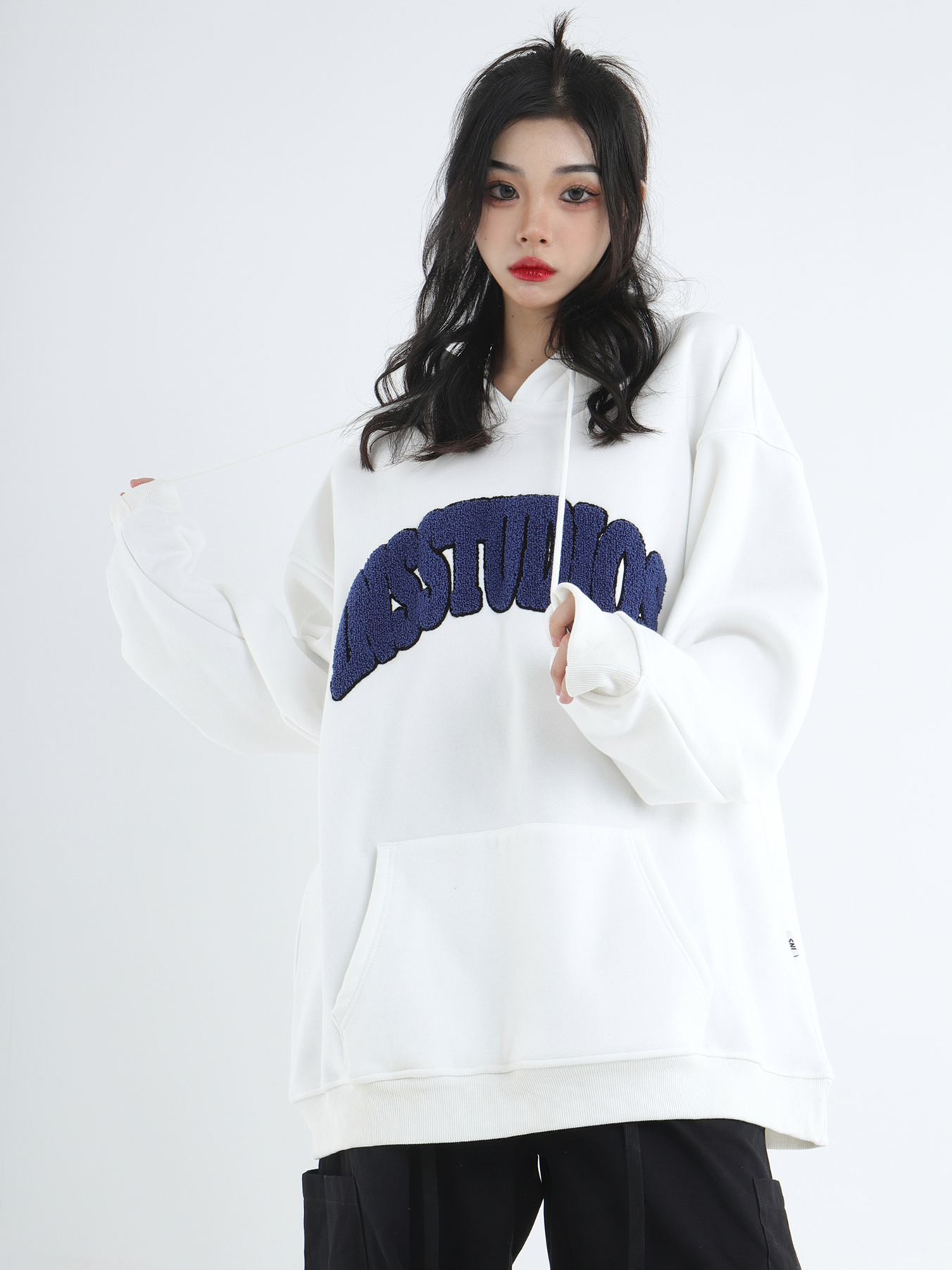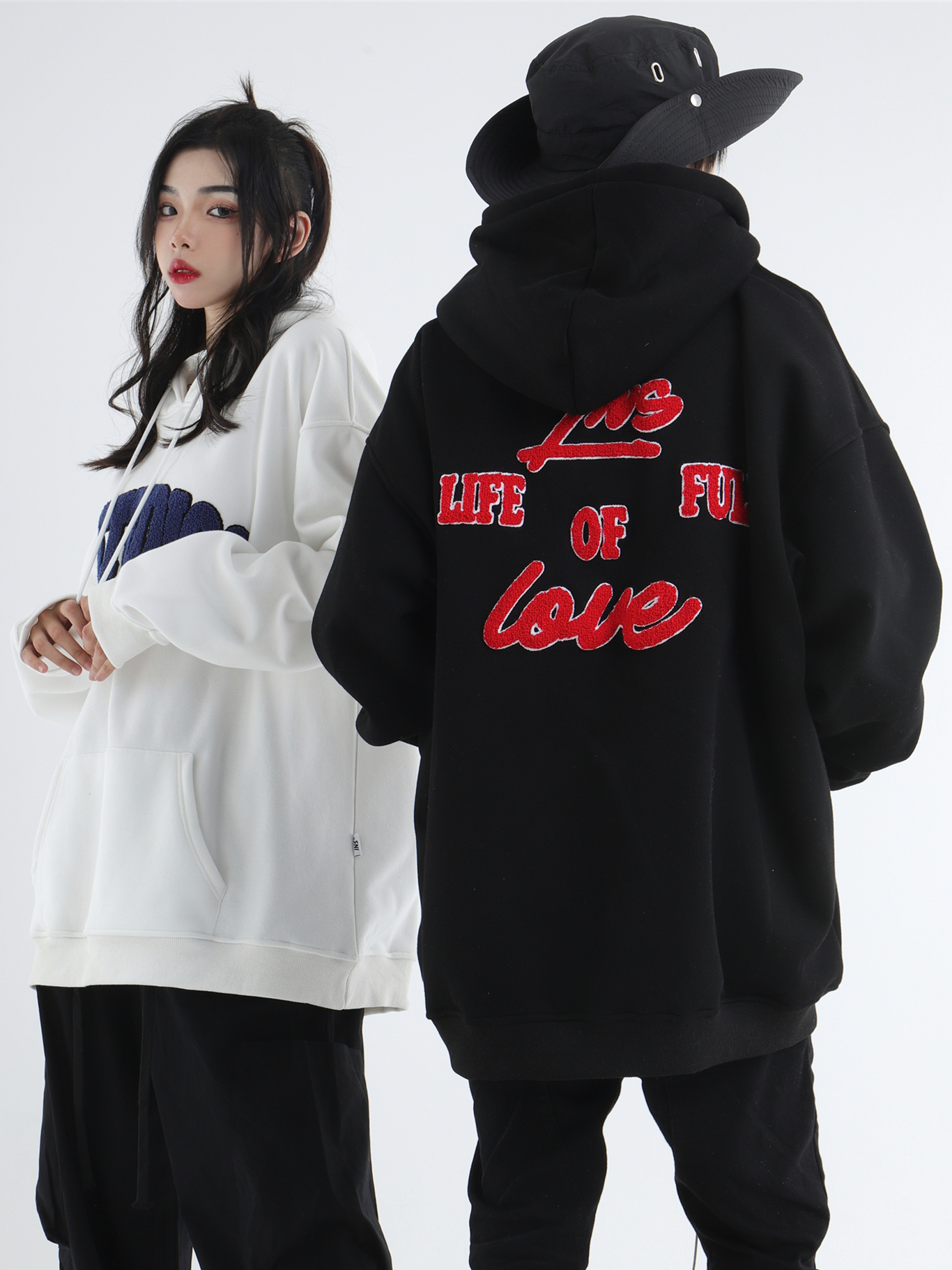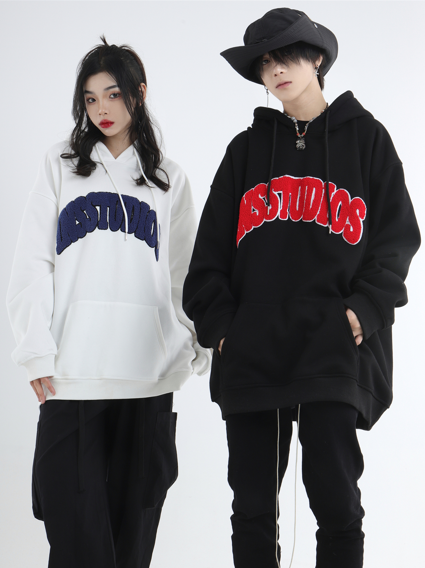 Be the first to review “Front and back flocking LOGO hoodie made by China-Chic lovers American loose plush coat”