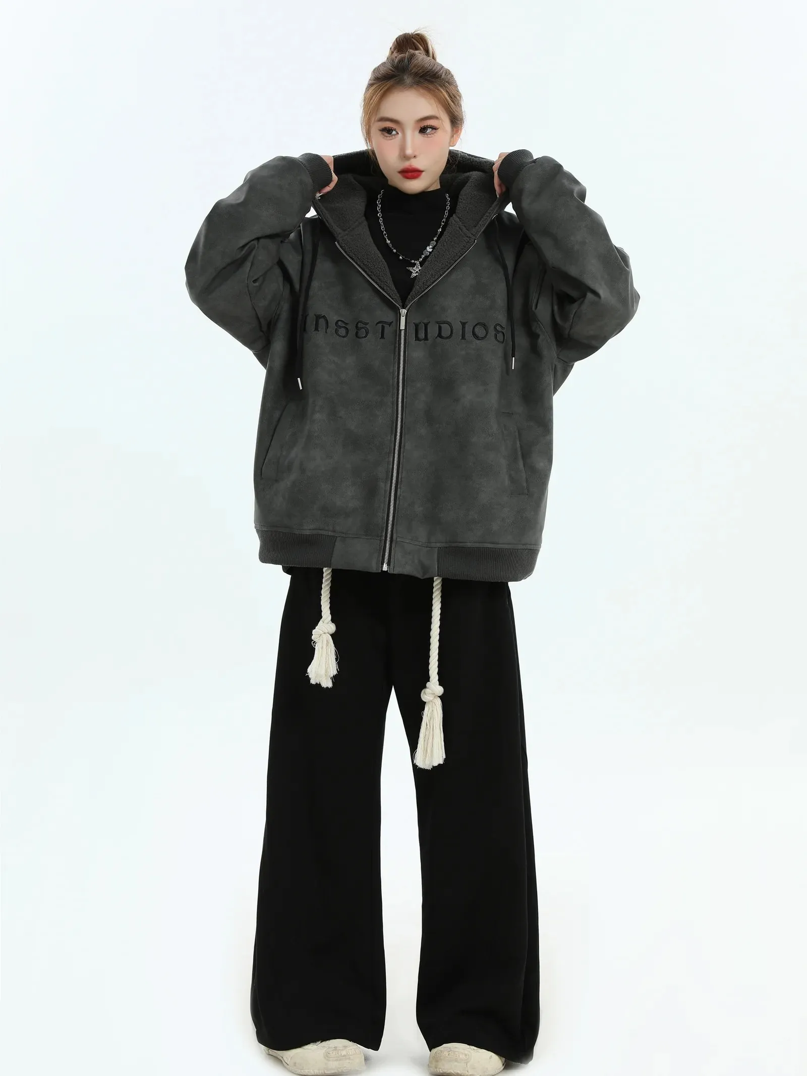 China-Chic Brand Couple American Double Sided Reversed Plaid Hoodie Loose Cardigan Coat Male Read more